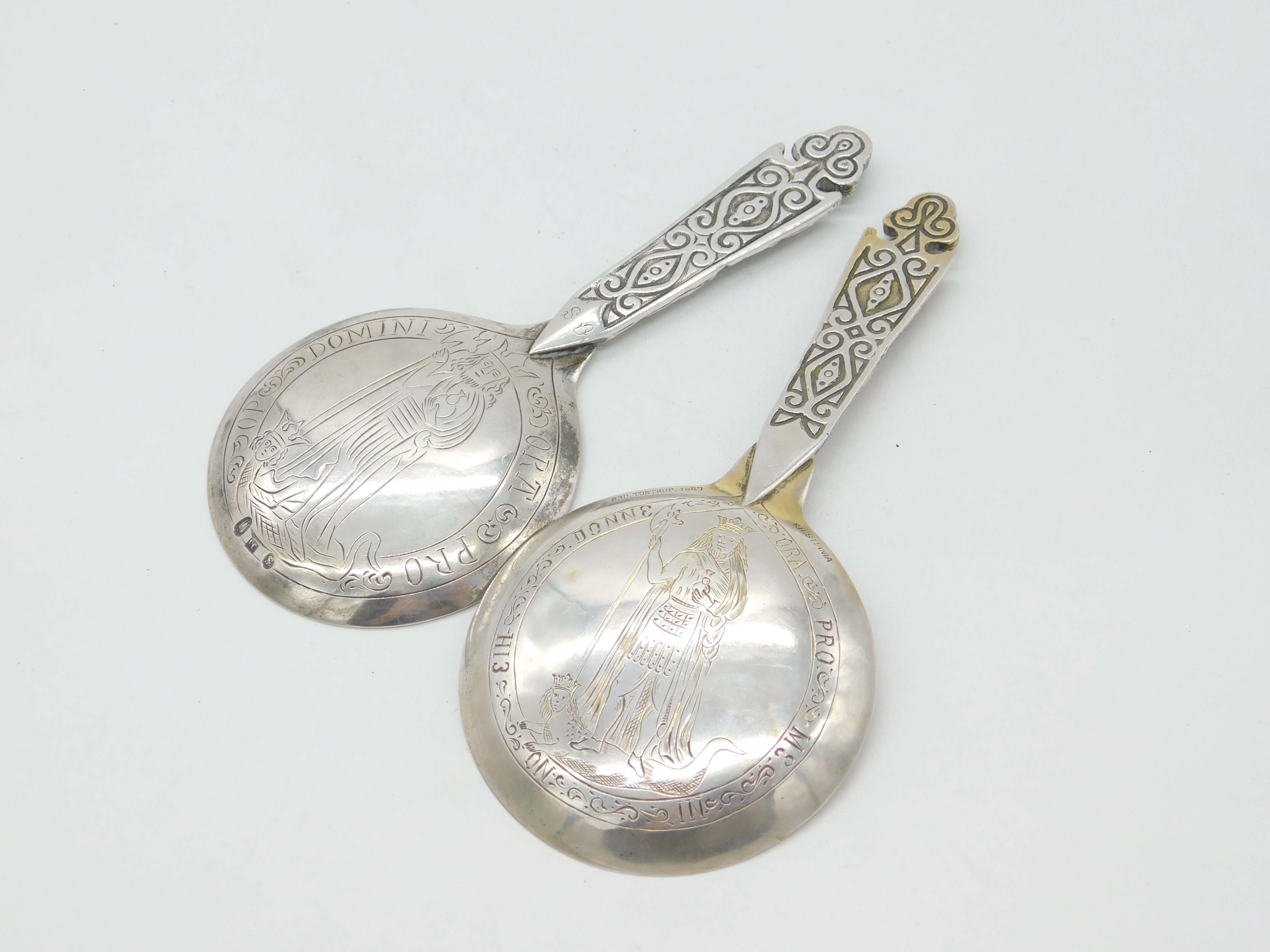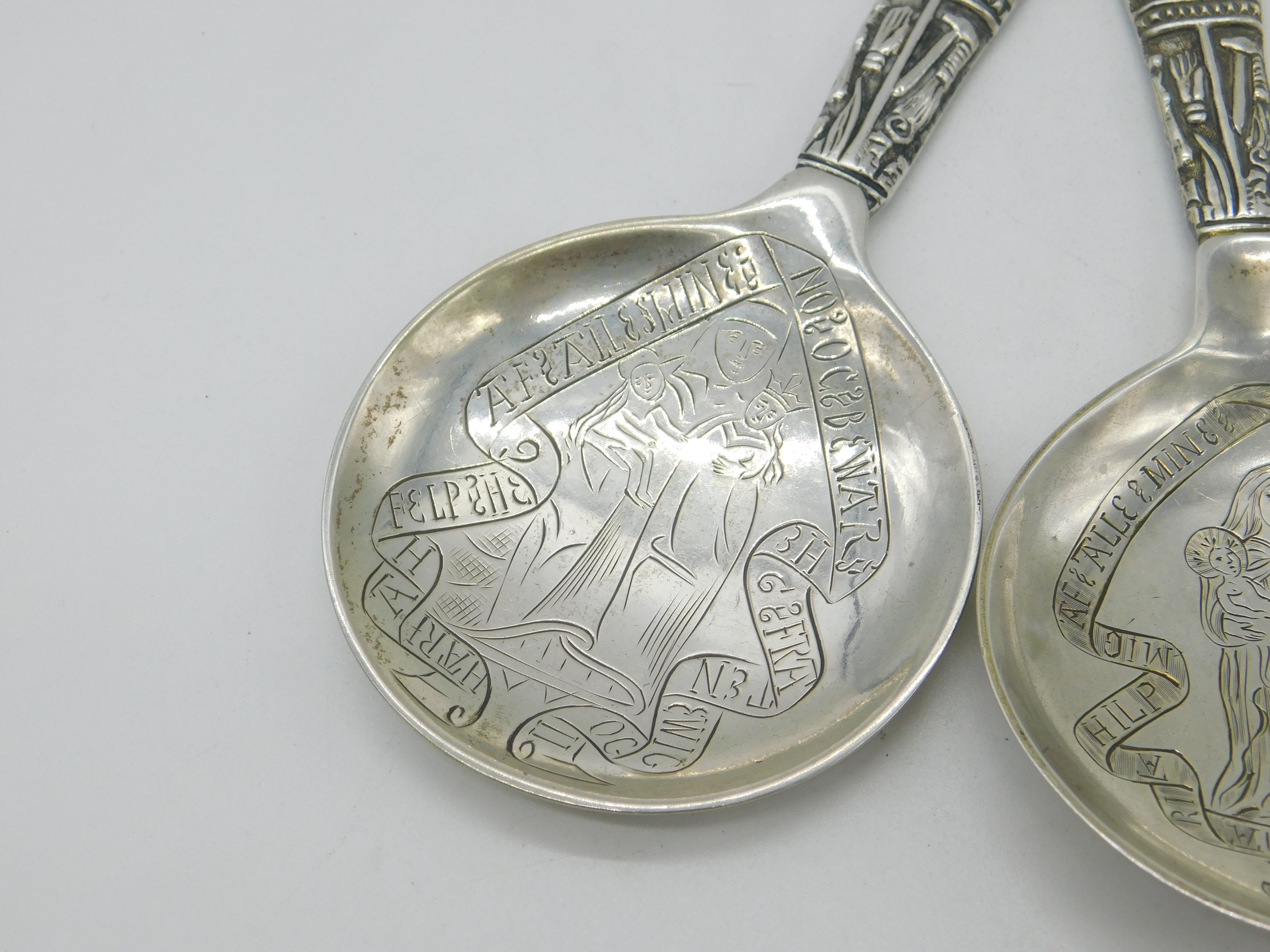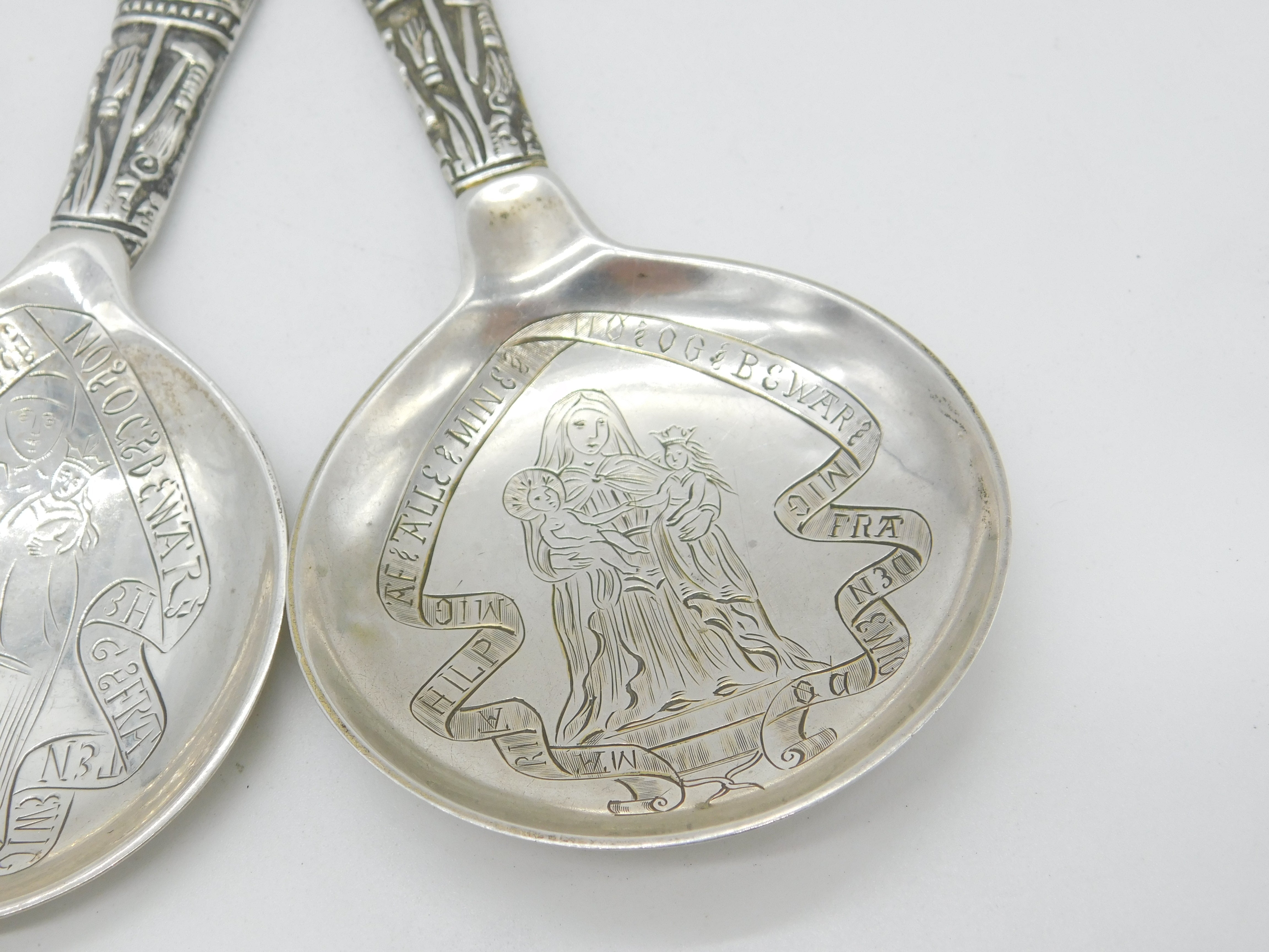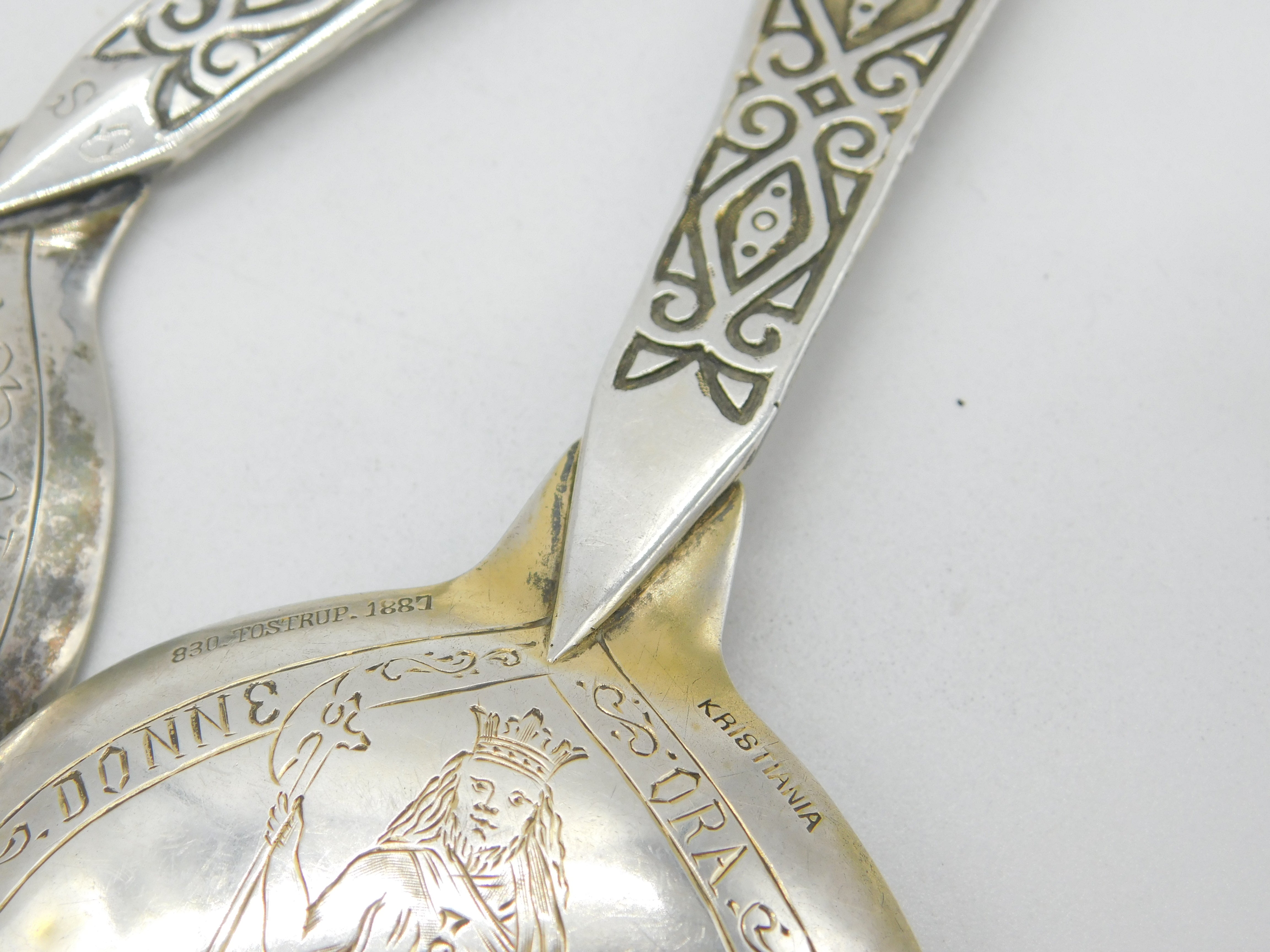 Victorian Danish .830 Silver Religious Detail Anointing Spoons Antique 1887
