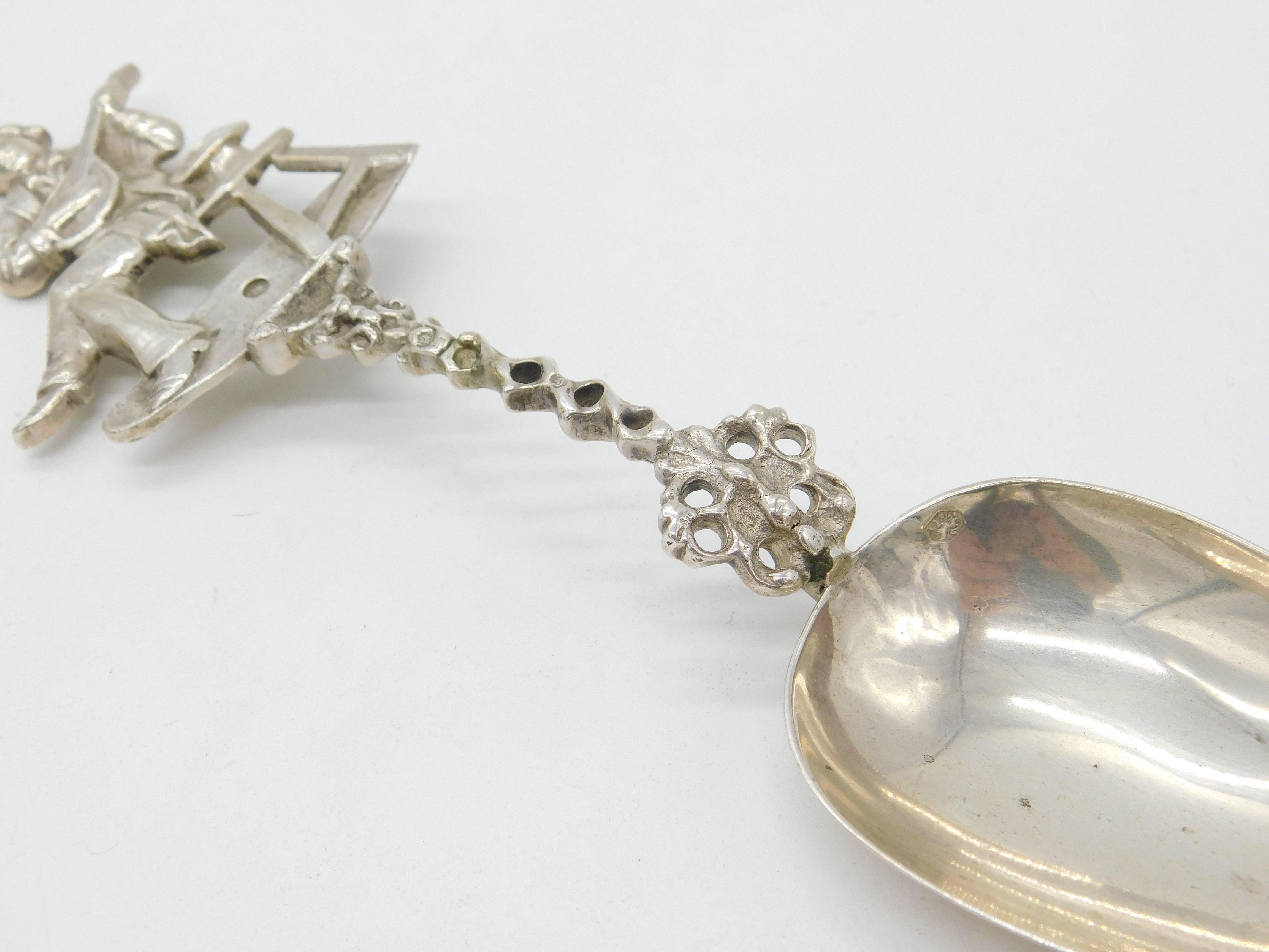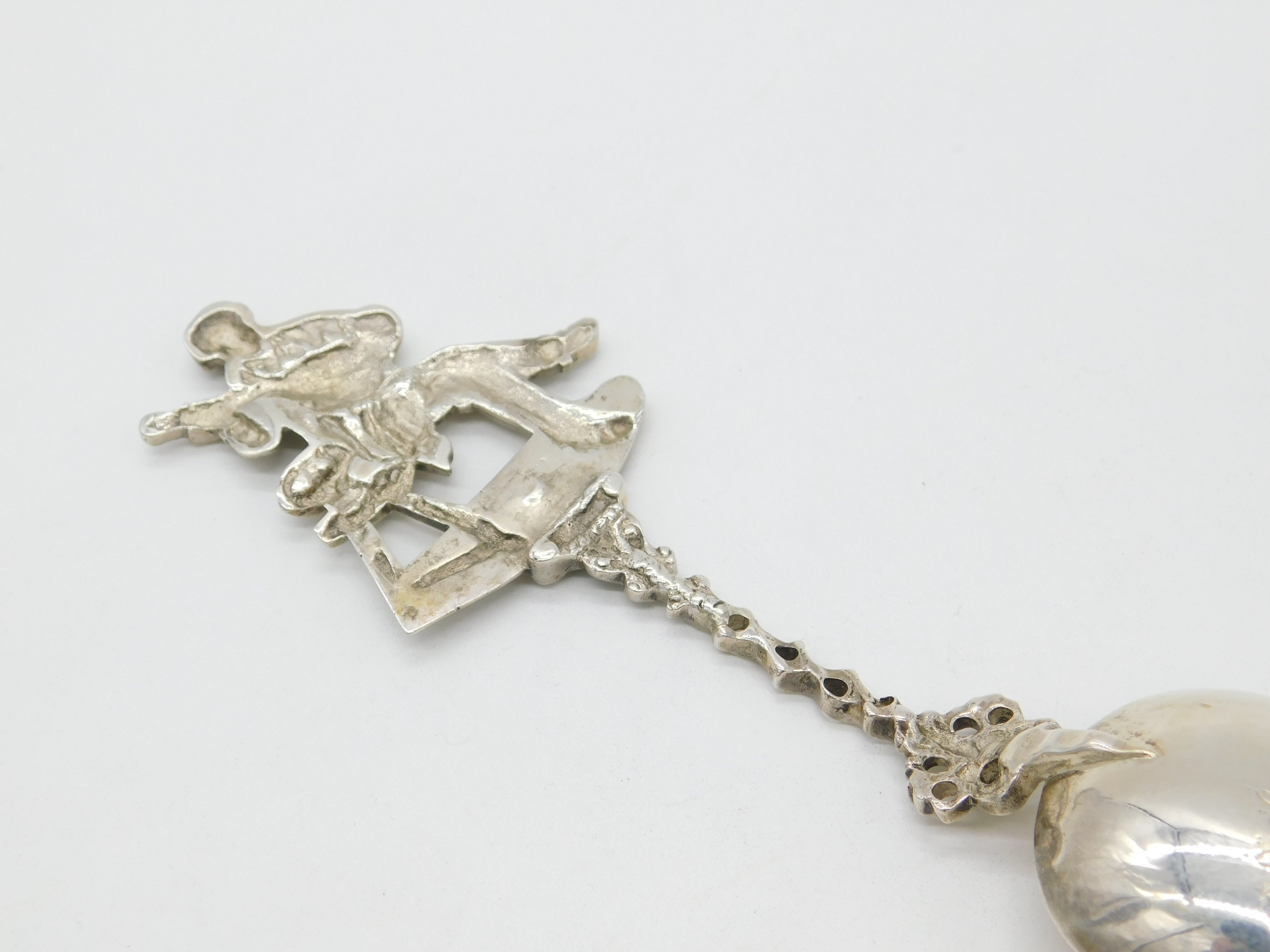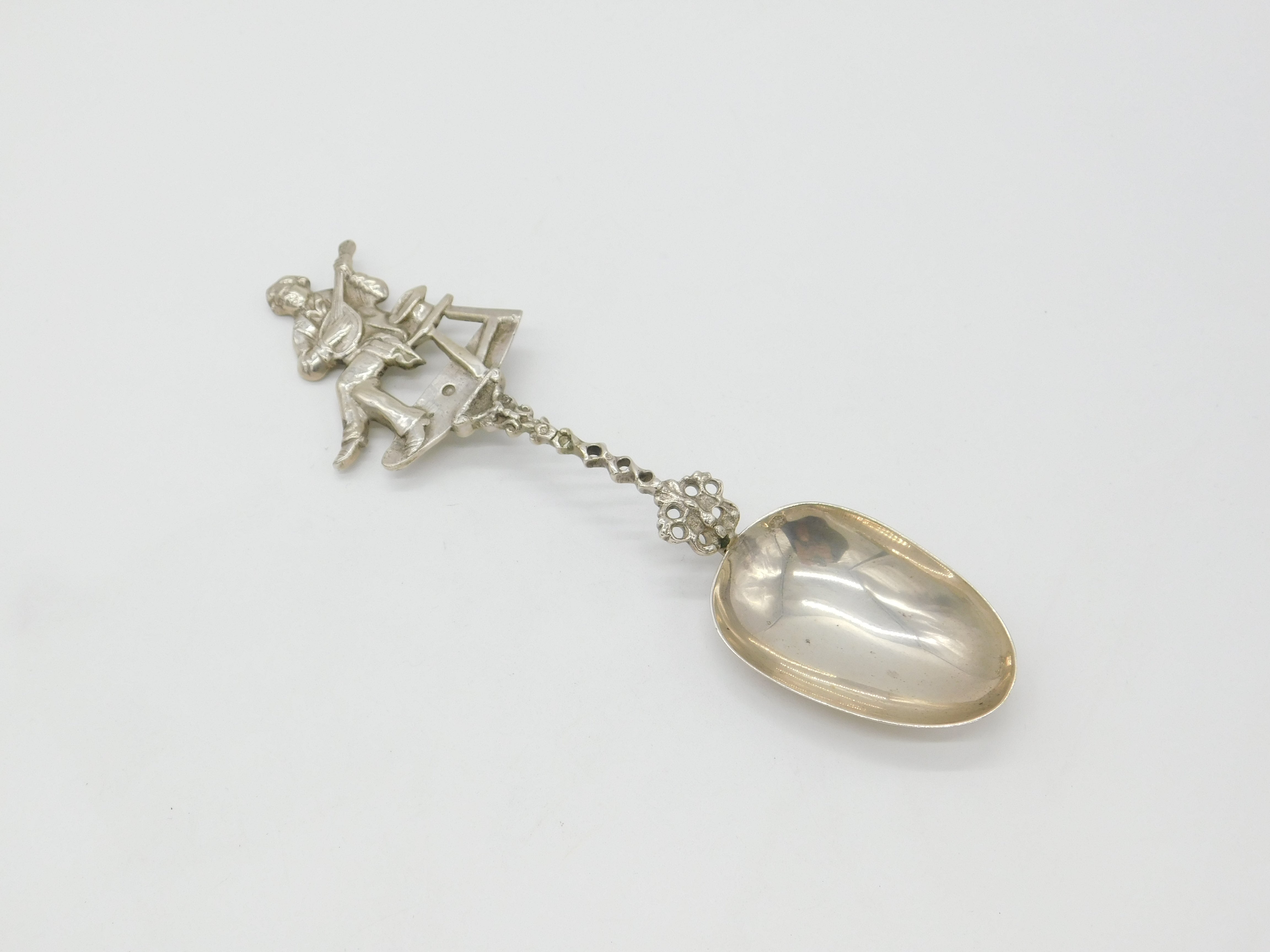 Victorian Dutch .833 Silver Musical Lute Player Terminal Serving Spoon c1890