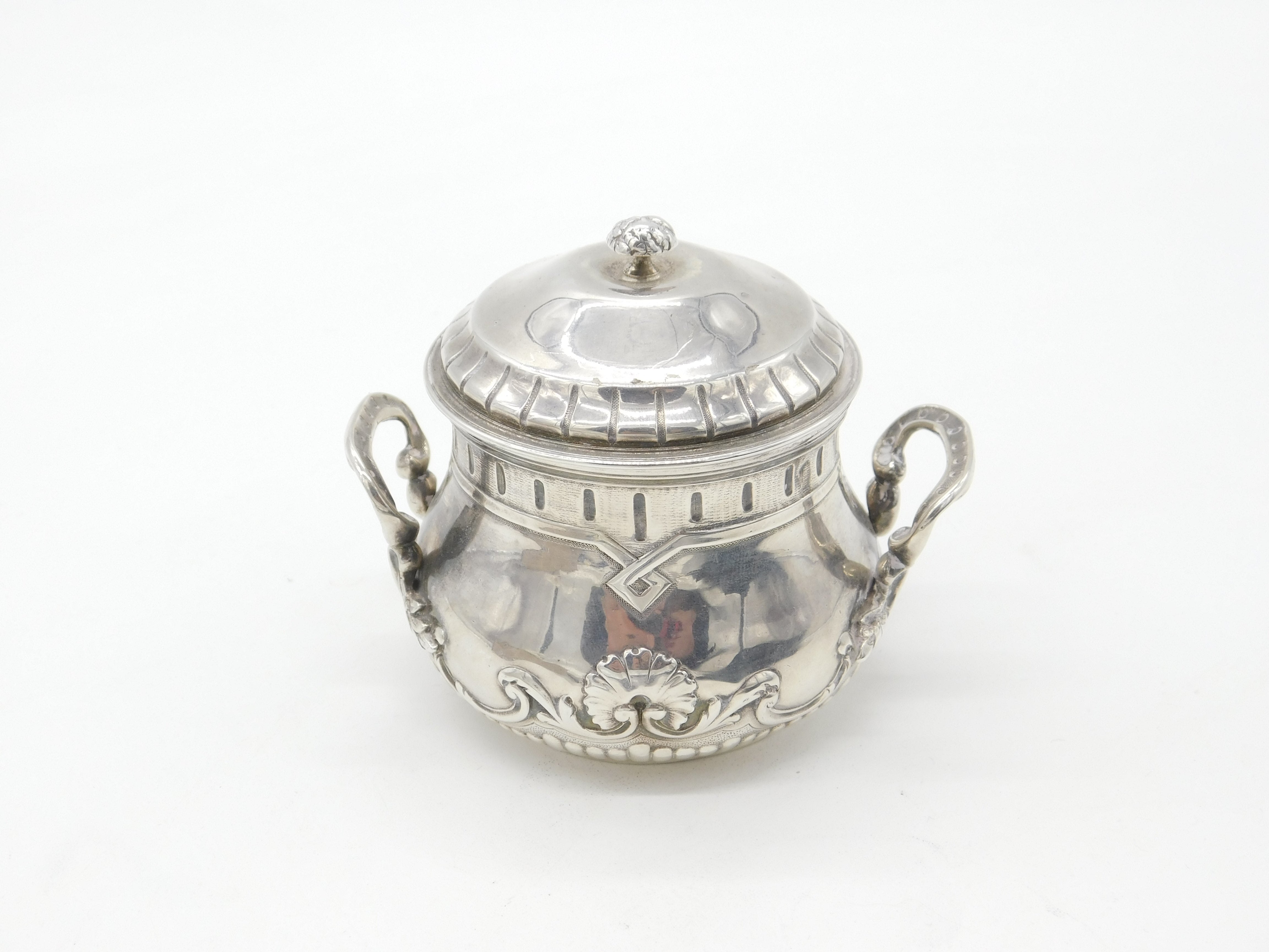 Victorian French 1st Standard .950 Silver Floral Lidded Sugar Bowl Antique c1860