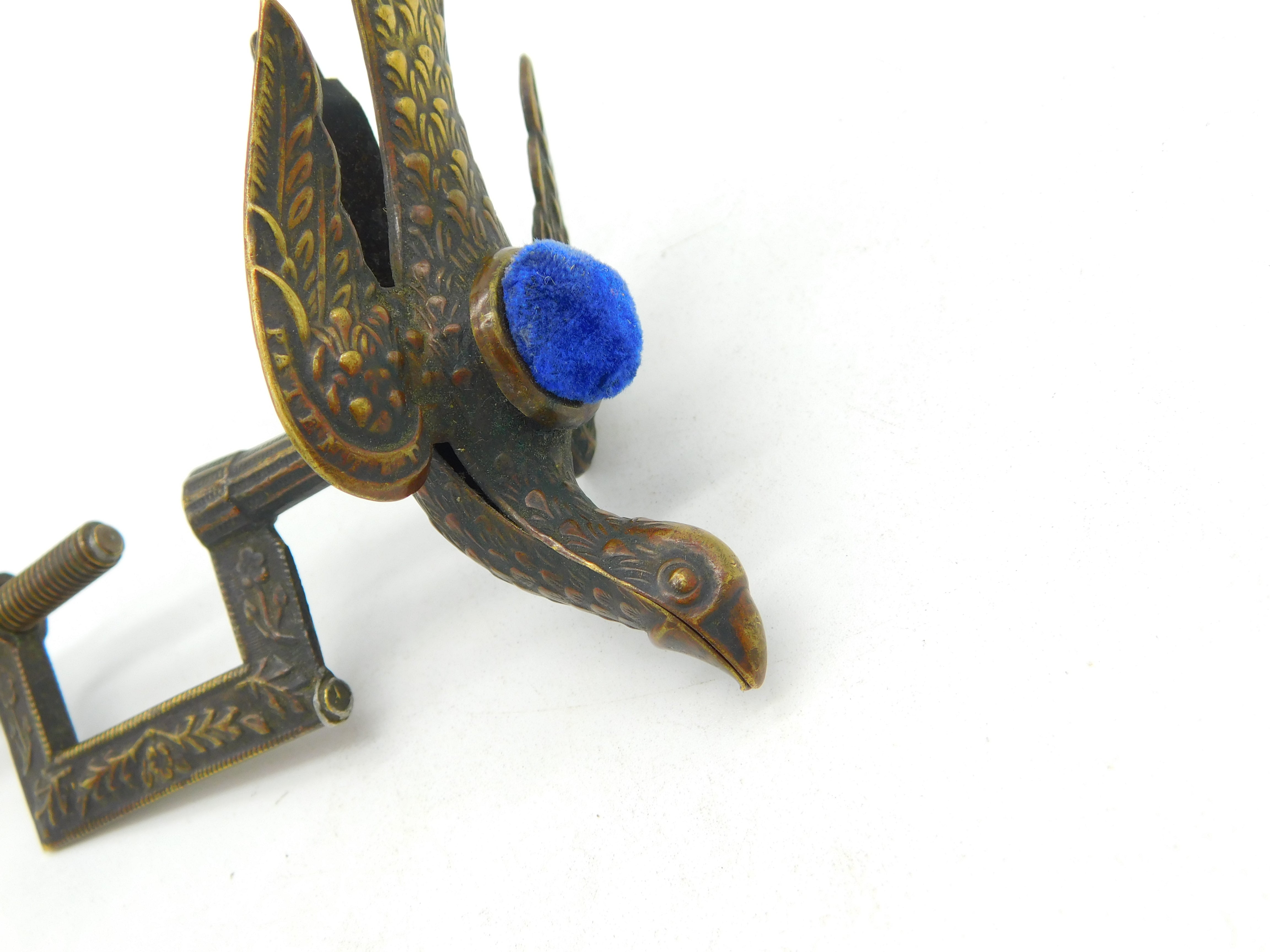 Victorian French Brass Flying Dove Bird Pin Cushion Clasp Antique c1860
