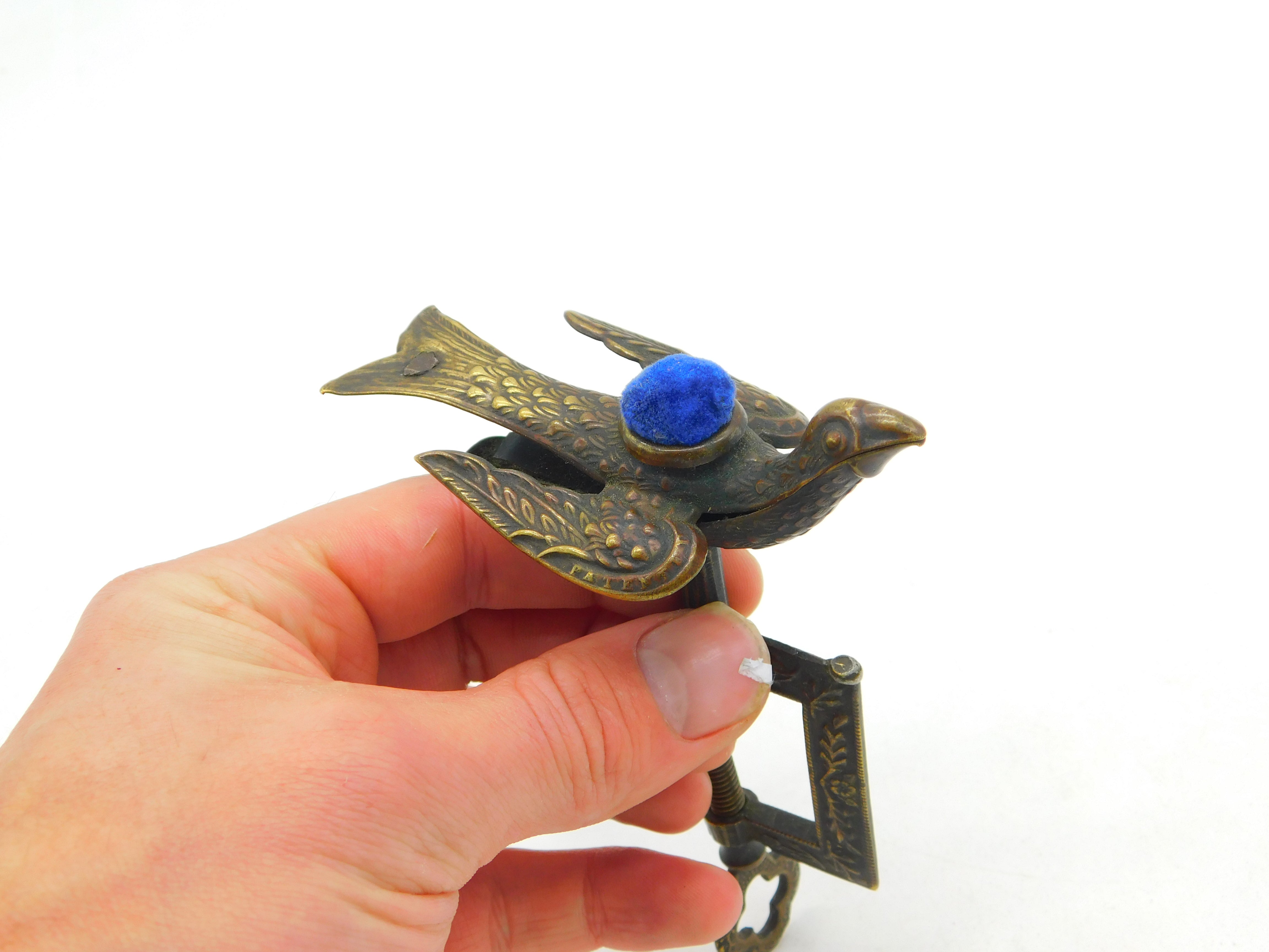 Details: A fantastic and wonderfully designed antique Victorian brass sewing pin cushion screw back clasp in the form of a flying dove with charming detailing almost certainly french c1860. This is a wonderful item that would make a perfect gift or addition to any collection. The BOX pictured is for PRESENTATION ONLY and is NOT included in the listings but used to frame the pictures unless specifically stated otherwise.