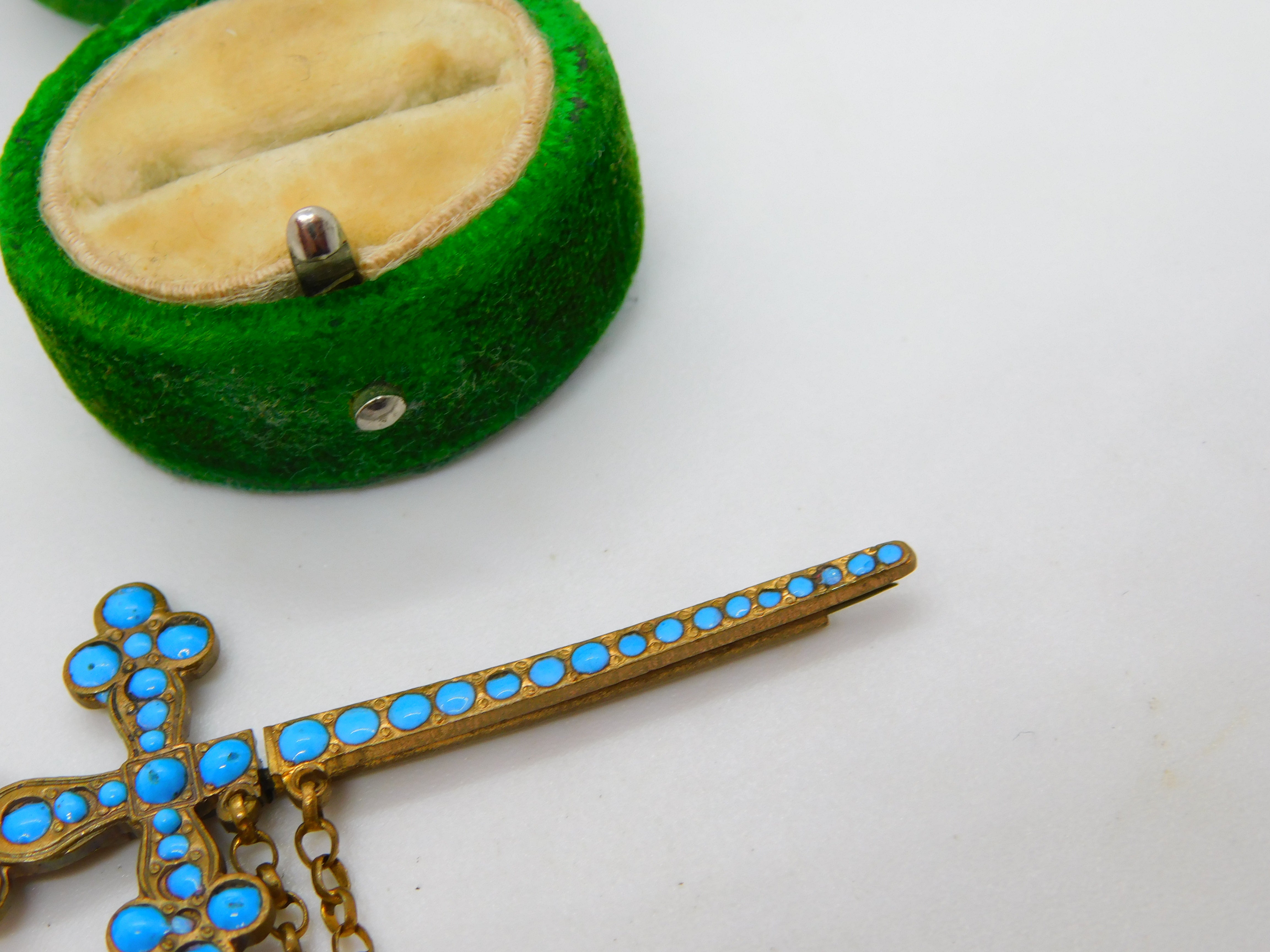 Victorian French Gilt Metal & Turquoise Set Sword in Scabbard Brooch Antique