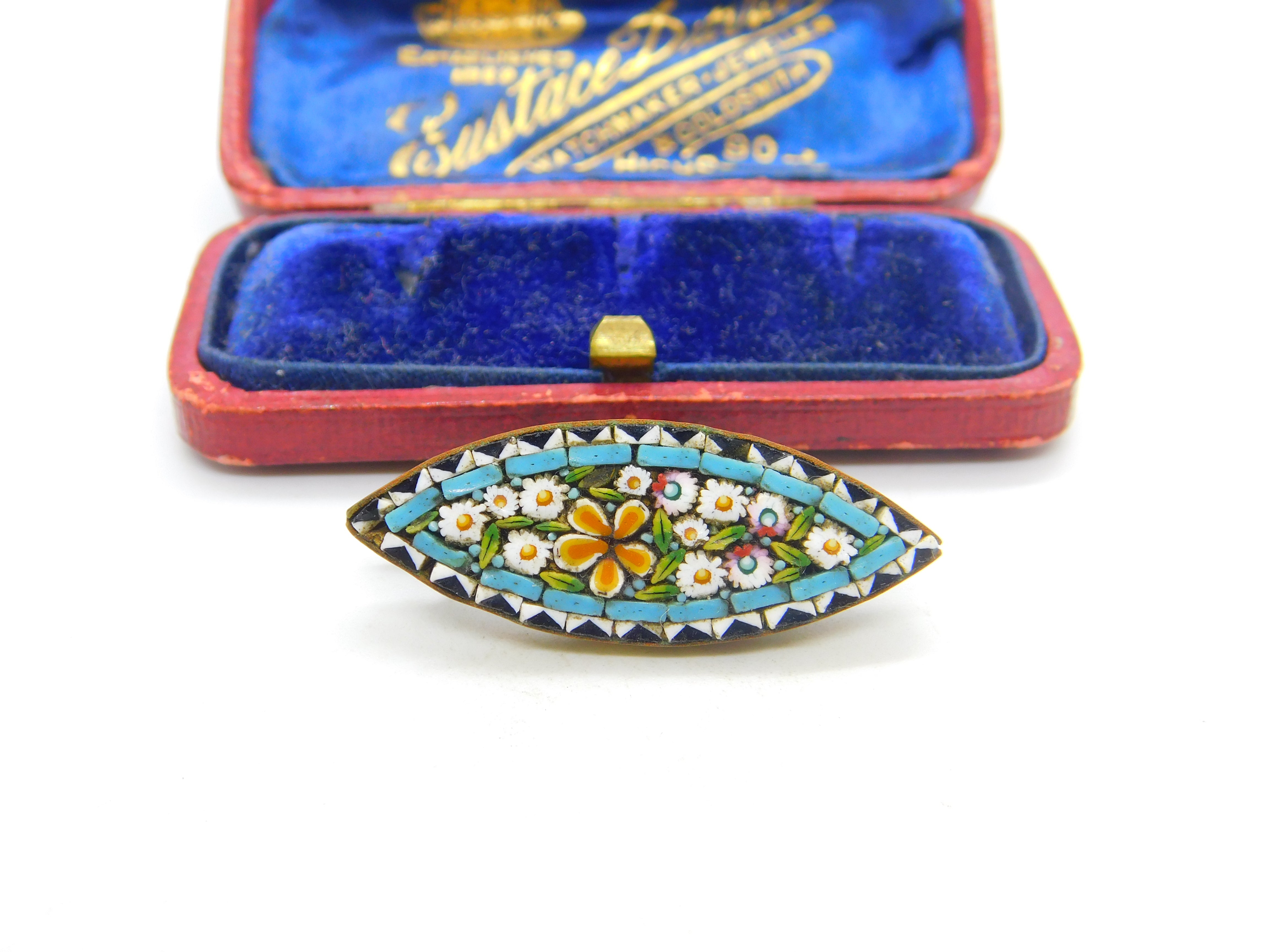 Details: A fantastic and wonderfully designed antique Victorian Italian gilt metal and colourful micro-mosaic brooch with lovely detailing c1860. This is a wonderful item that would make a perfect gift or addition to any collection. The BOX pictured is for PRESENTATION ONLY and is NOT included in the listings but used to frame the pictures unless specifically stated otherwise.
