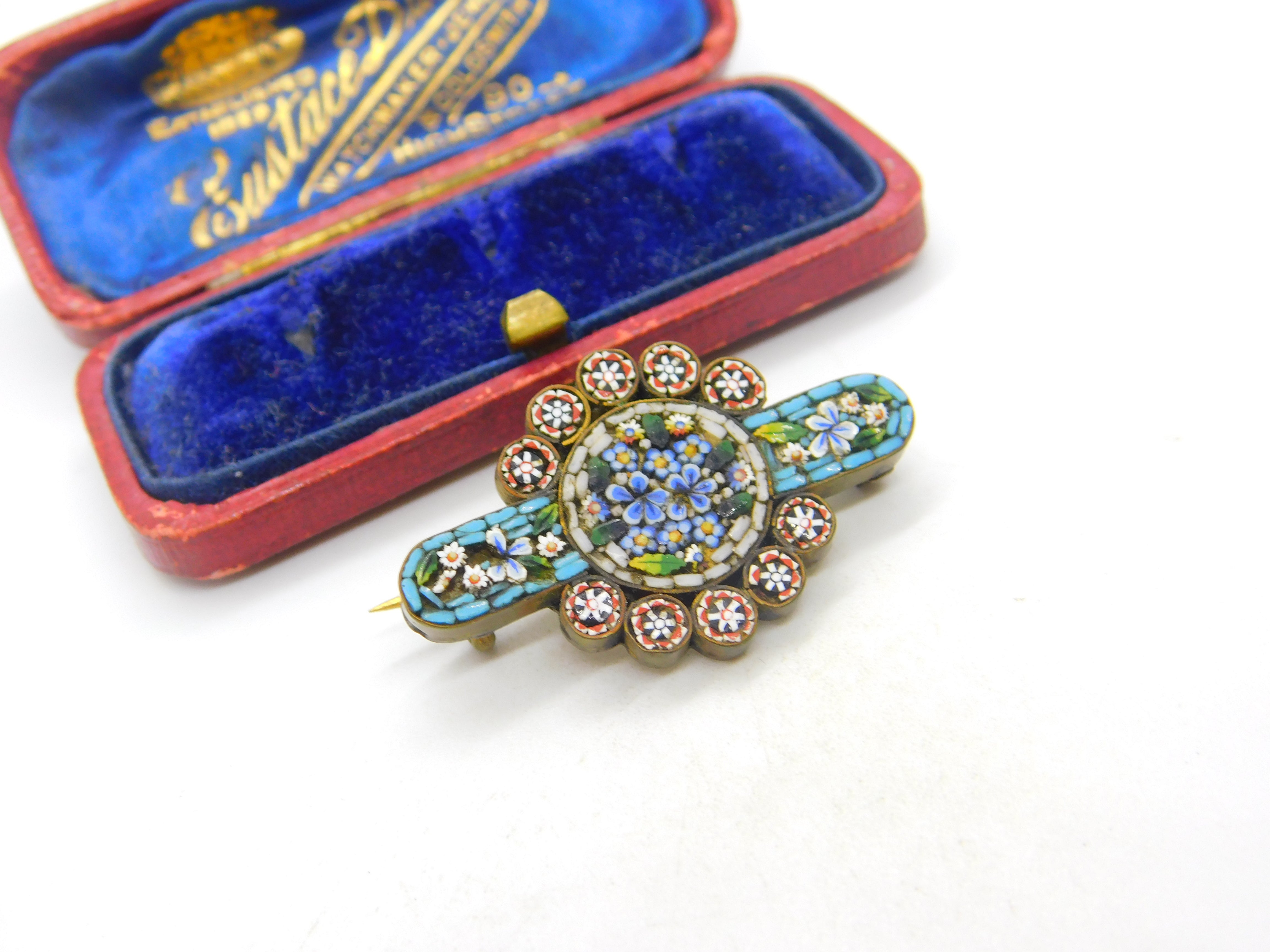 Victorian Gilt Metal Micro-Mosaic Floral Brooch Antique c1860 Italian