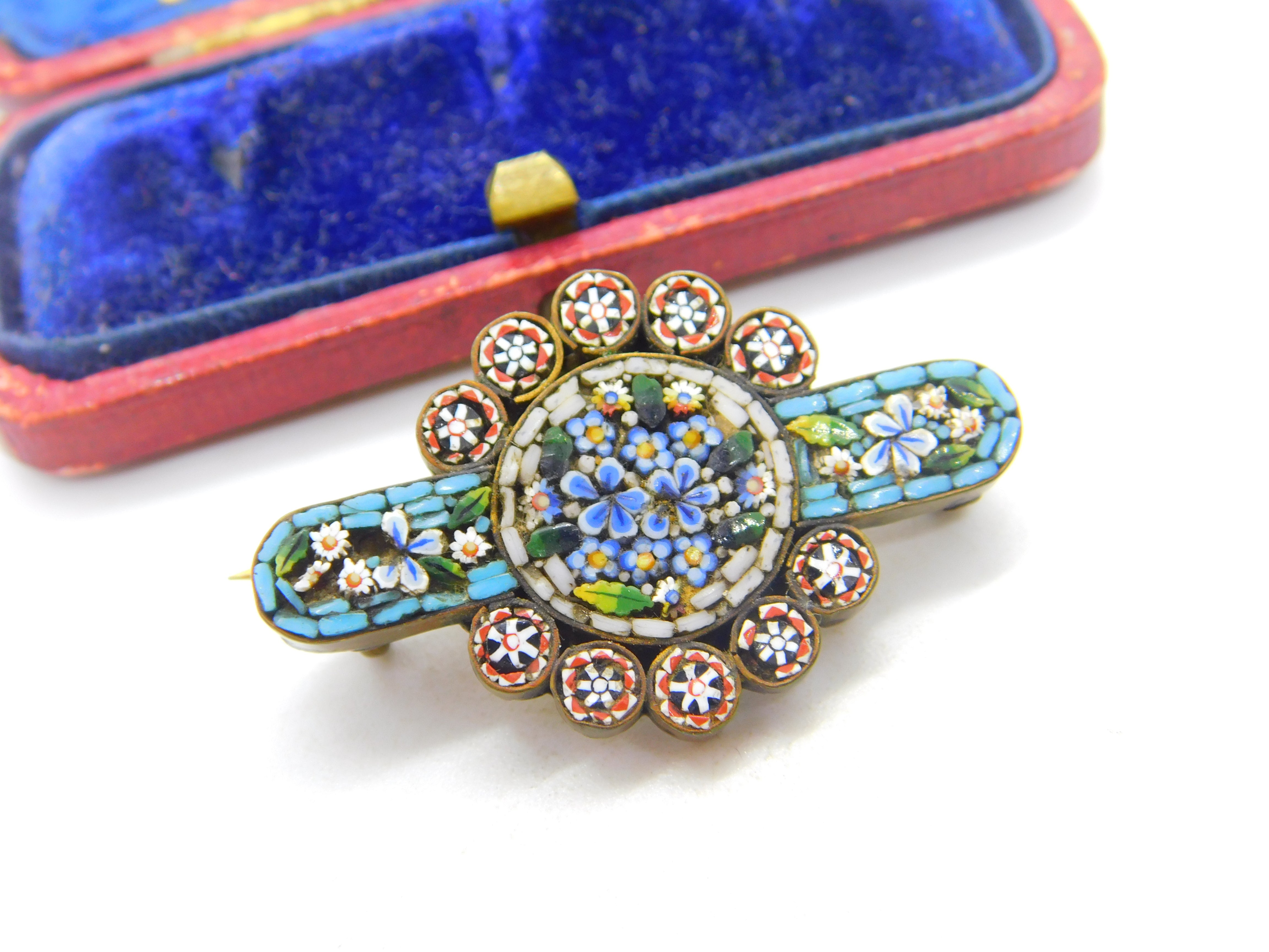 Details: A fantastic and wonderfully designed antique Victorian Italian gilt metal and micro-mosaic brooch c1860. This is a wonderful item that would make a perfect gift or addition to any collection. The BOX pictured is for PRESENTATION ONLY and is NOT included in the listings but used to frame the pictures unless specifically stated otherwise.