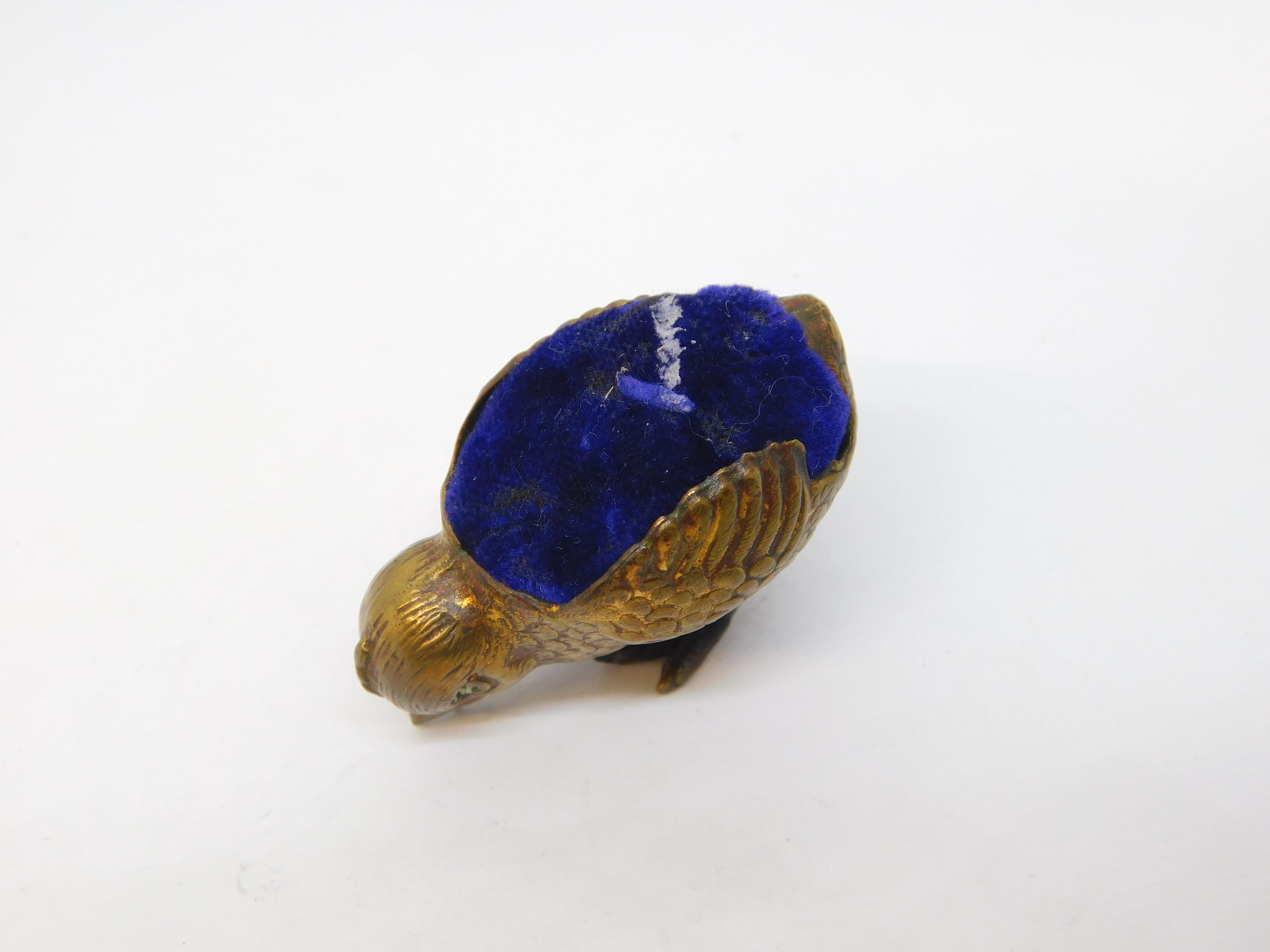 Victorian Gilt Metal Pecking Chick Novelty Pin Cushion Antique c1860