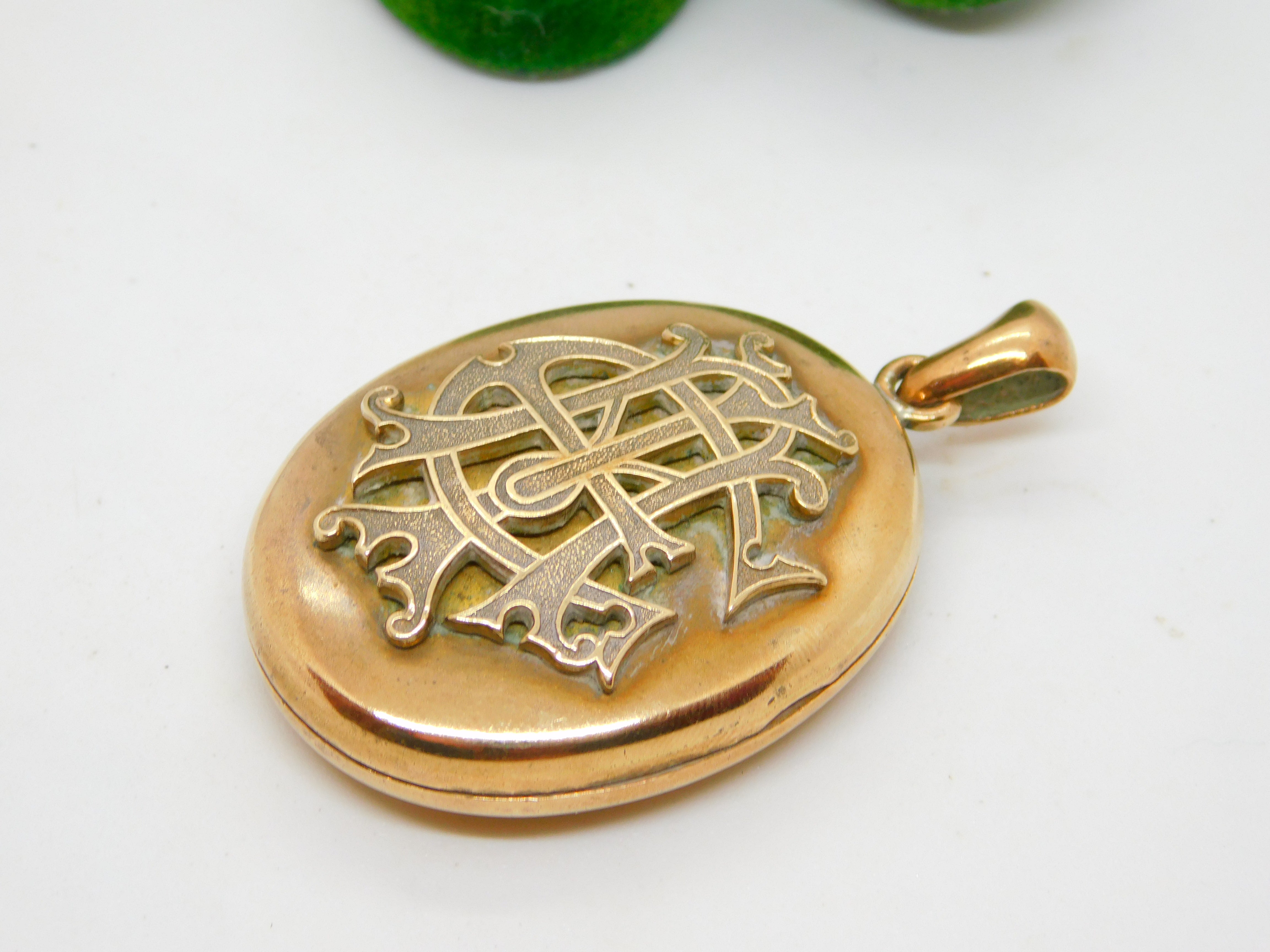 Victorian Large Pinchbeck Monogram Double Locket Pendant Antique c1860
