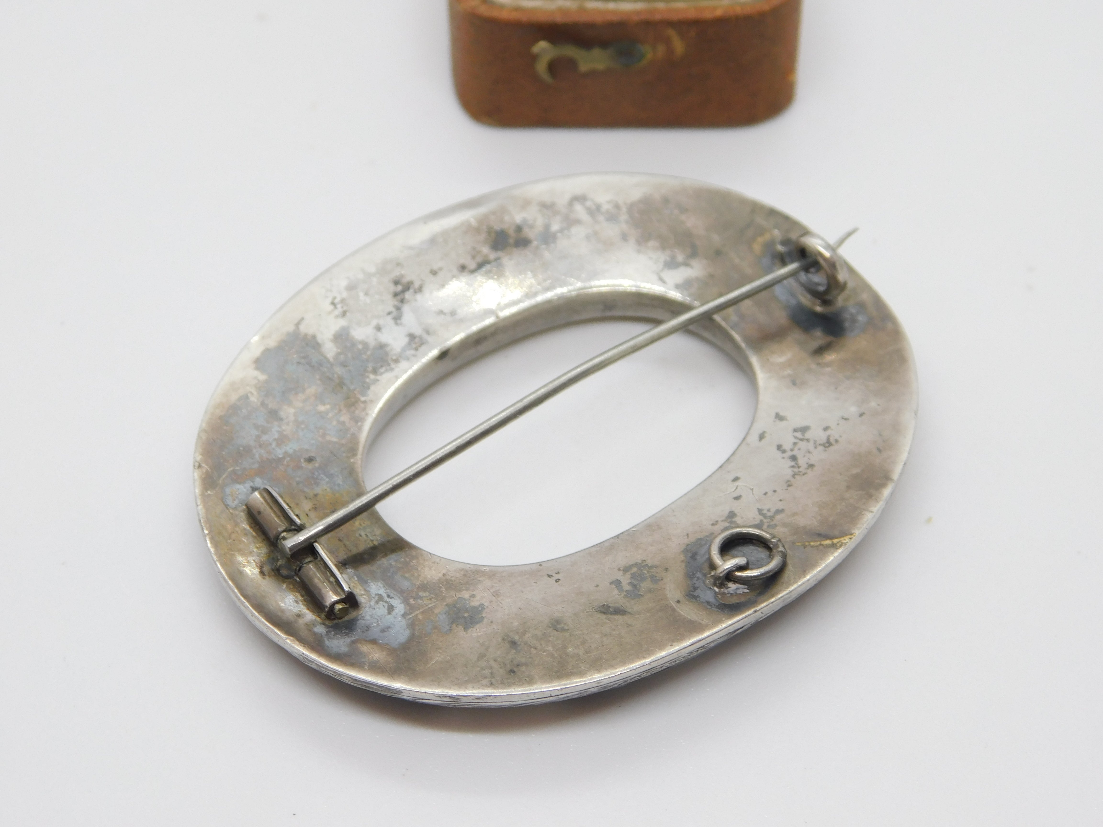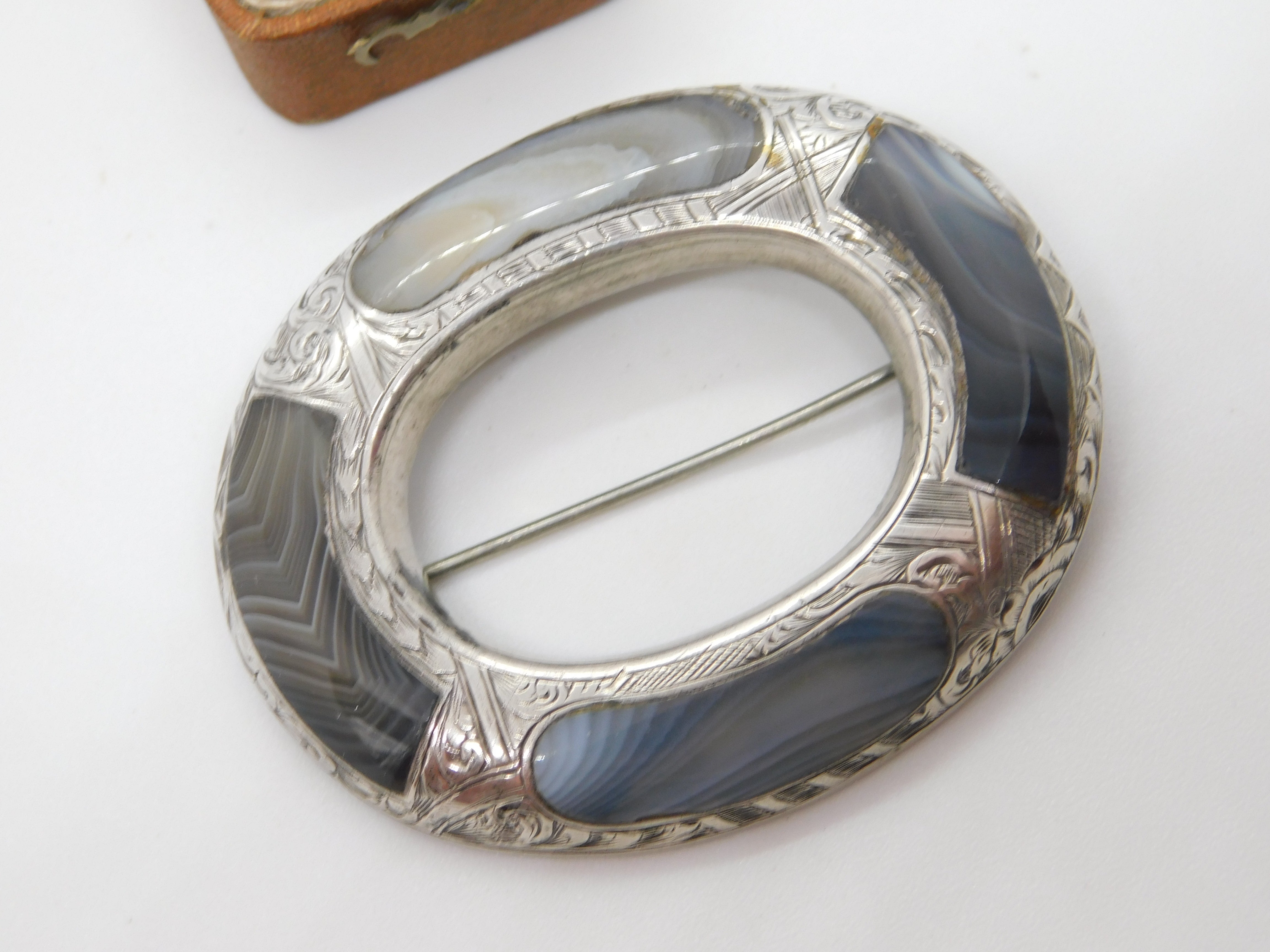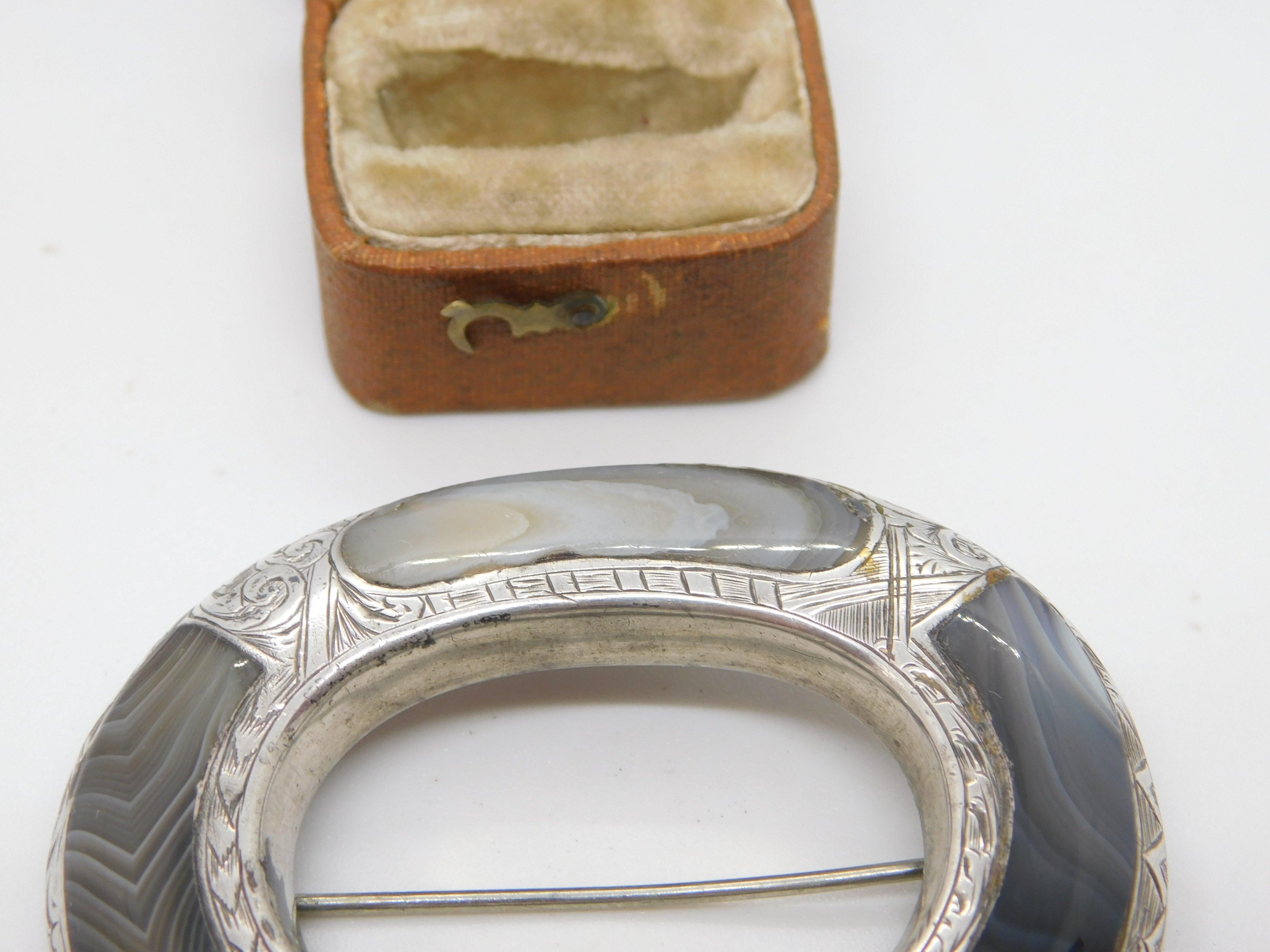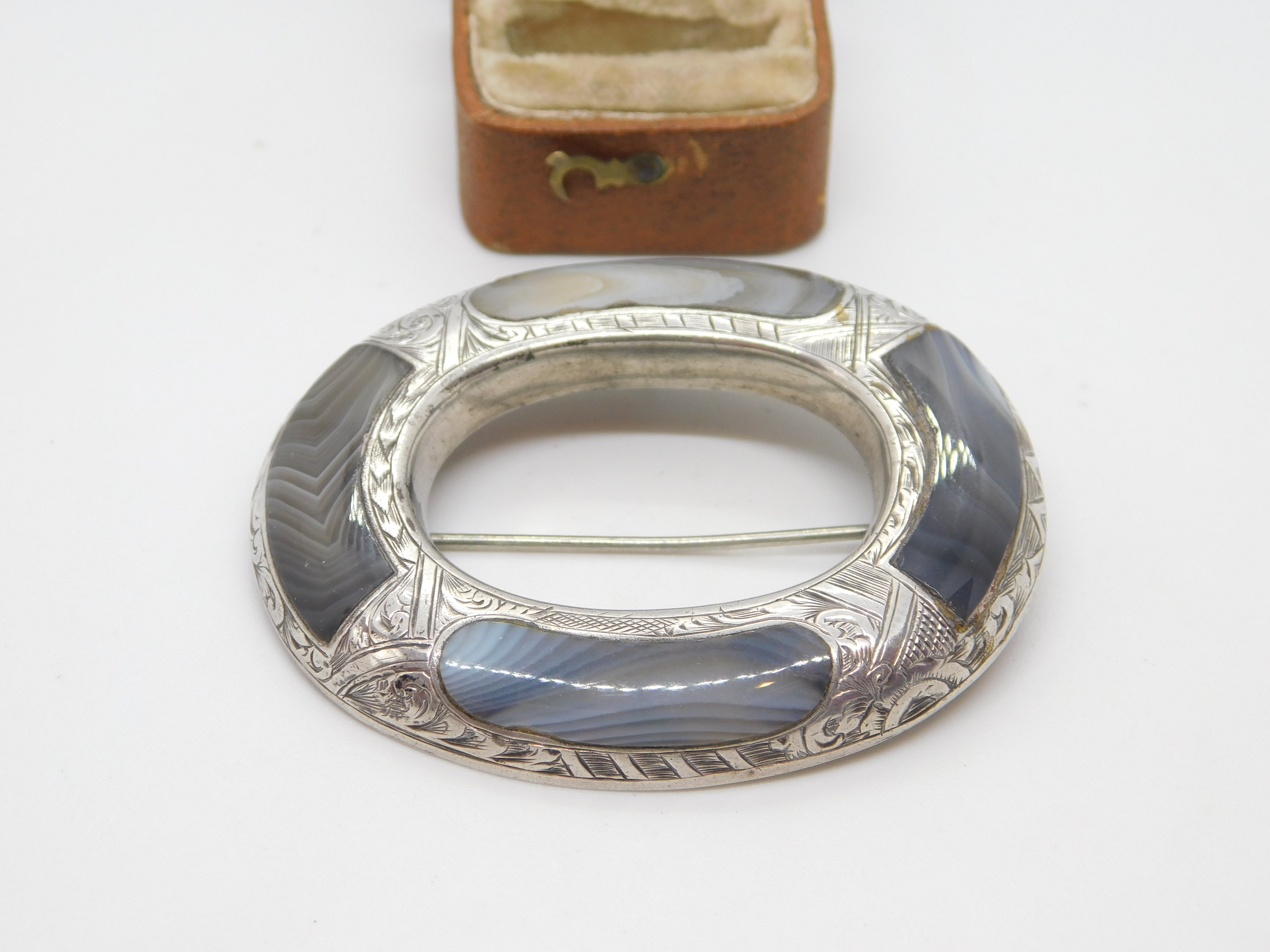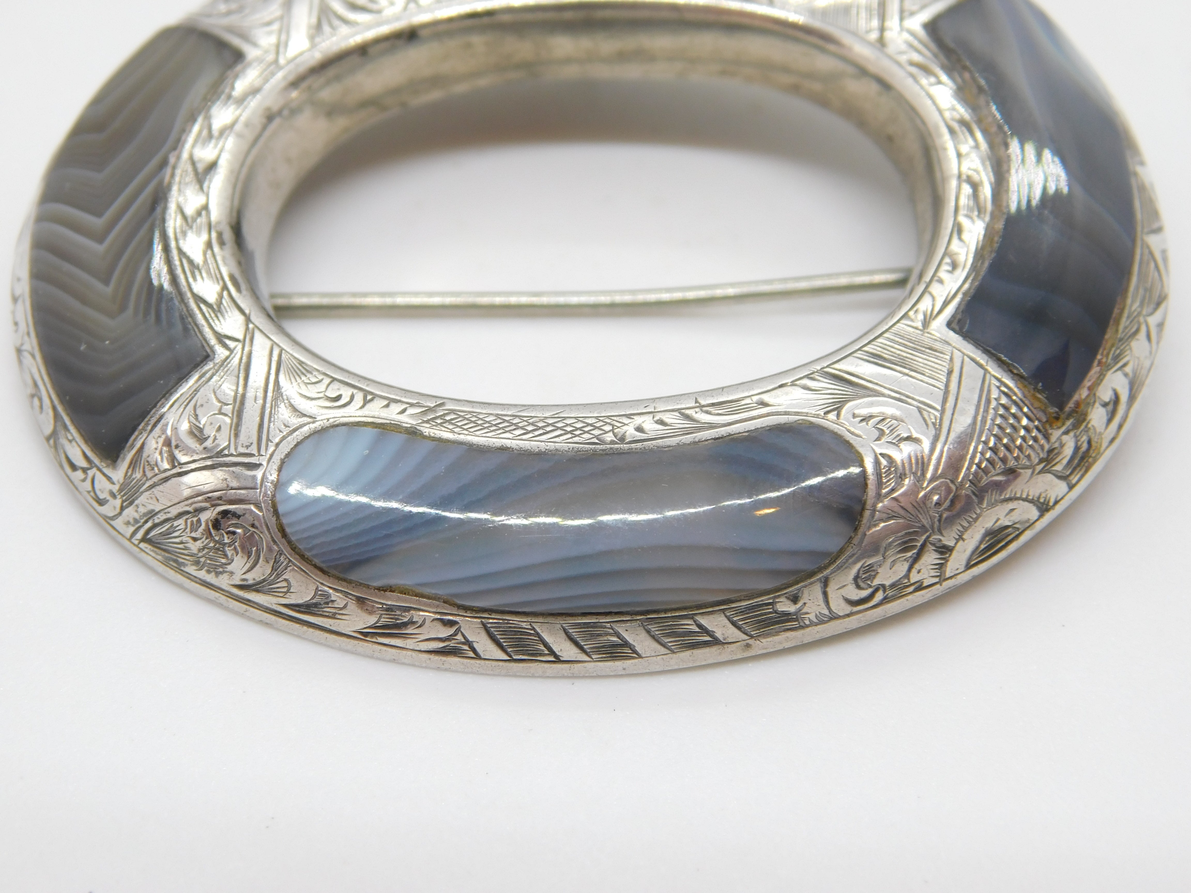 Victorian Large Scottish Sterling Silver Montrose Agate Kilt Brooch Antique 1860