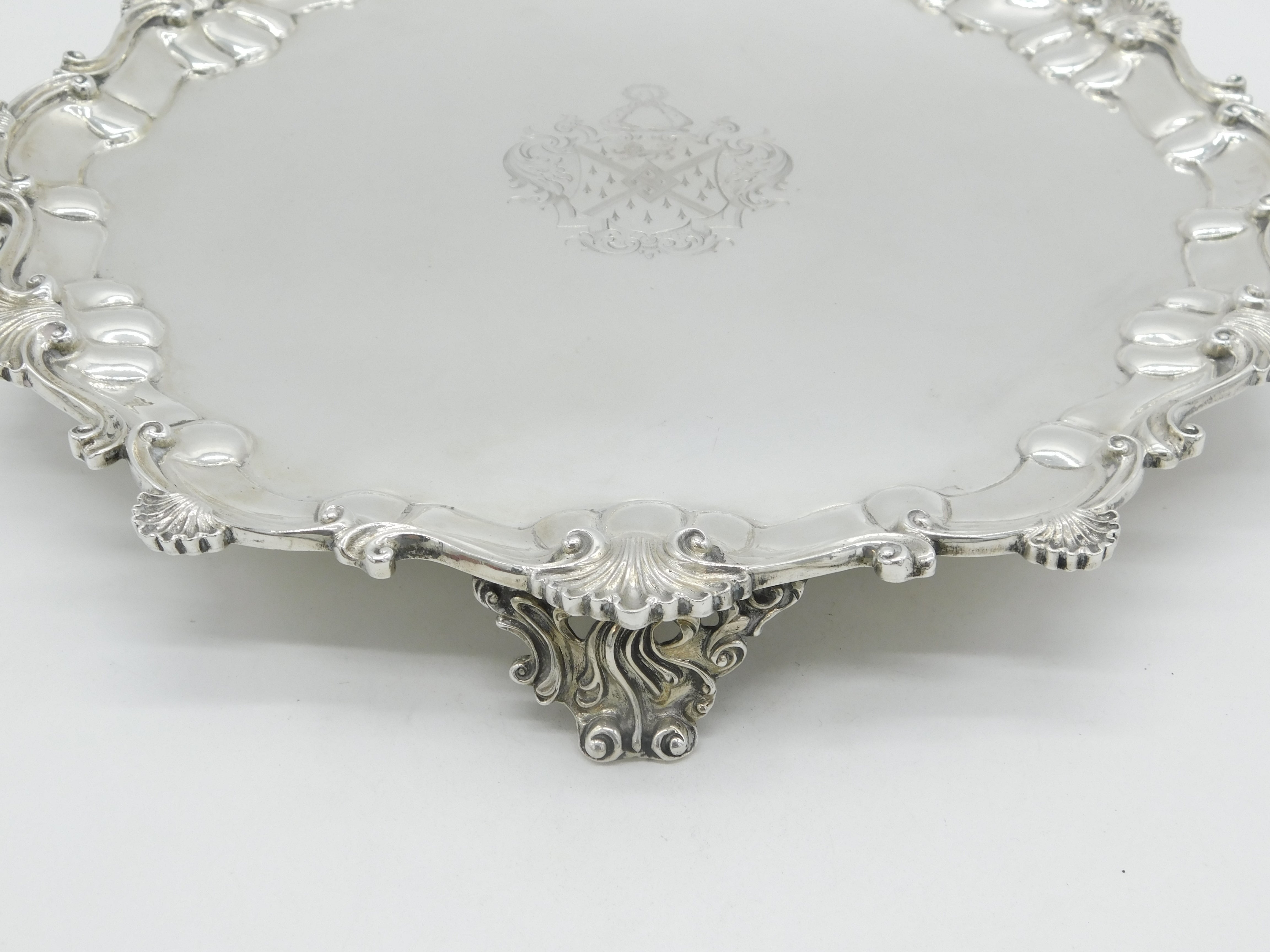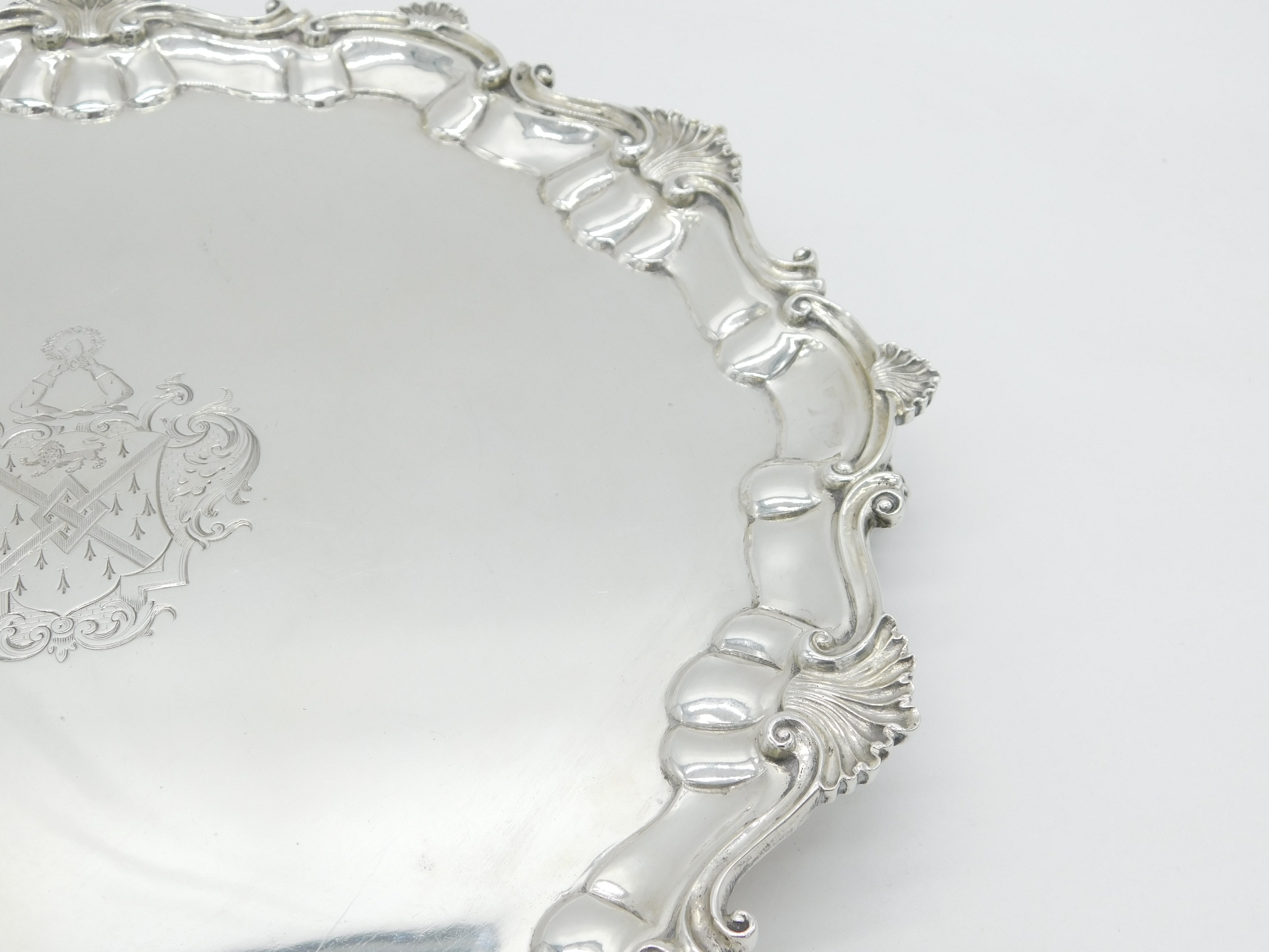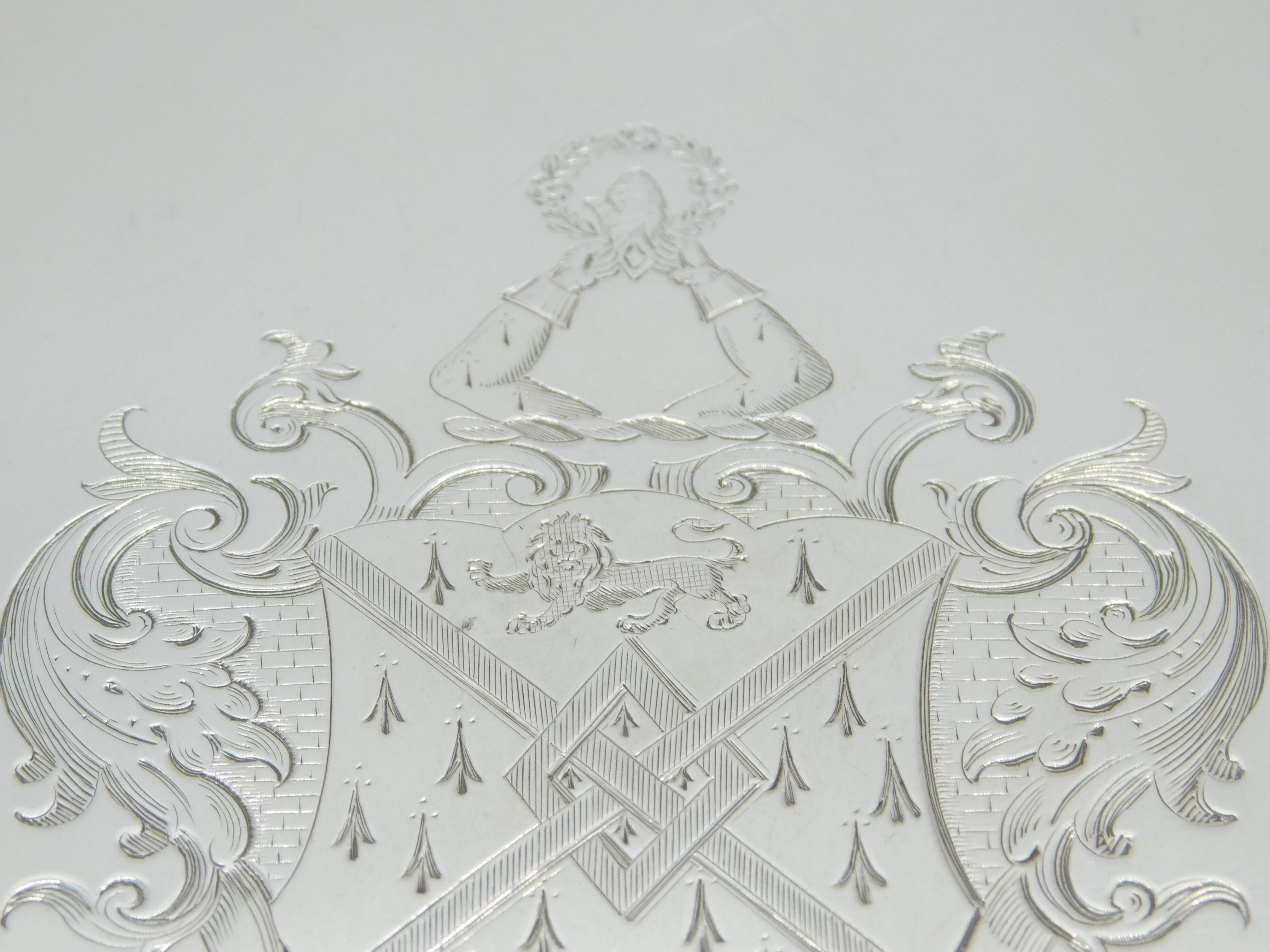 Victorian Large Sterling Silver Armorial Crested Salver Antique 1876 London