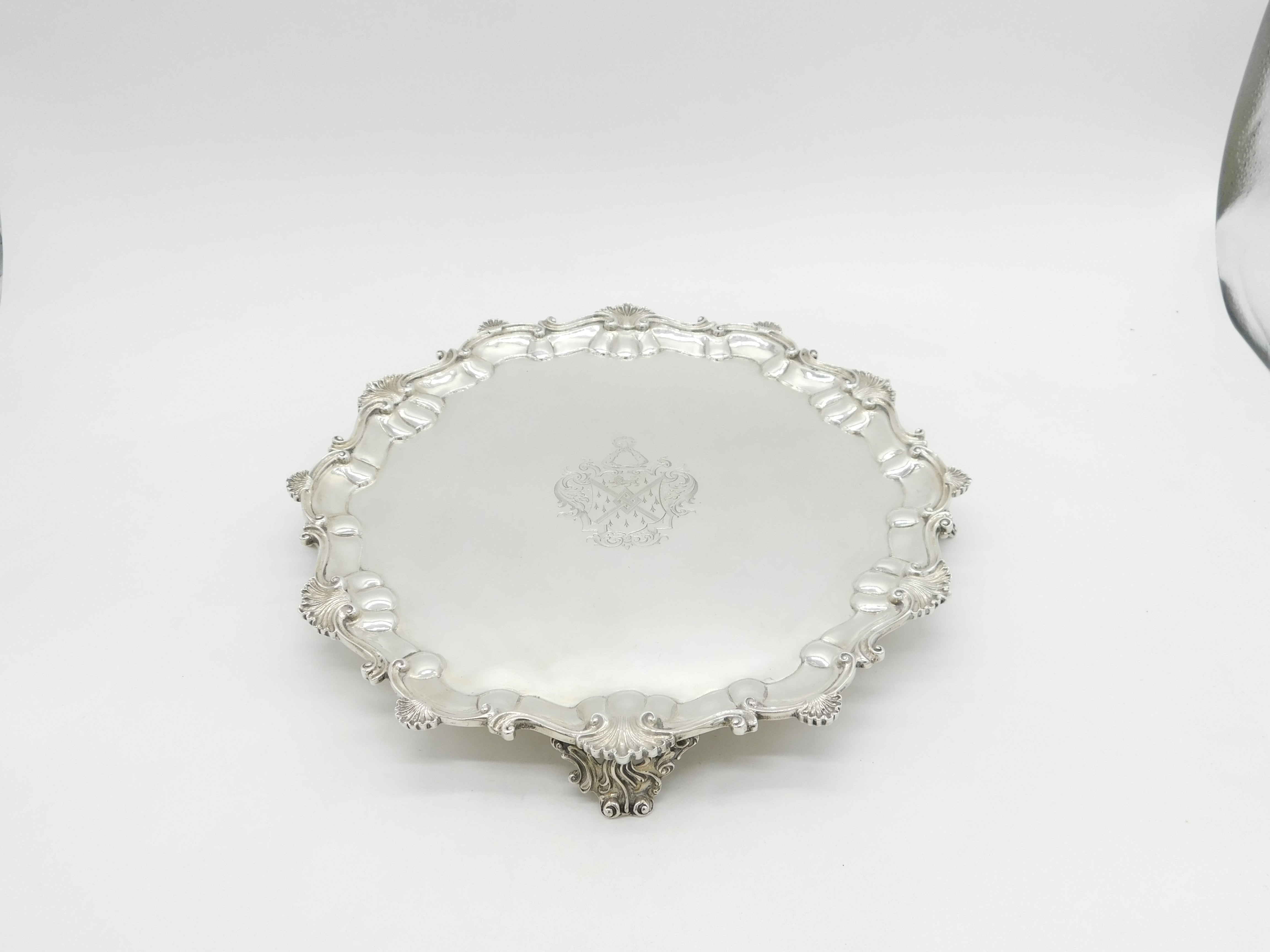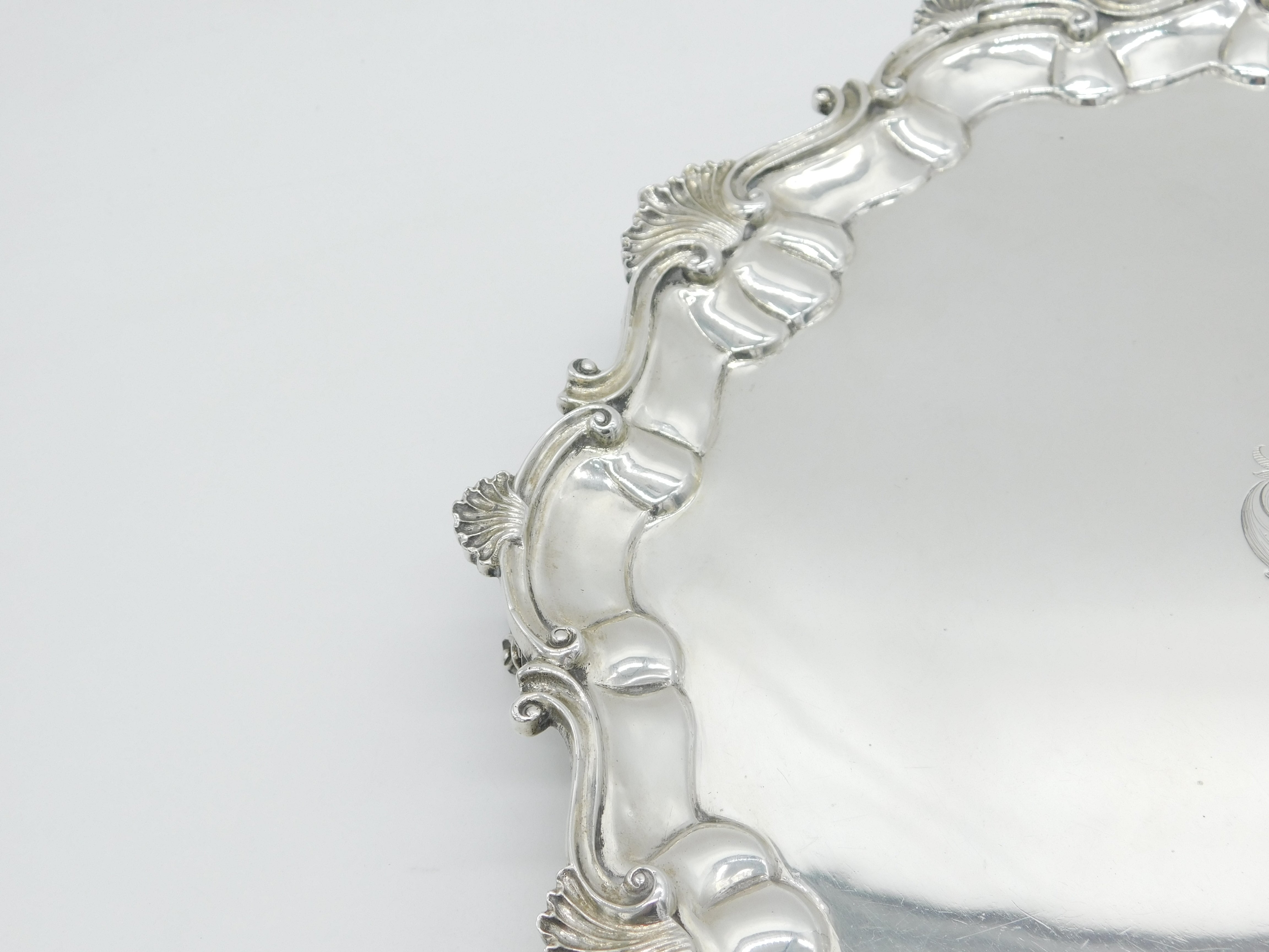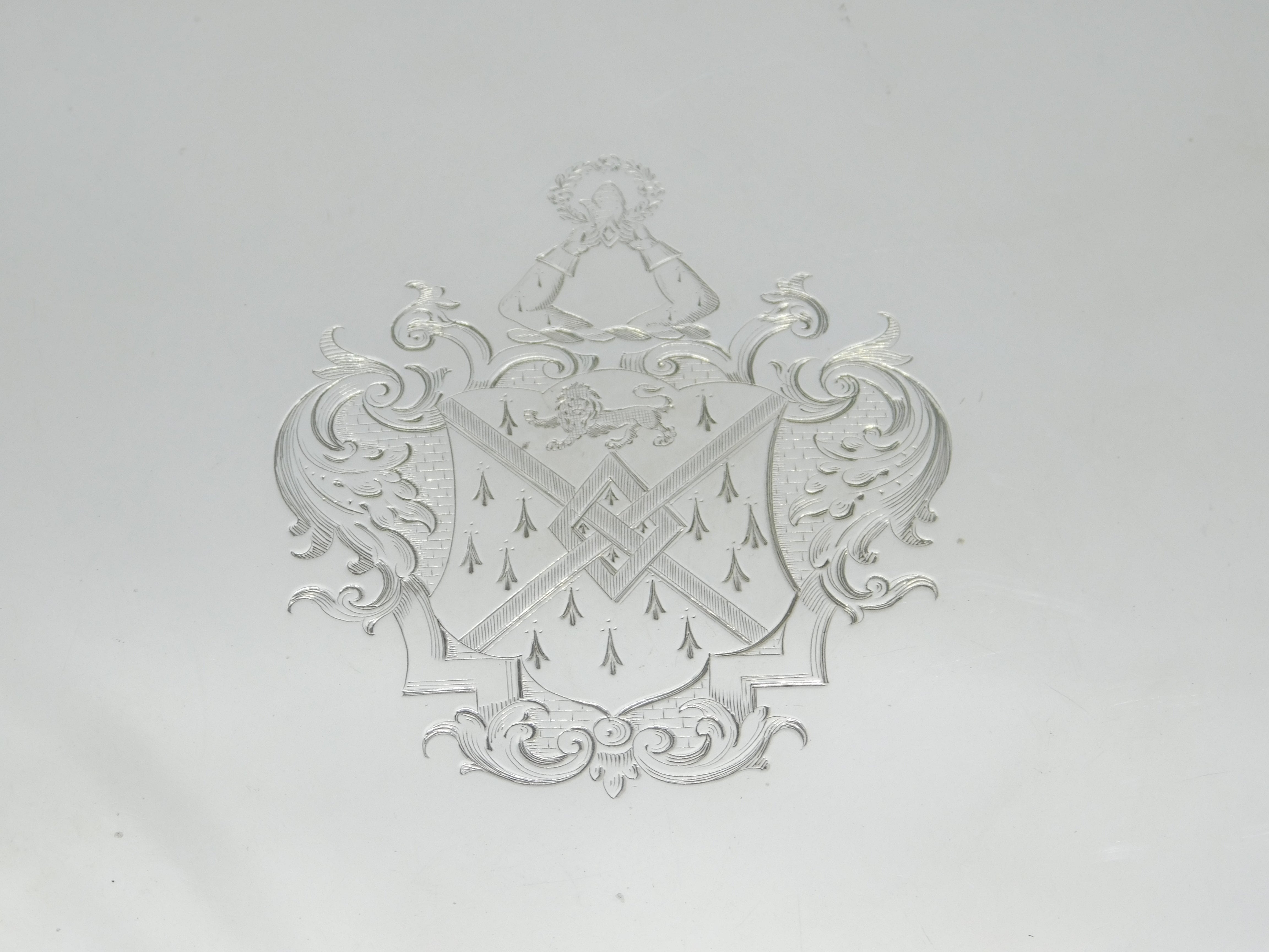 Victorian Large Sterling Silver Armorial Crested Salver Antique 1876 London