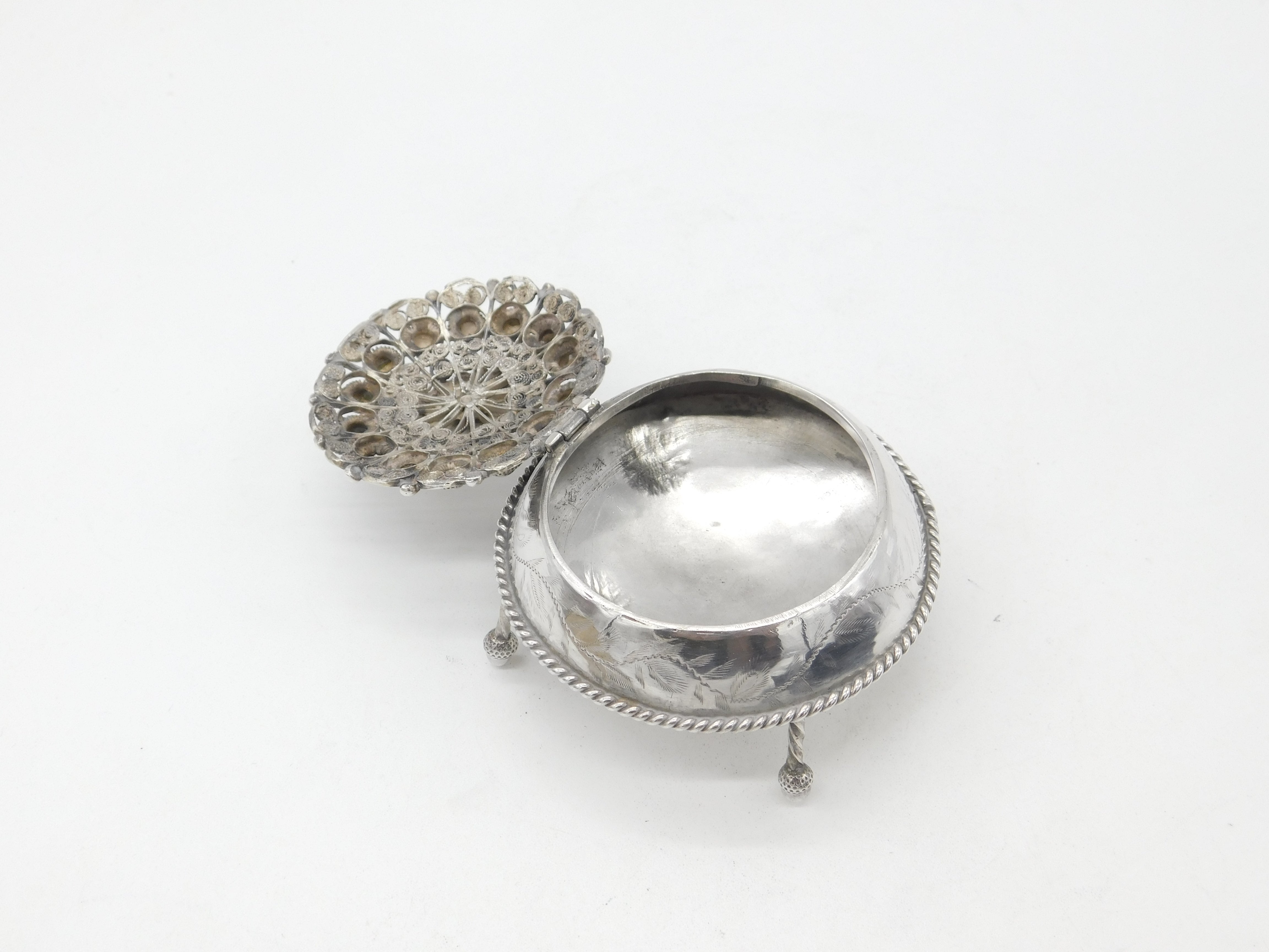 Victorian Middle Eastern Sterling Silver Trinket Box Acorn Feet Antique c1860
