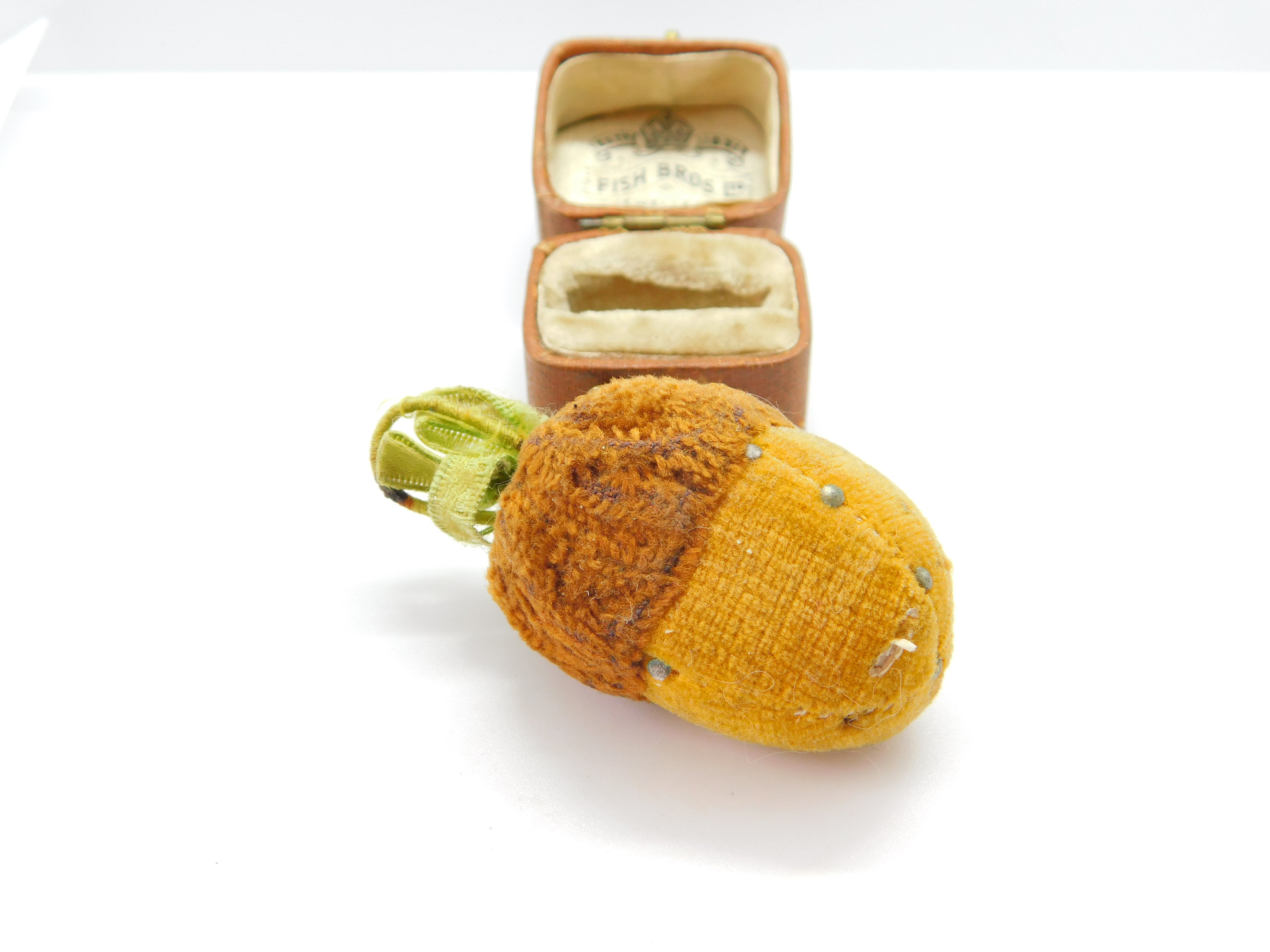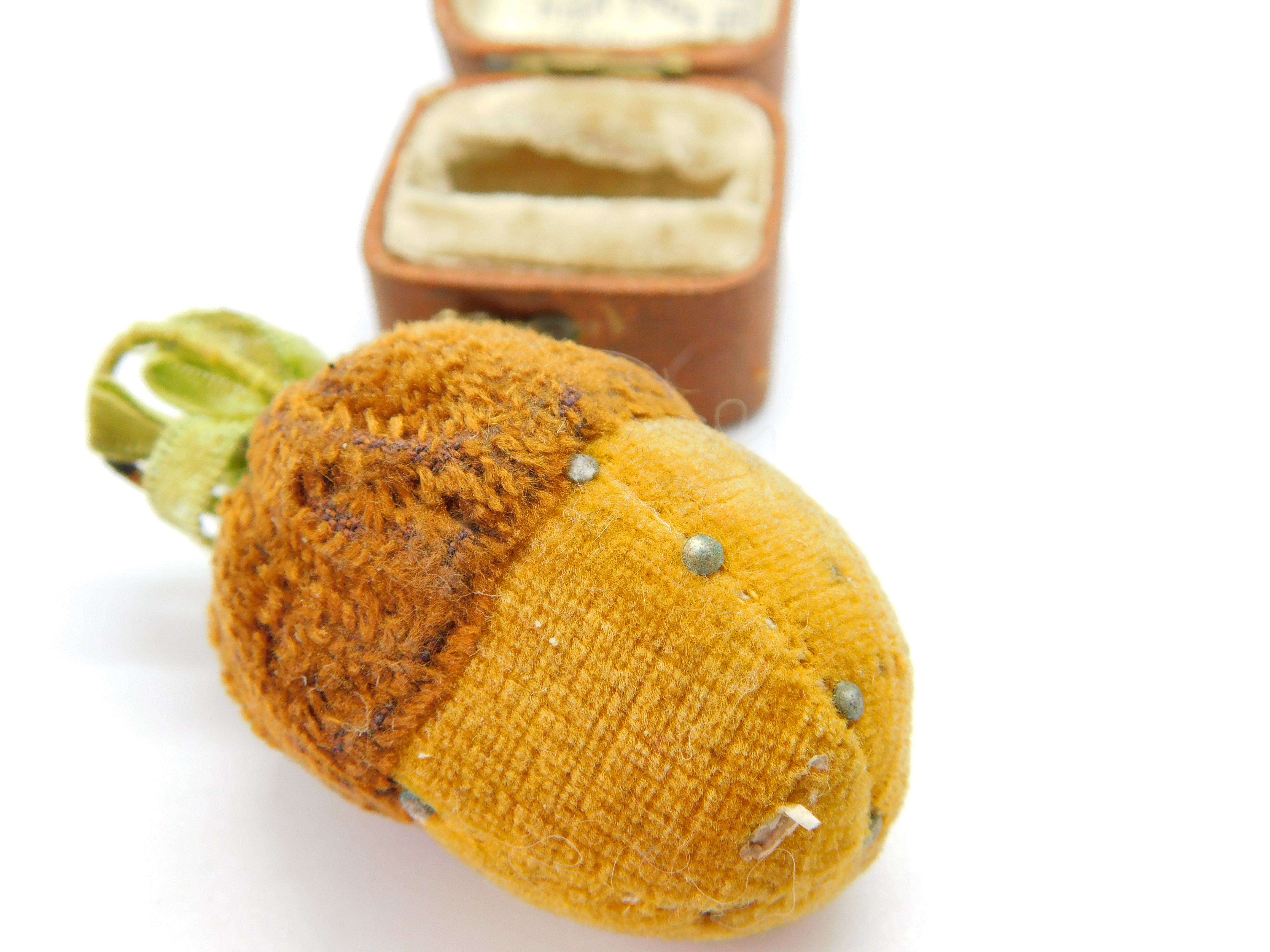 Details: A fantastic and wonderfully designed antique Victorian fabric novelty pin cushion in the form of an acorn with lovely detailing c1890. This is a wonderful item that would make a perfect gift or addition to any collection. The BOX pictured is for PRESENTATION ONLY and is NOT included in the listings but used to frame the pictures unless specifically stated otherwise.
