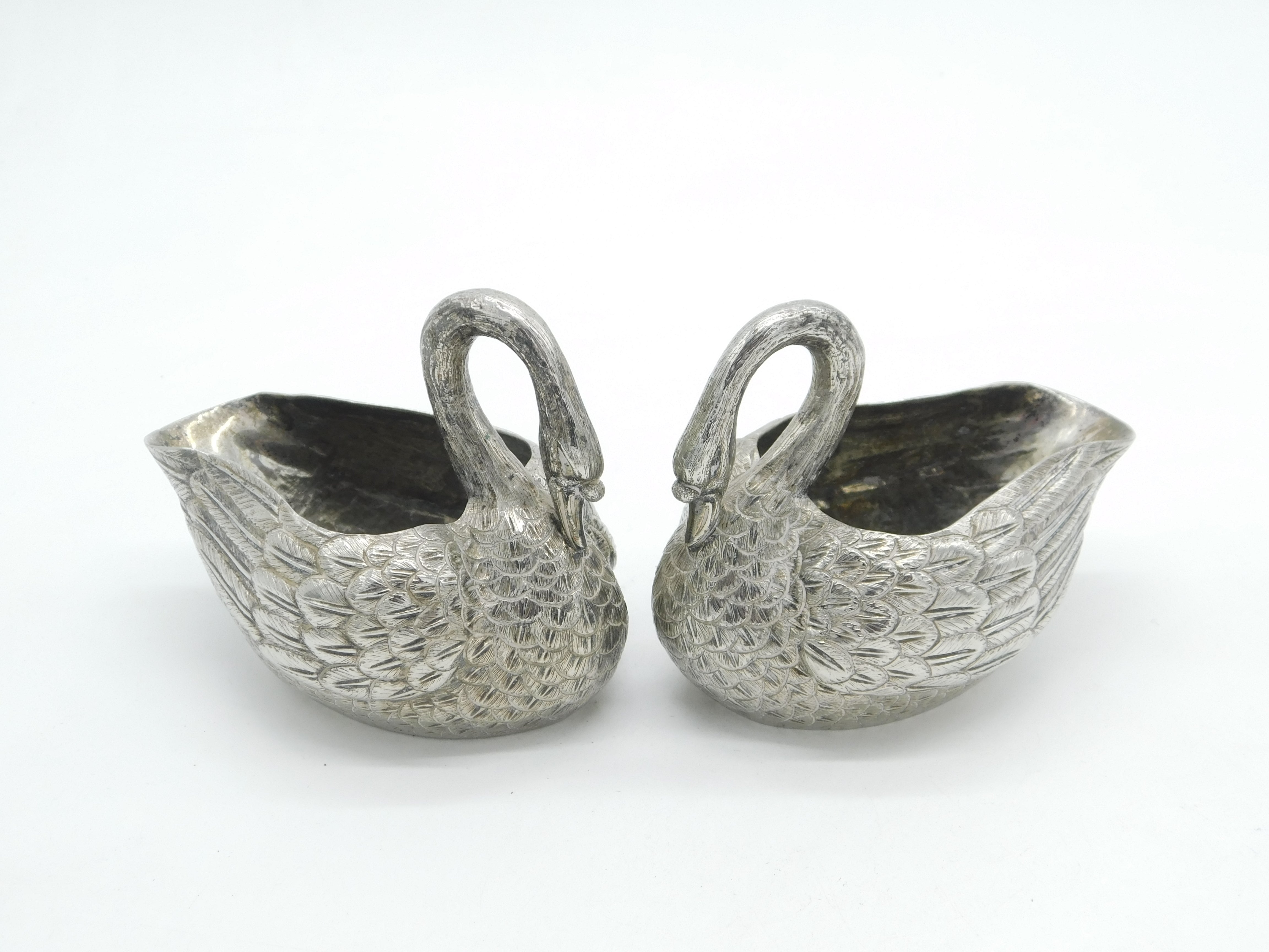 Victorian Novelty Silver Plated Swan Form Sweet Treat Bowls Antique c1880