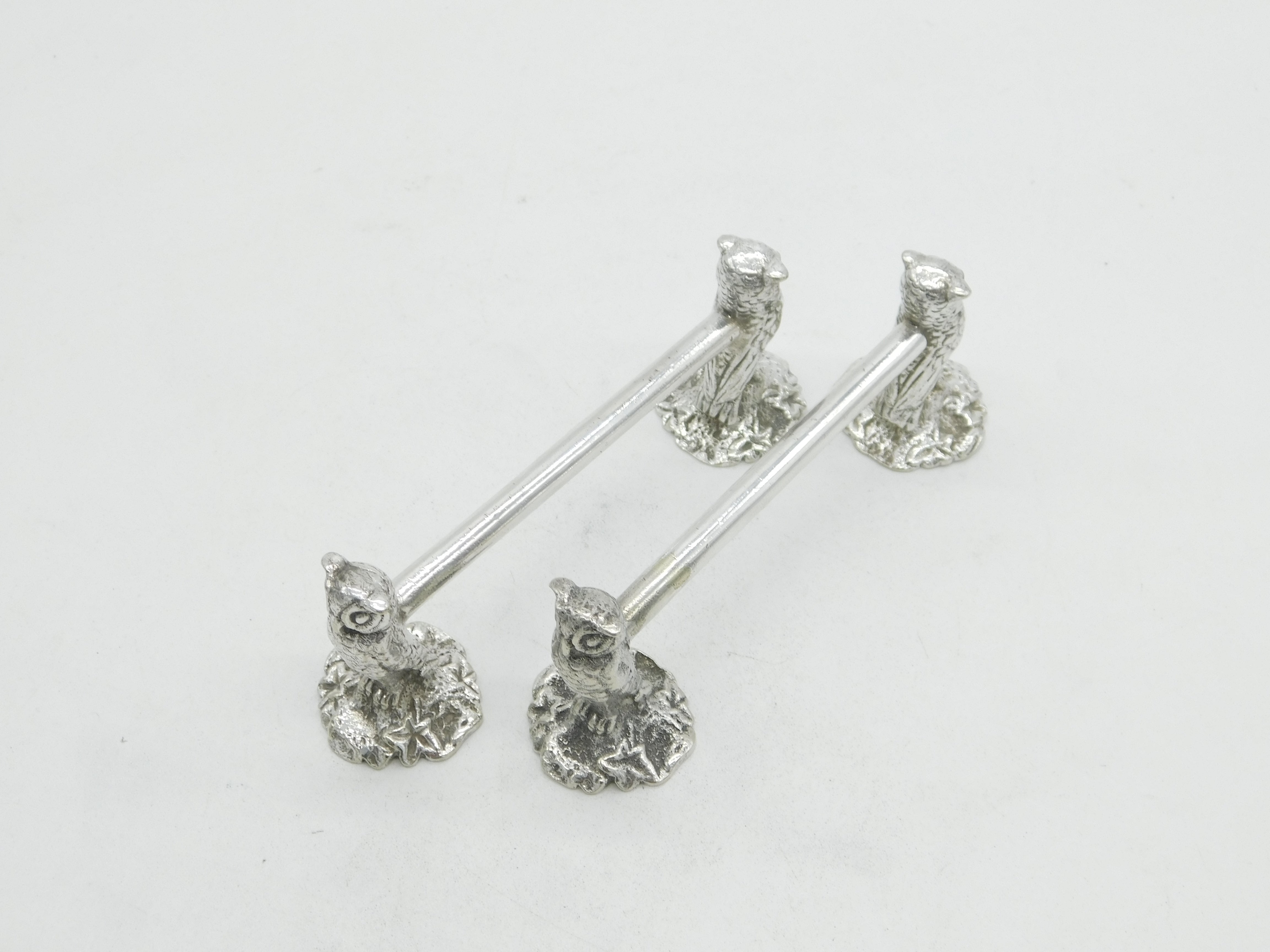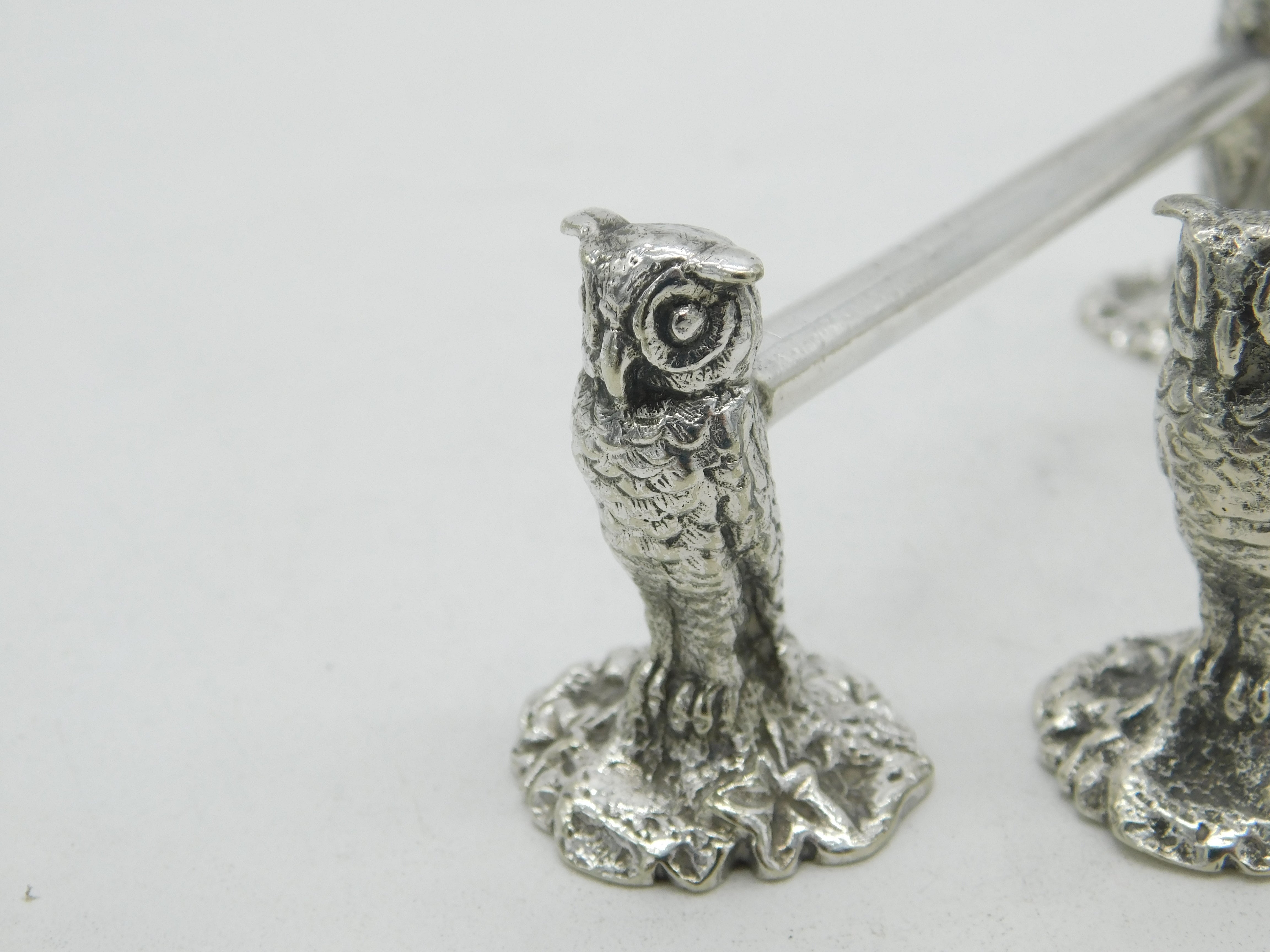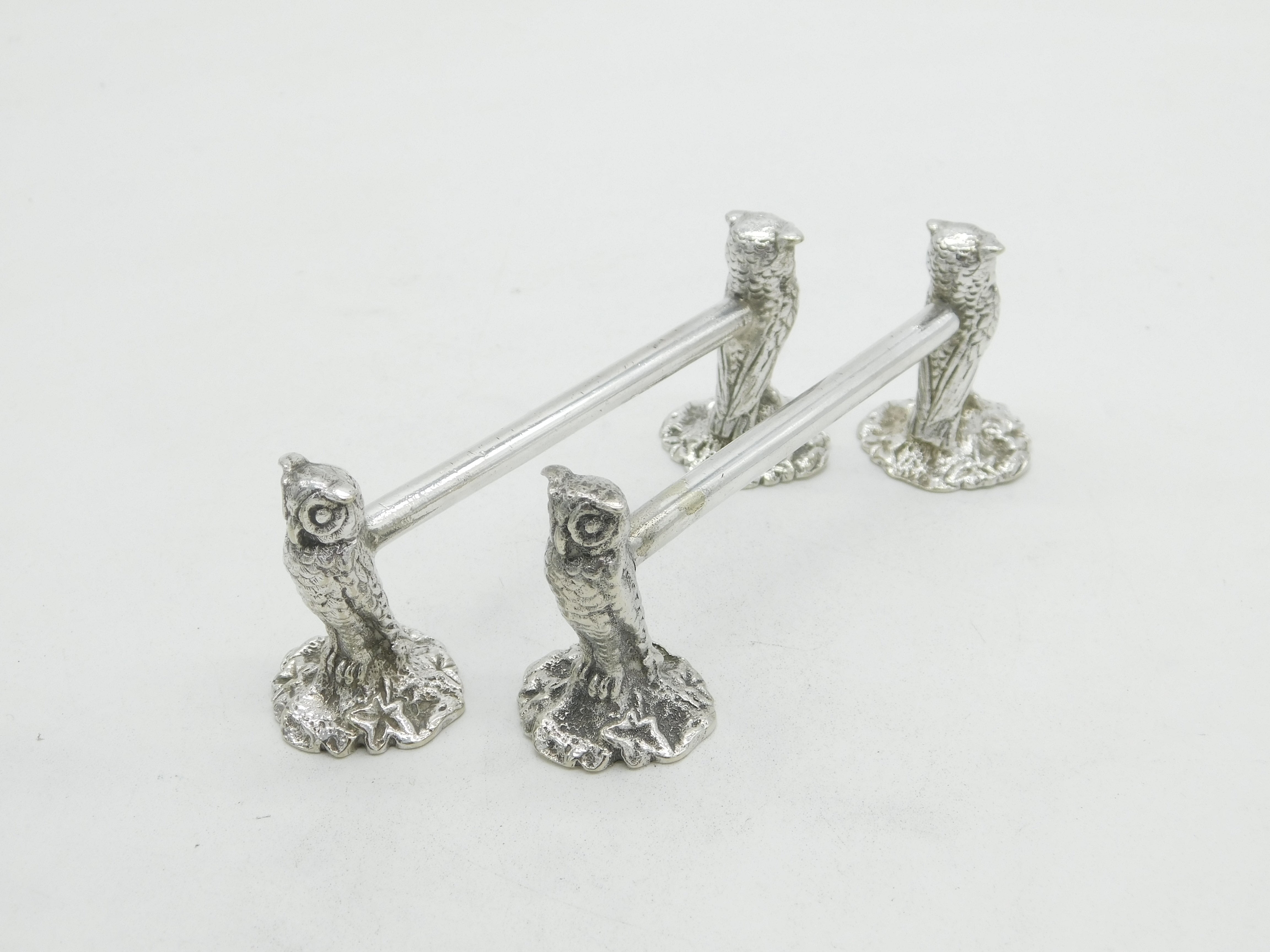 Victorian Pair of Silver Plated Perched Owl Knife Rests Antique c1880 Sheffield