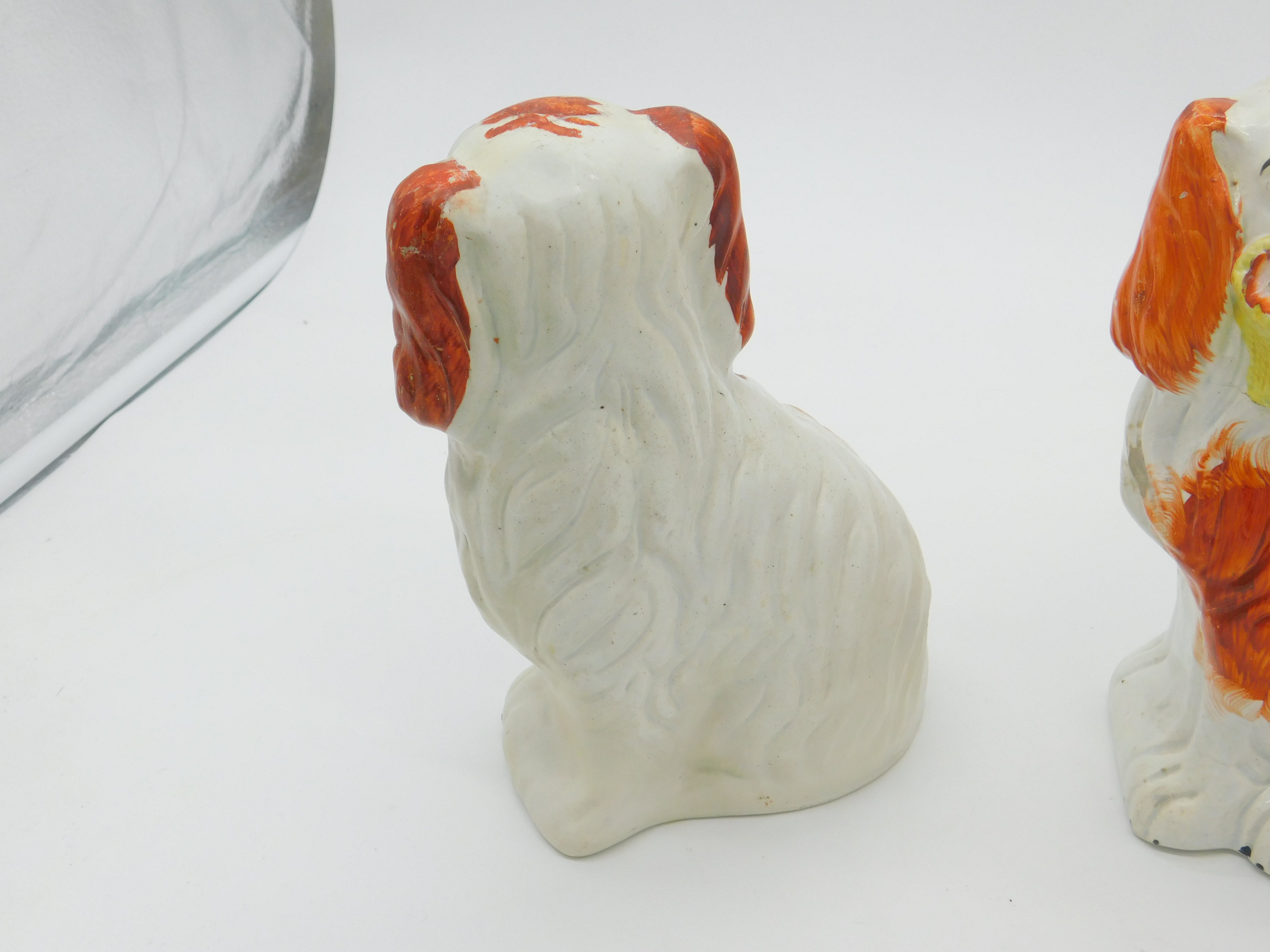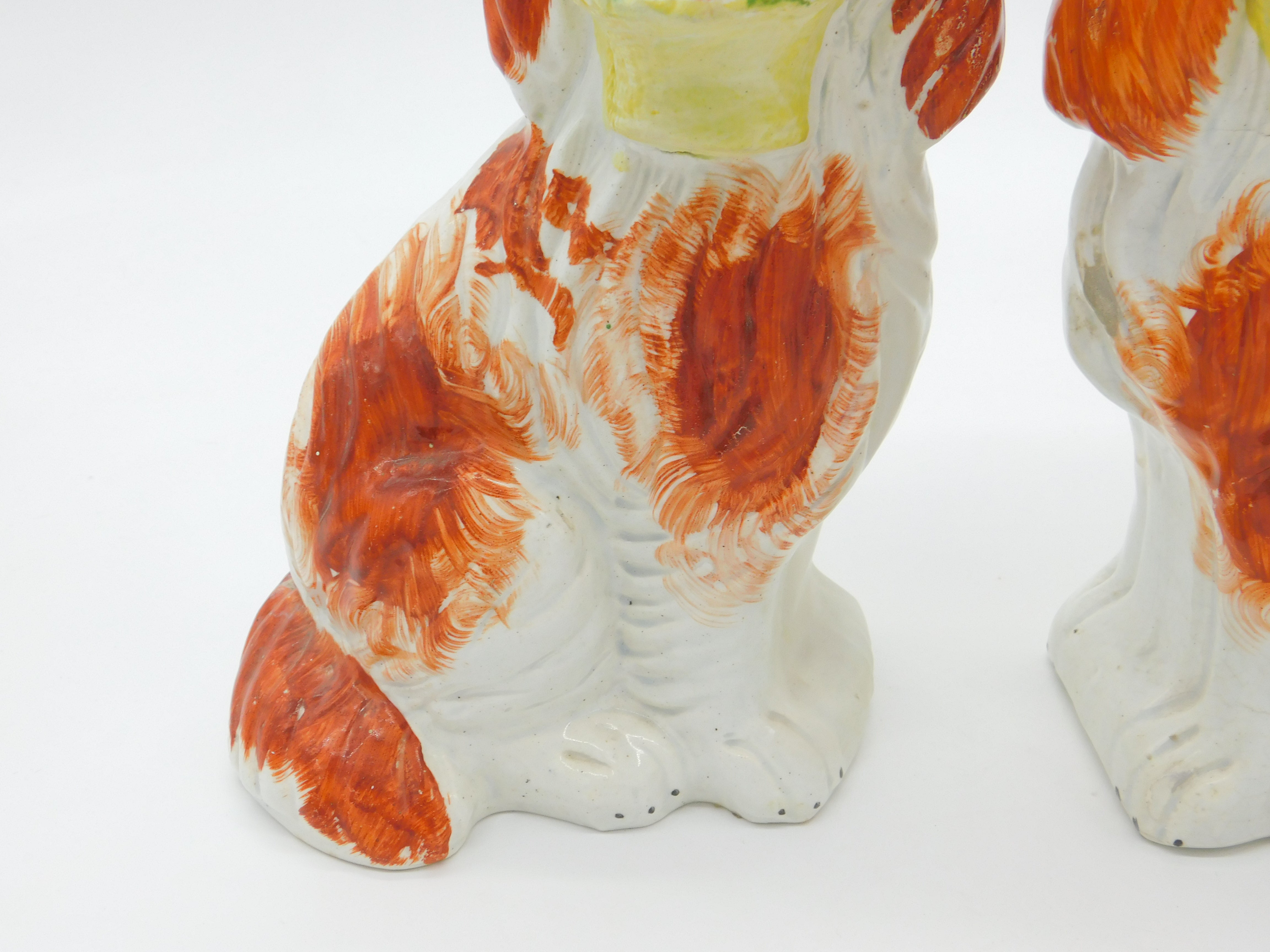 Victorian Pair of Staffordshire Pottery Spaniels Flower Baskets Antique c1860
