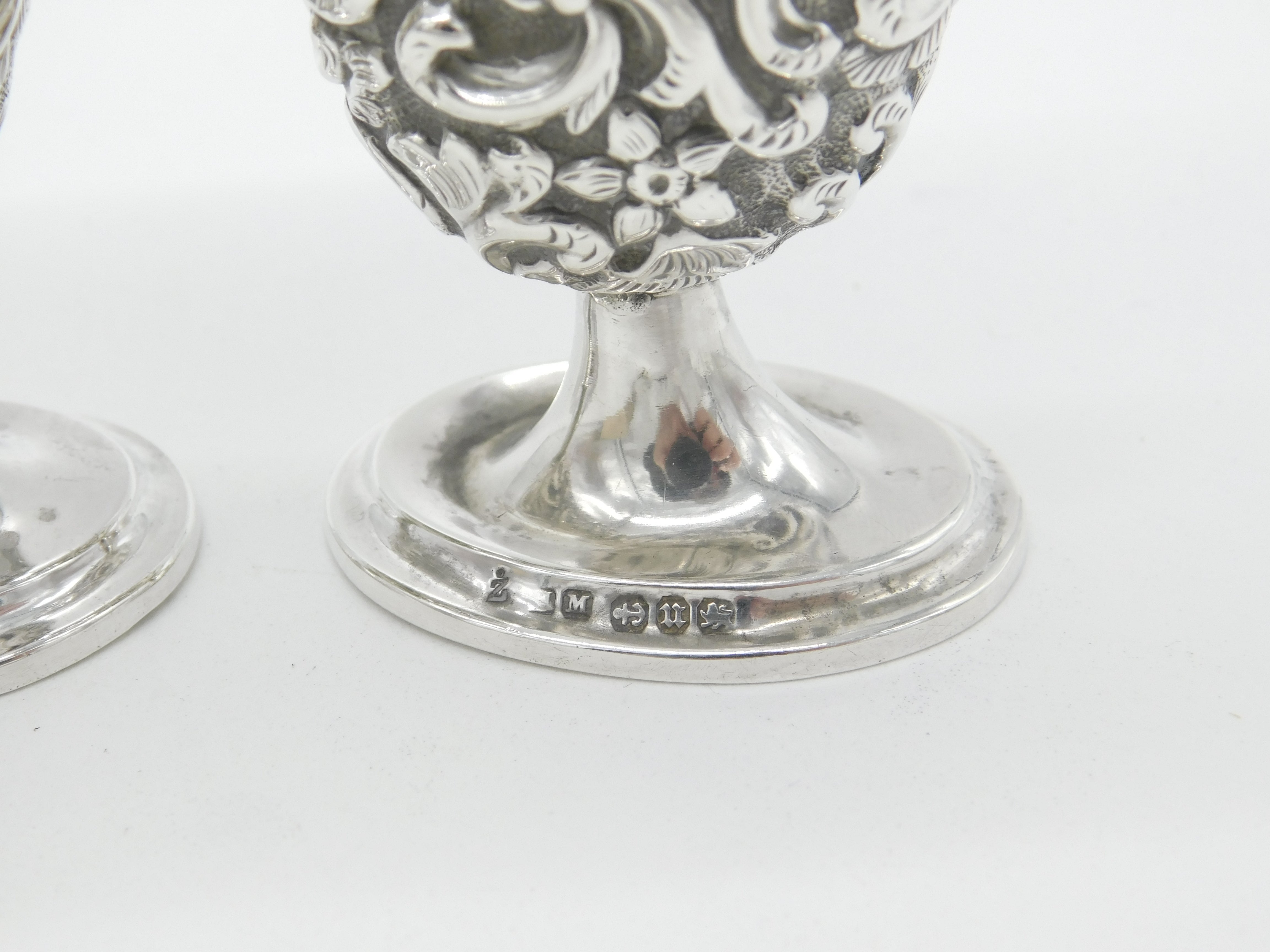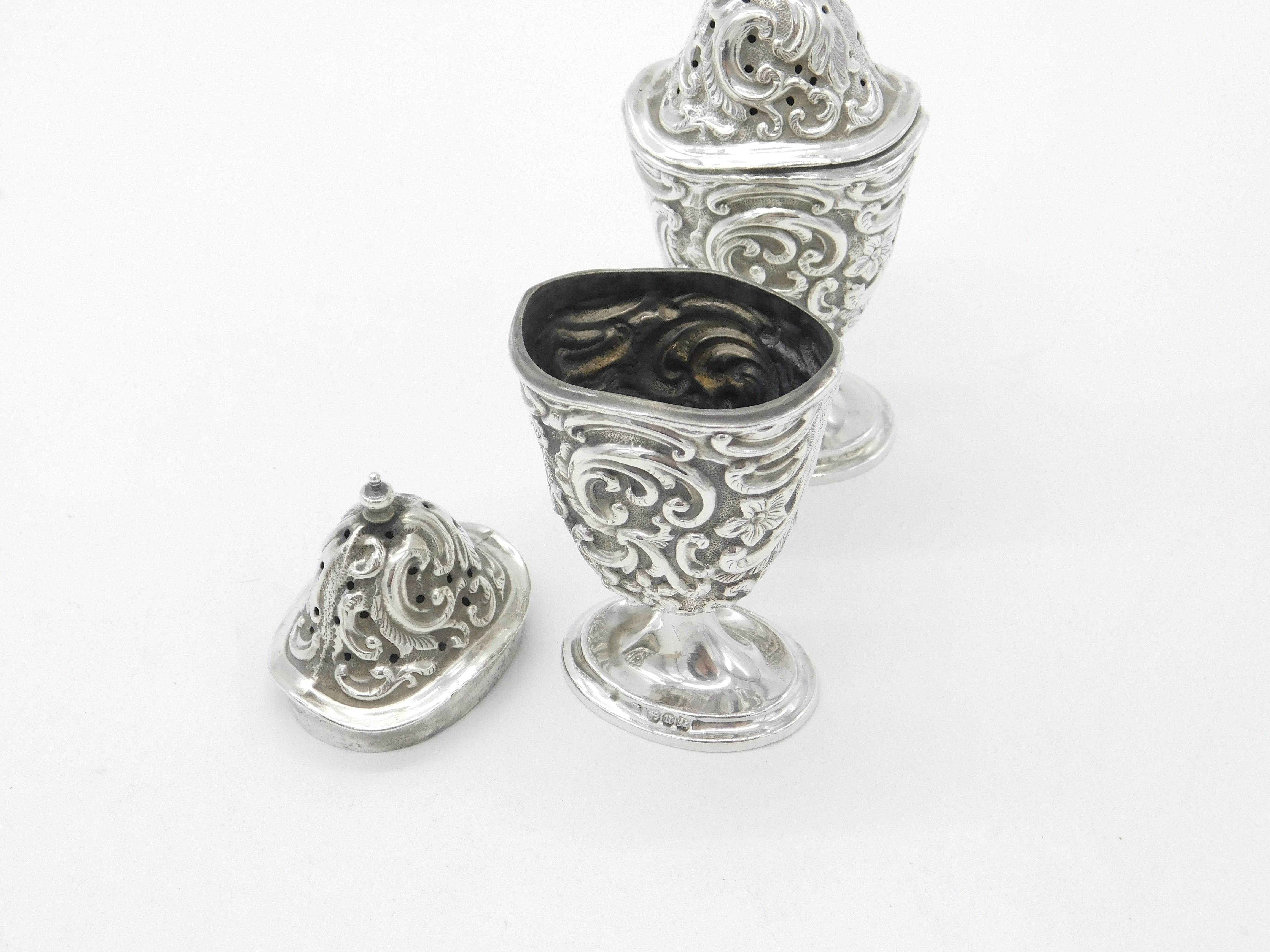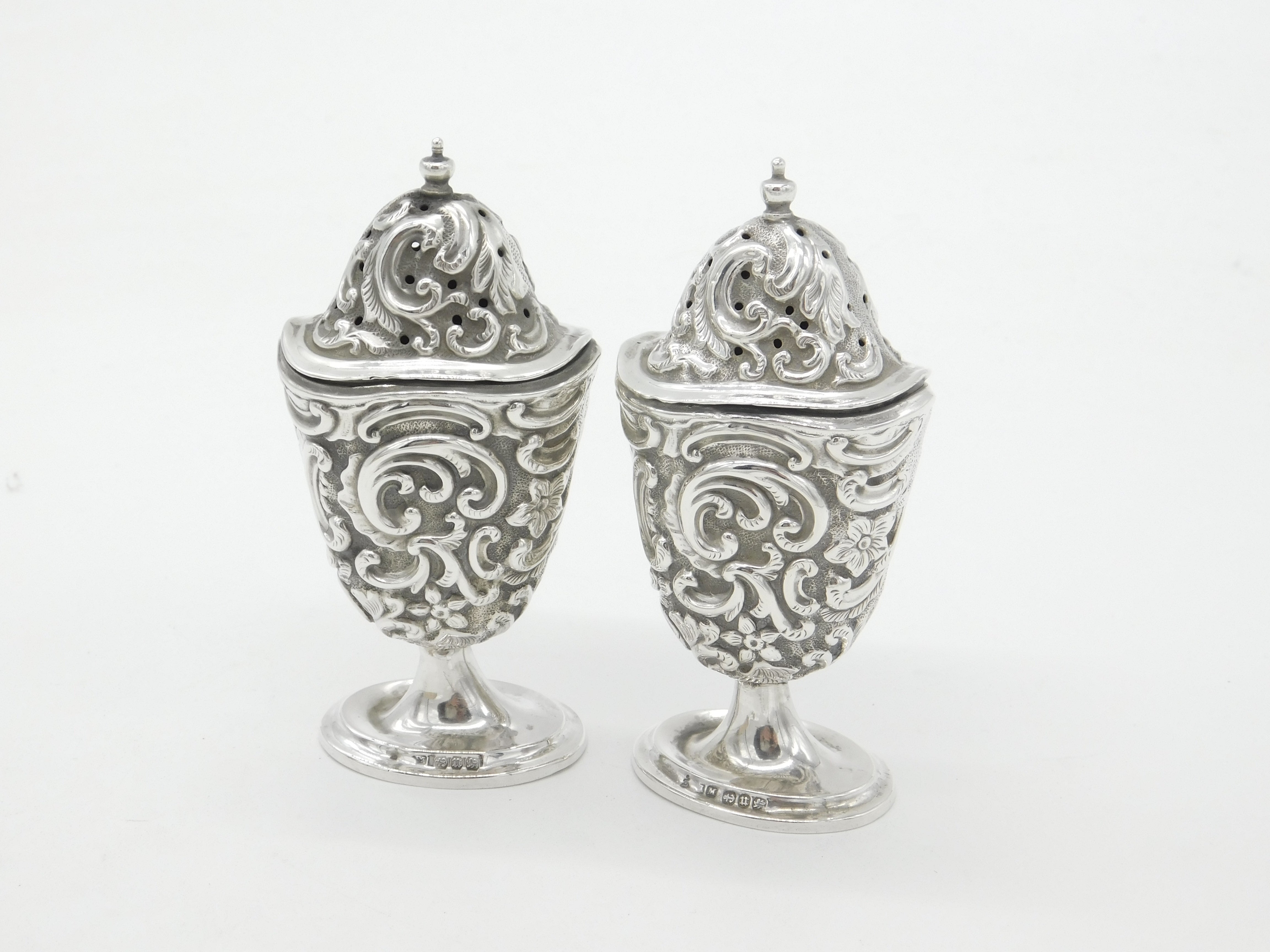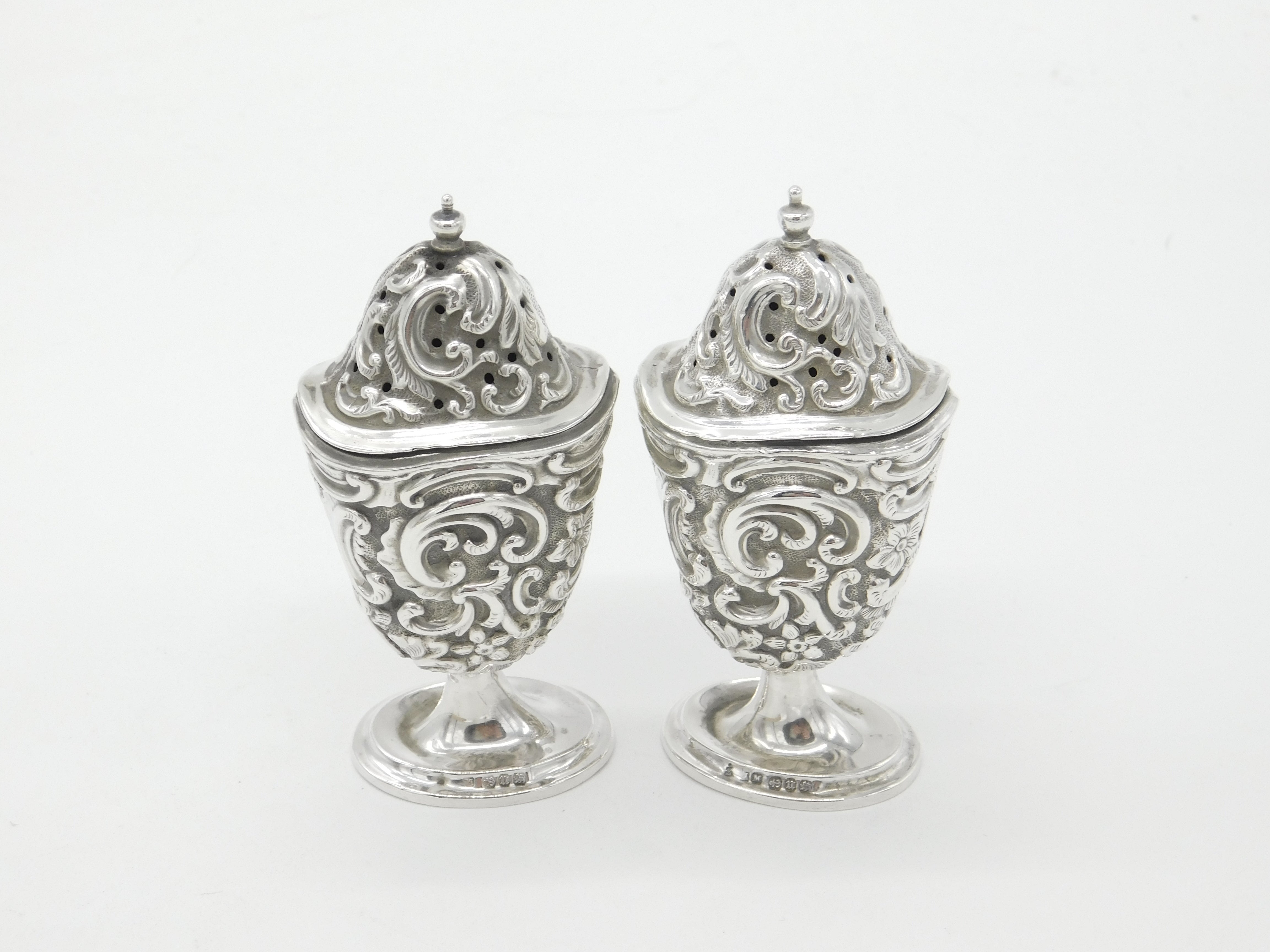 Victorian Pair of Sterling Silver Floral Pattern Salt & Pepper Shakers 1894