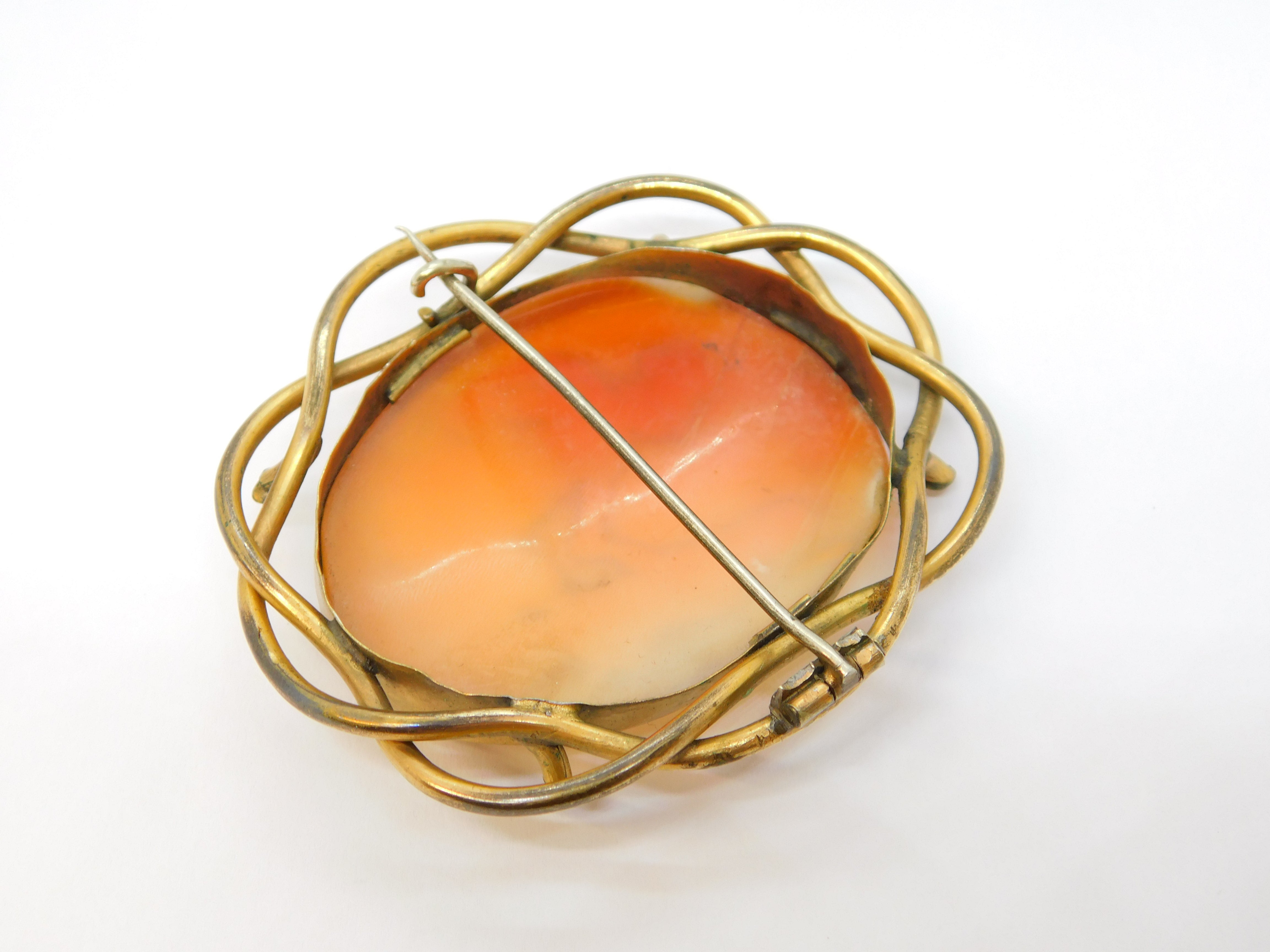 Victorian Pinchbeck Mounted Carved Shell Cameo Ancient Classical Brooch Antique c1880