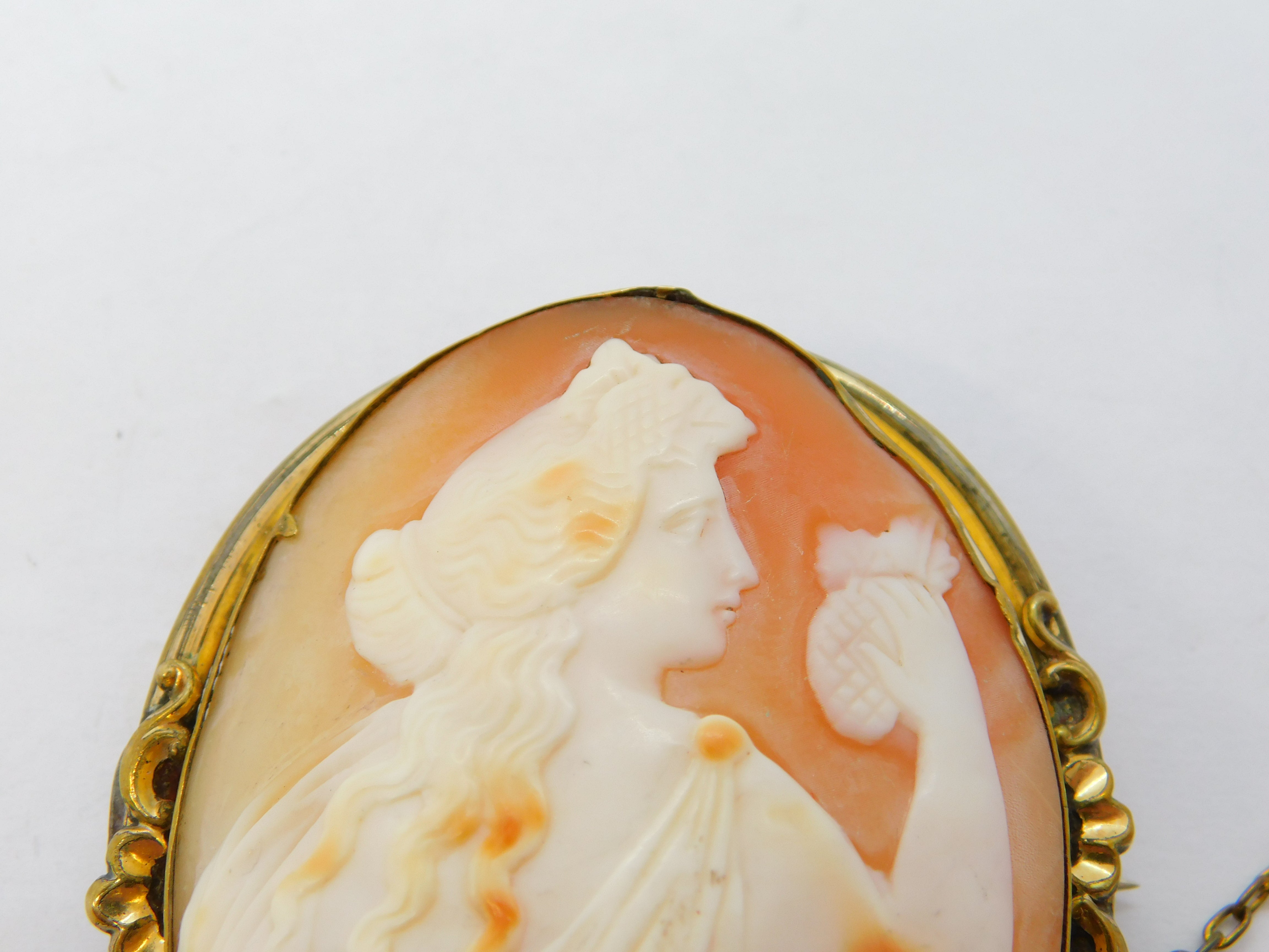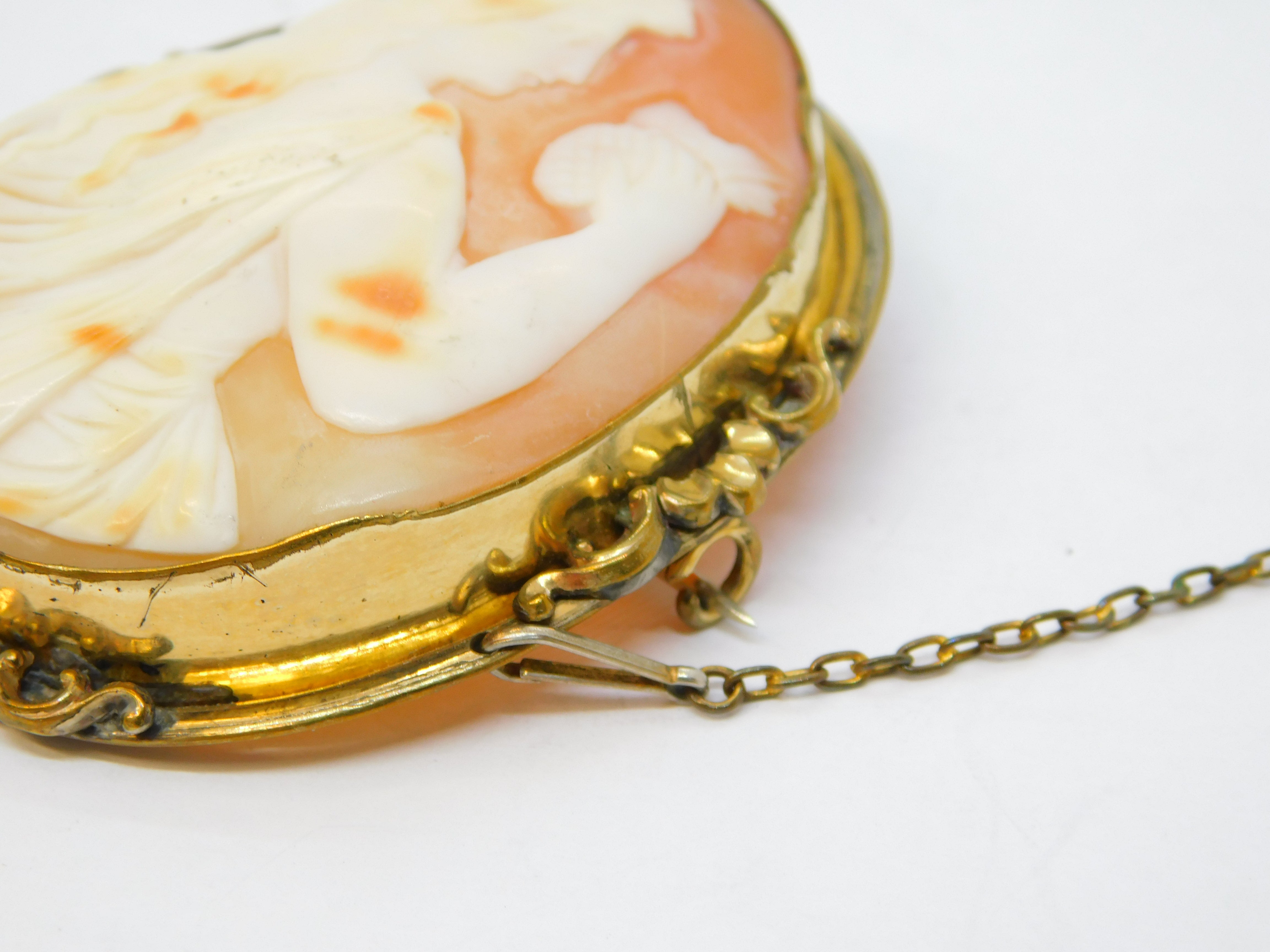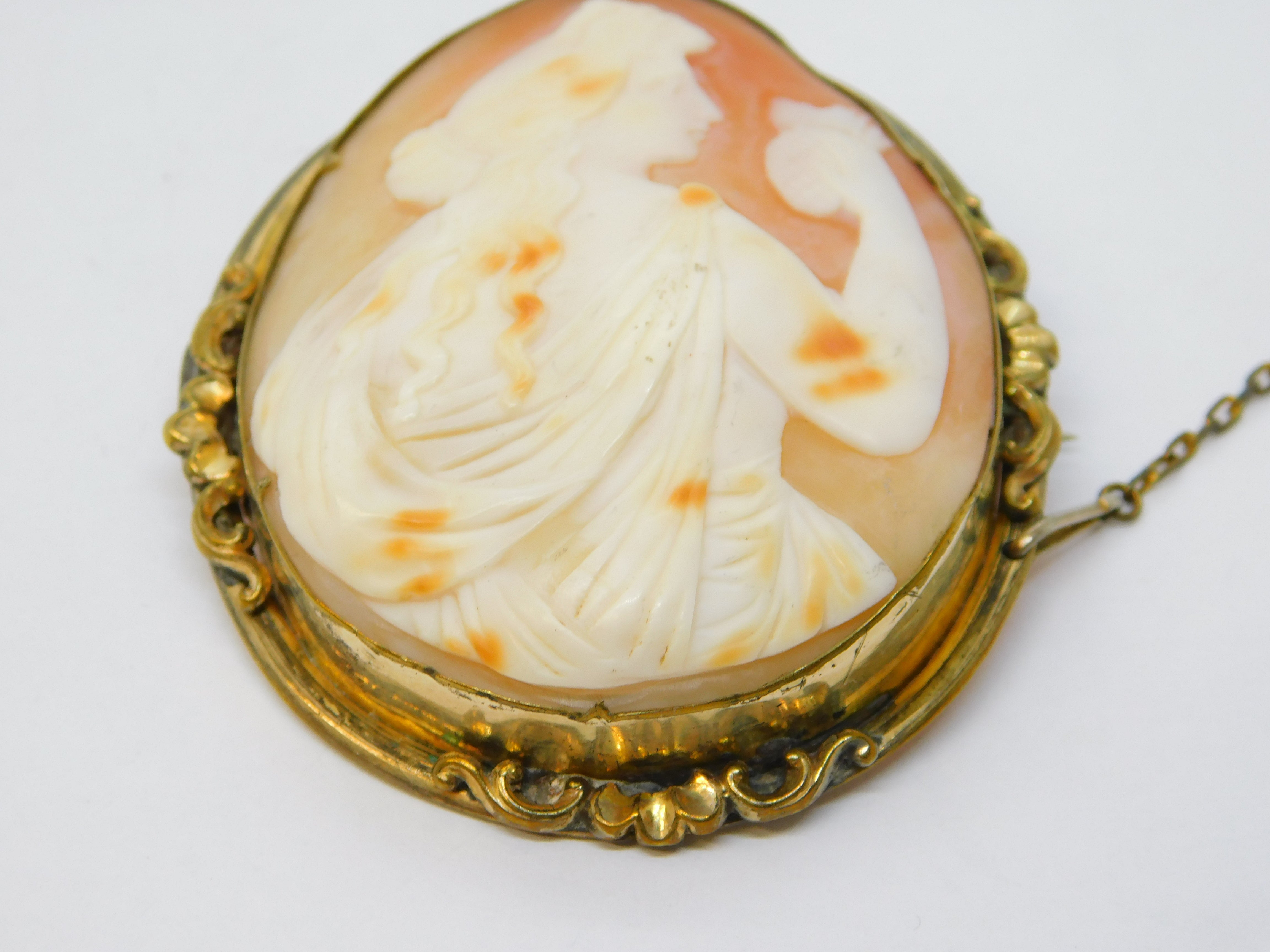 Details: A fantastic and wonderfully designed antique Victorian rolled gold mounted large shell cameo brooch pin depicting the goddess Athena c1860, wonderful cameo in nice order. This is a wonderful item that would make a perfect gift or addition to any collection.