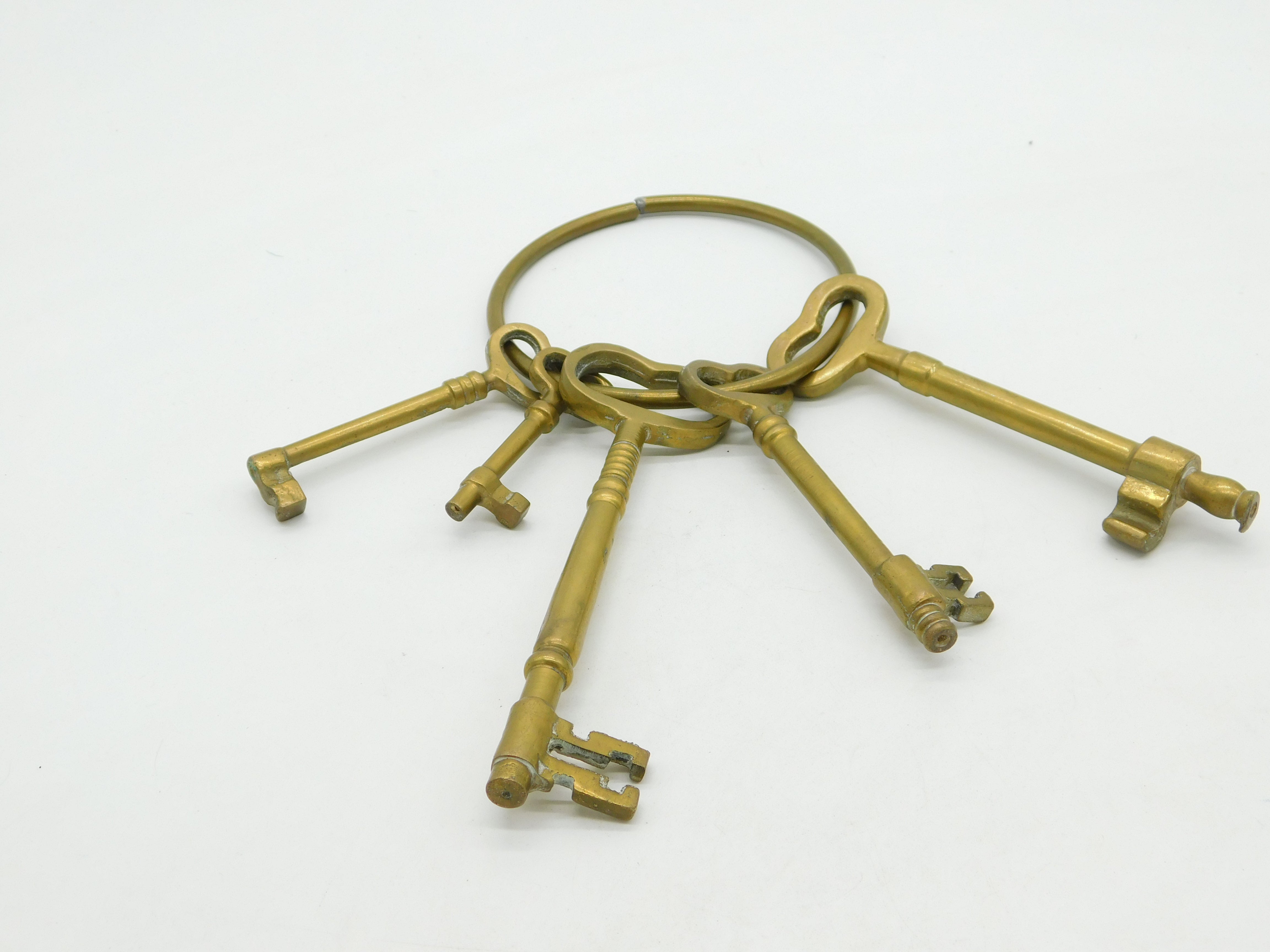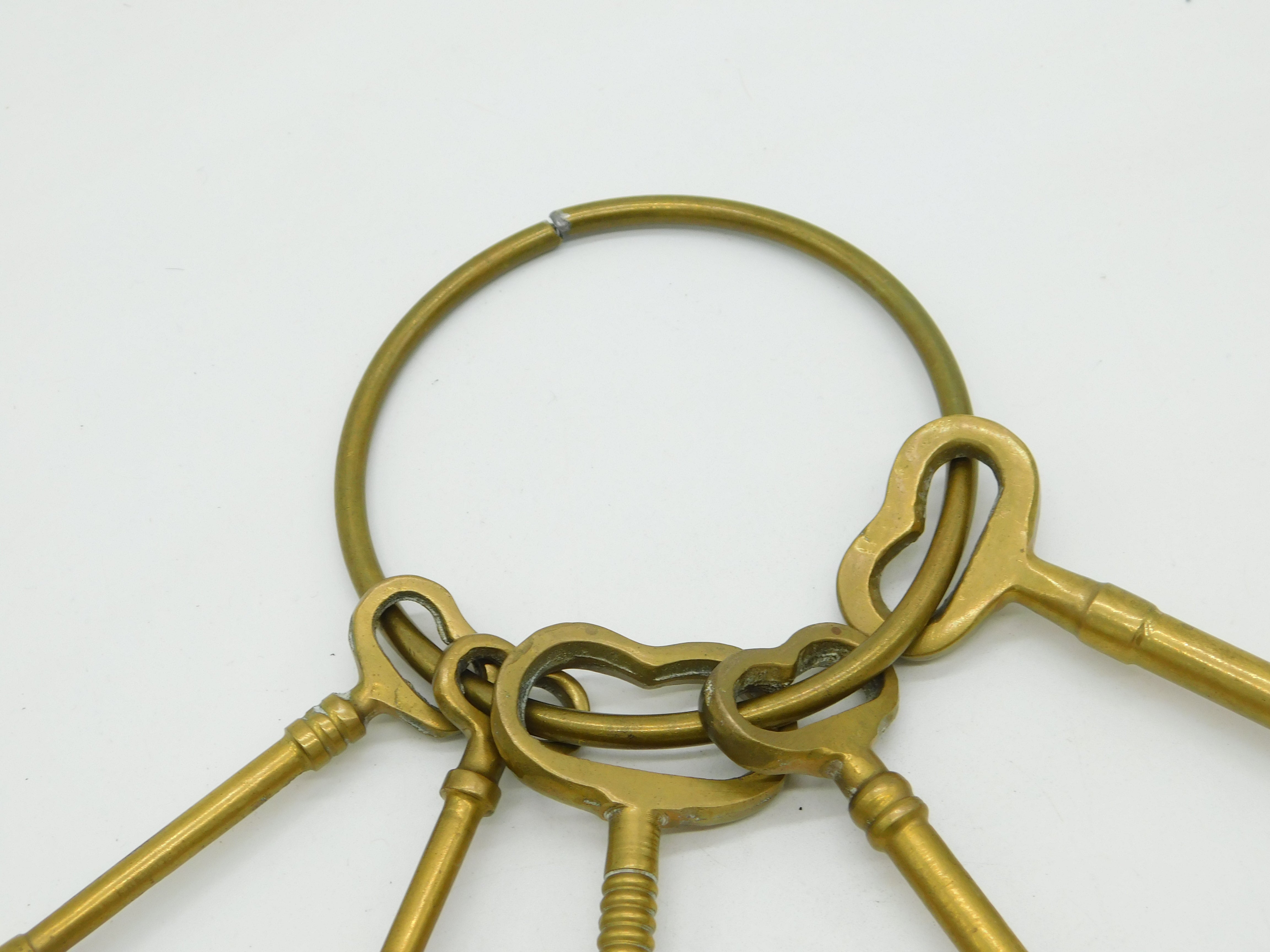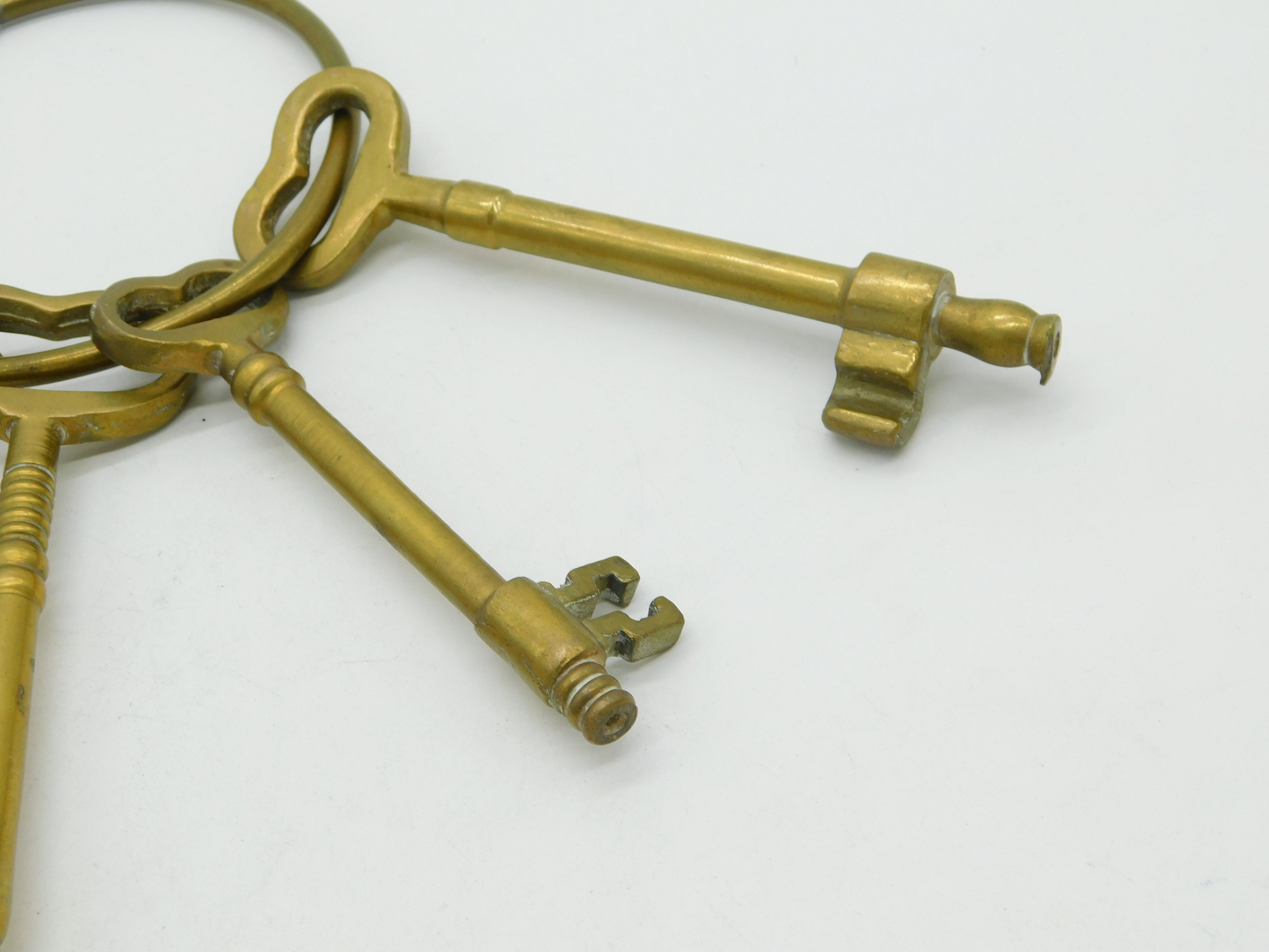 Victorian Set of Large Cast Brass Jailers Keys on Ring Antique c1880