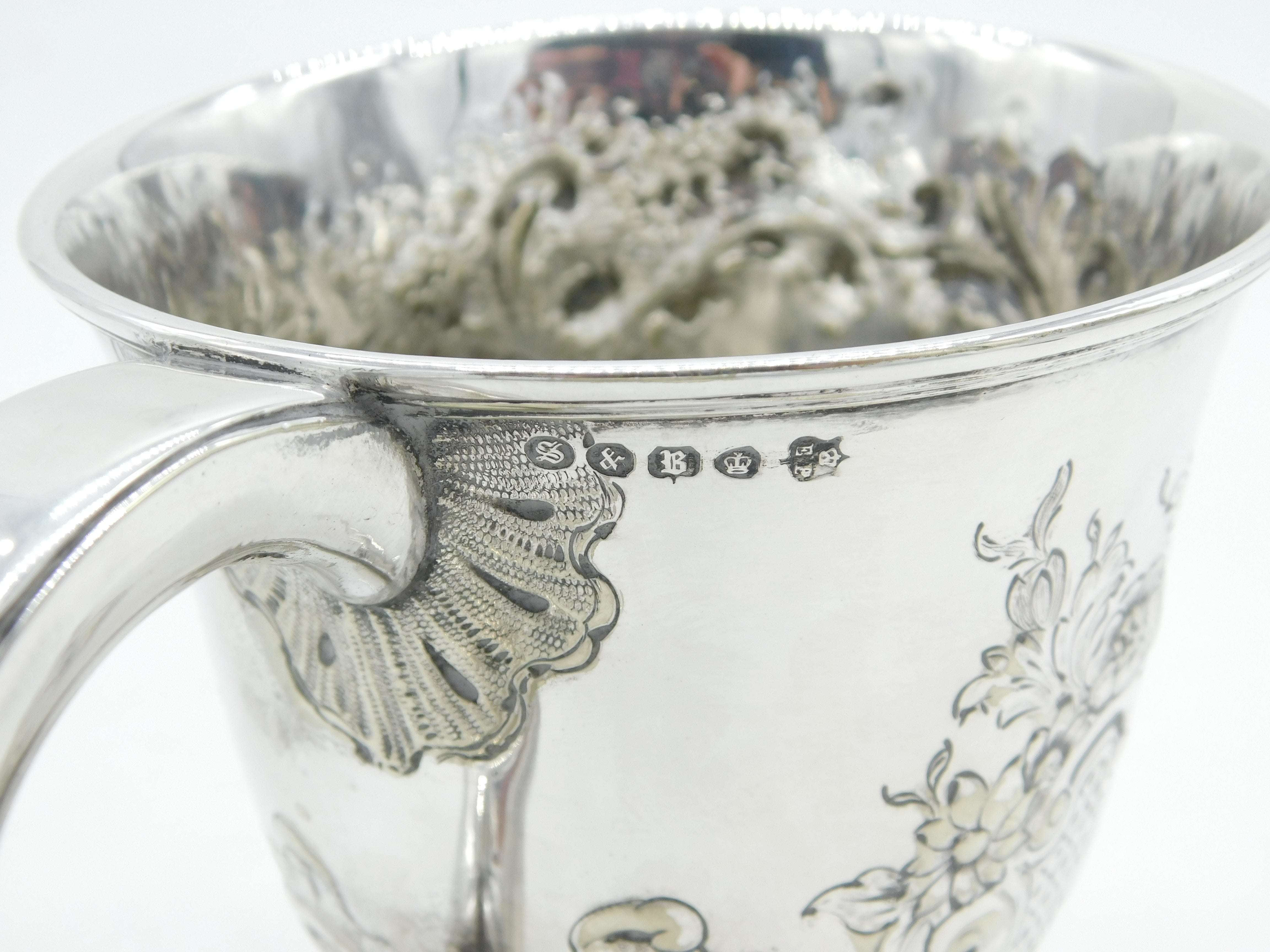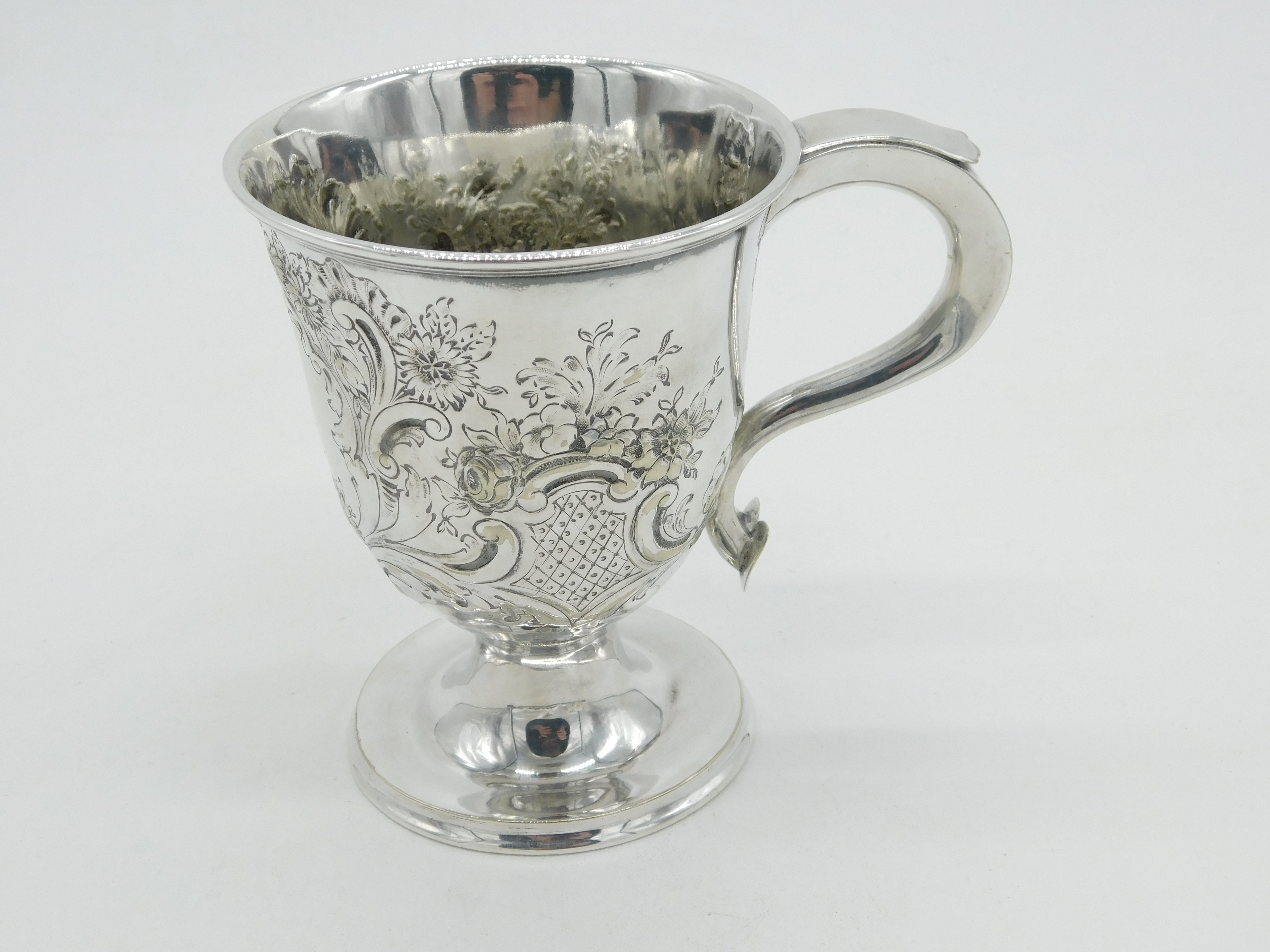 Victorian Silver Plated Art Nouveau Floral Christening Mug c1890 Antique