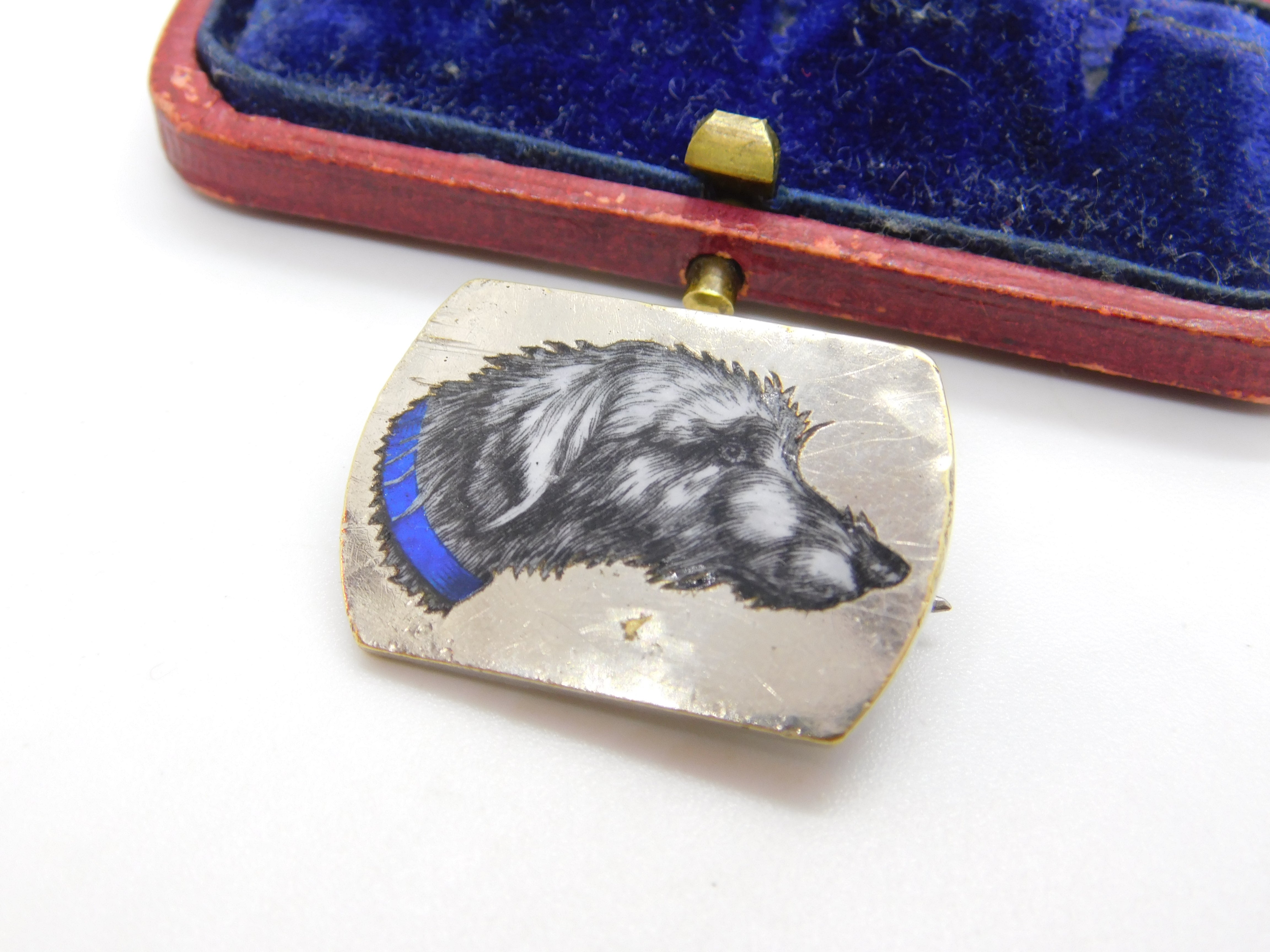 Details: A fantastic and wonderfully designed antique Victorian silver plated brooch with stunning enamel depicting an Irish Wolf Hound Dog c1880 possibly a keepsake with the image of someone's favourite dog. This is a wonderful item that would make a perfect gift or addition to any collection. The BOX pictured is for PRESENTATION ONLY and is NOT included in the listings but used to frame the pictures unless specifically stated otherwise.