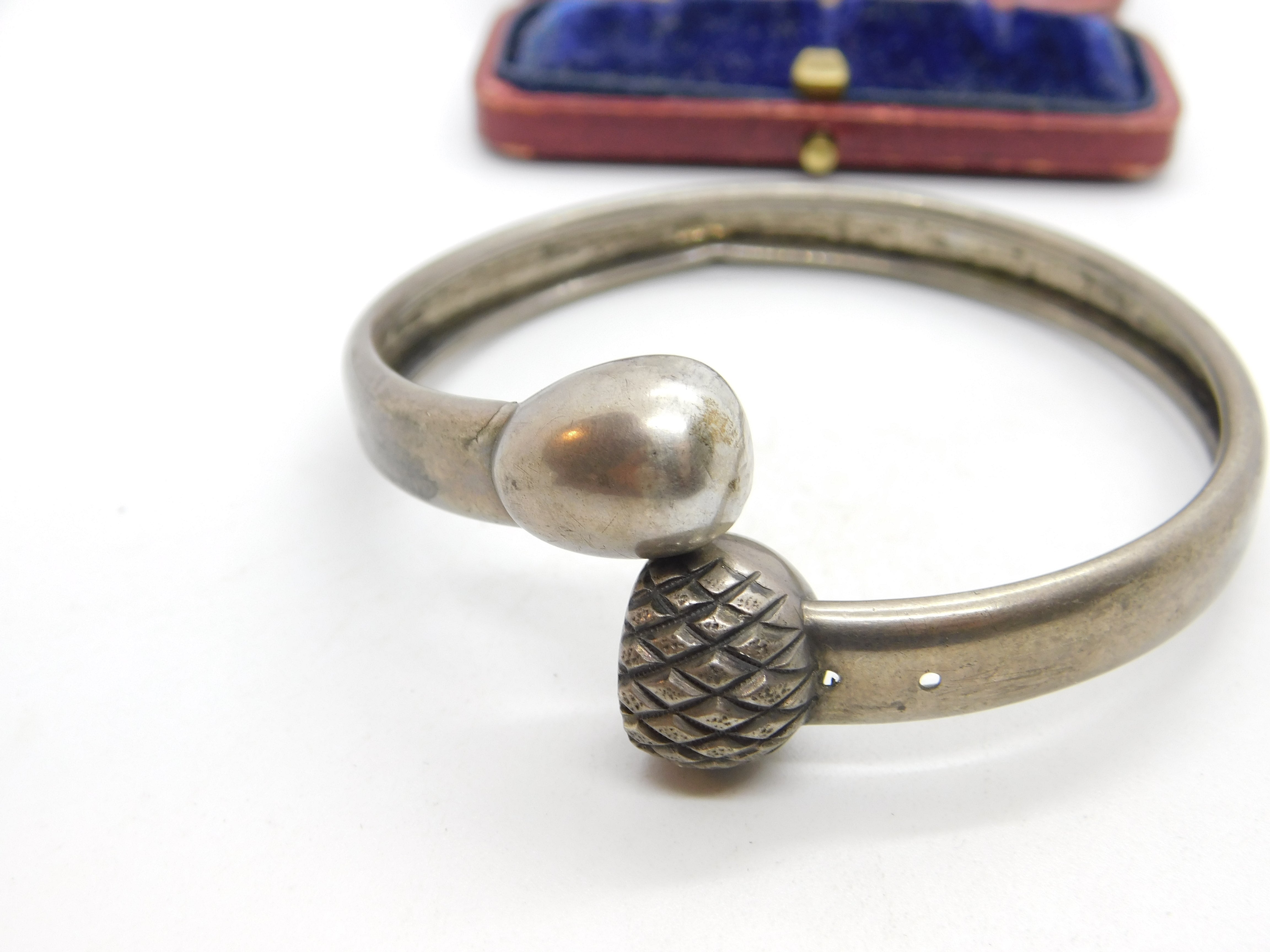 Victorian Sterling Silver Acorn Clasp Sweetheart Bangle Bracelet 1872 Kitemark