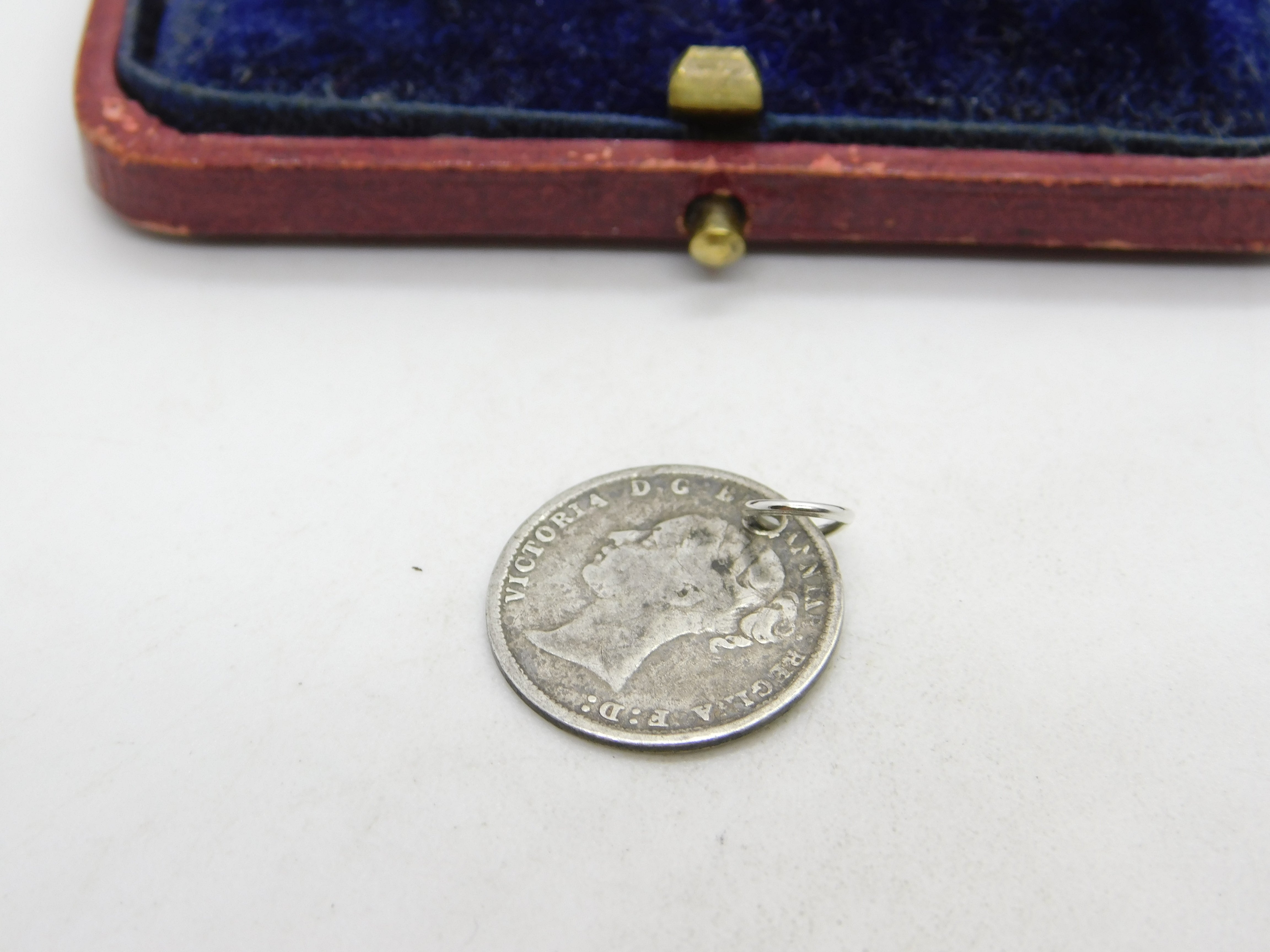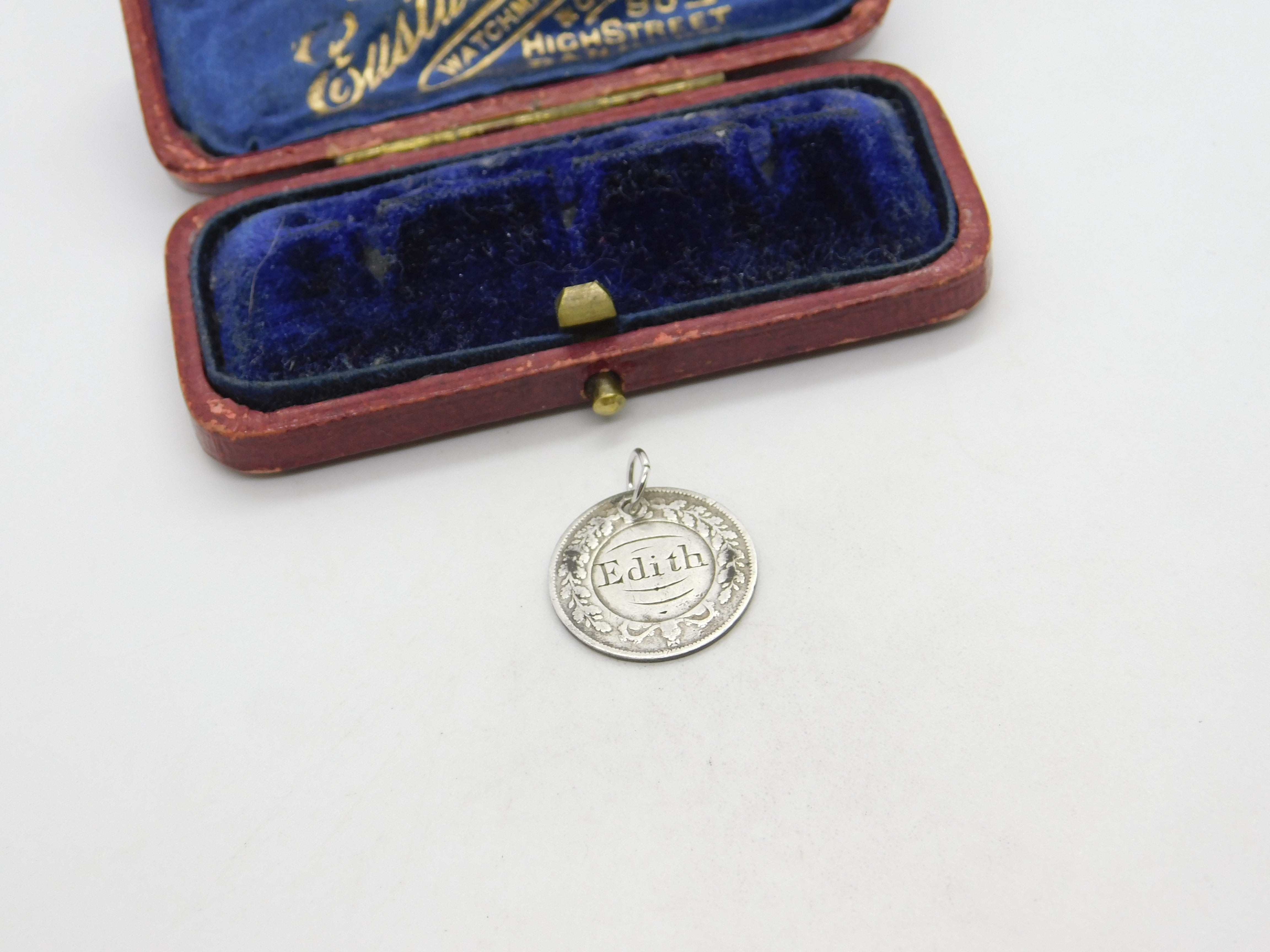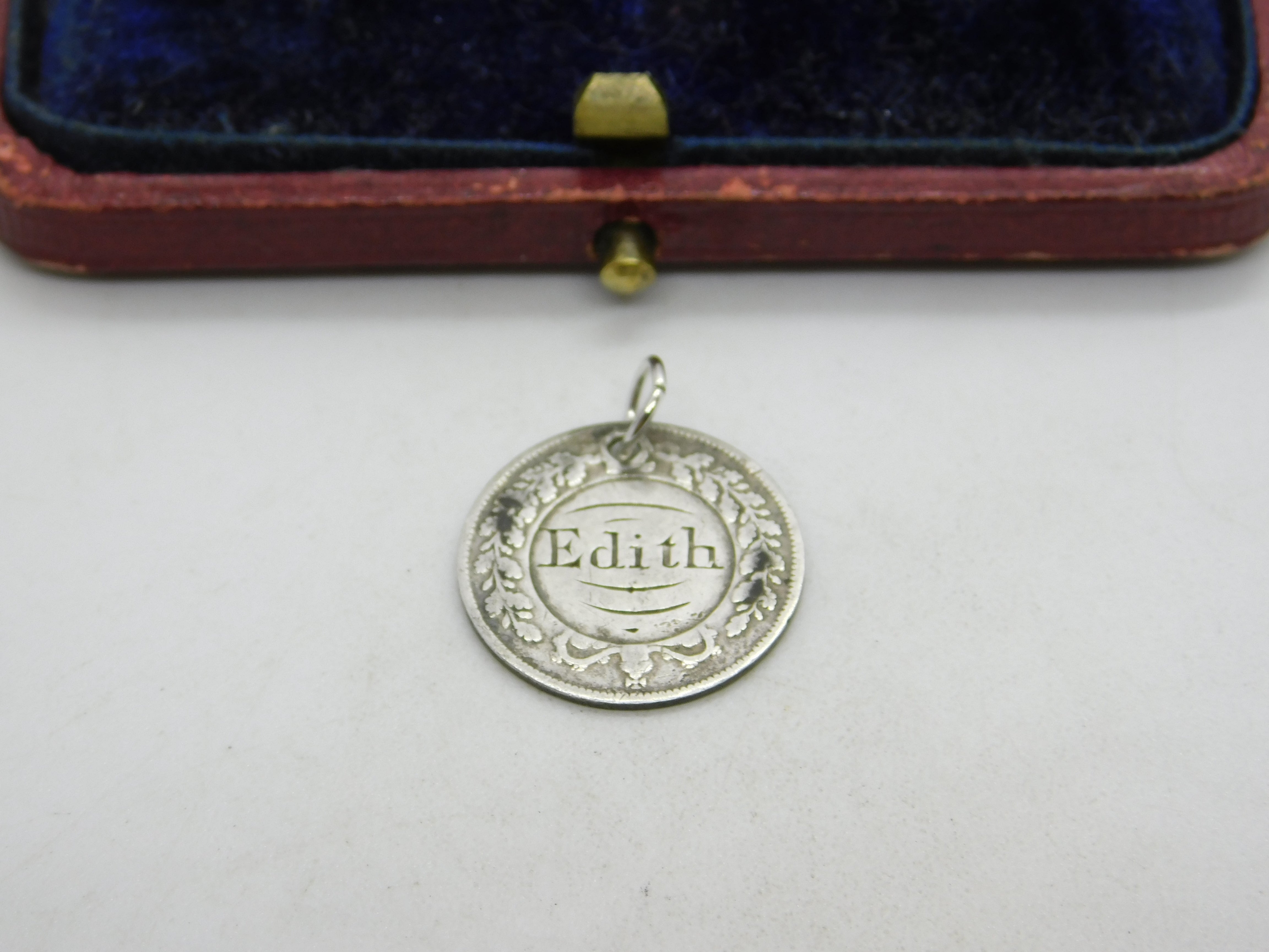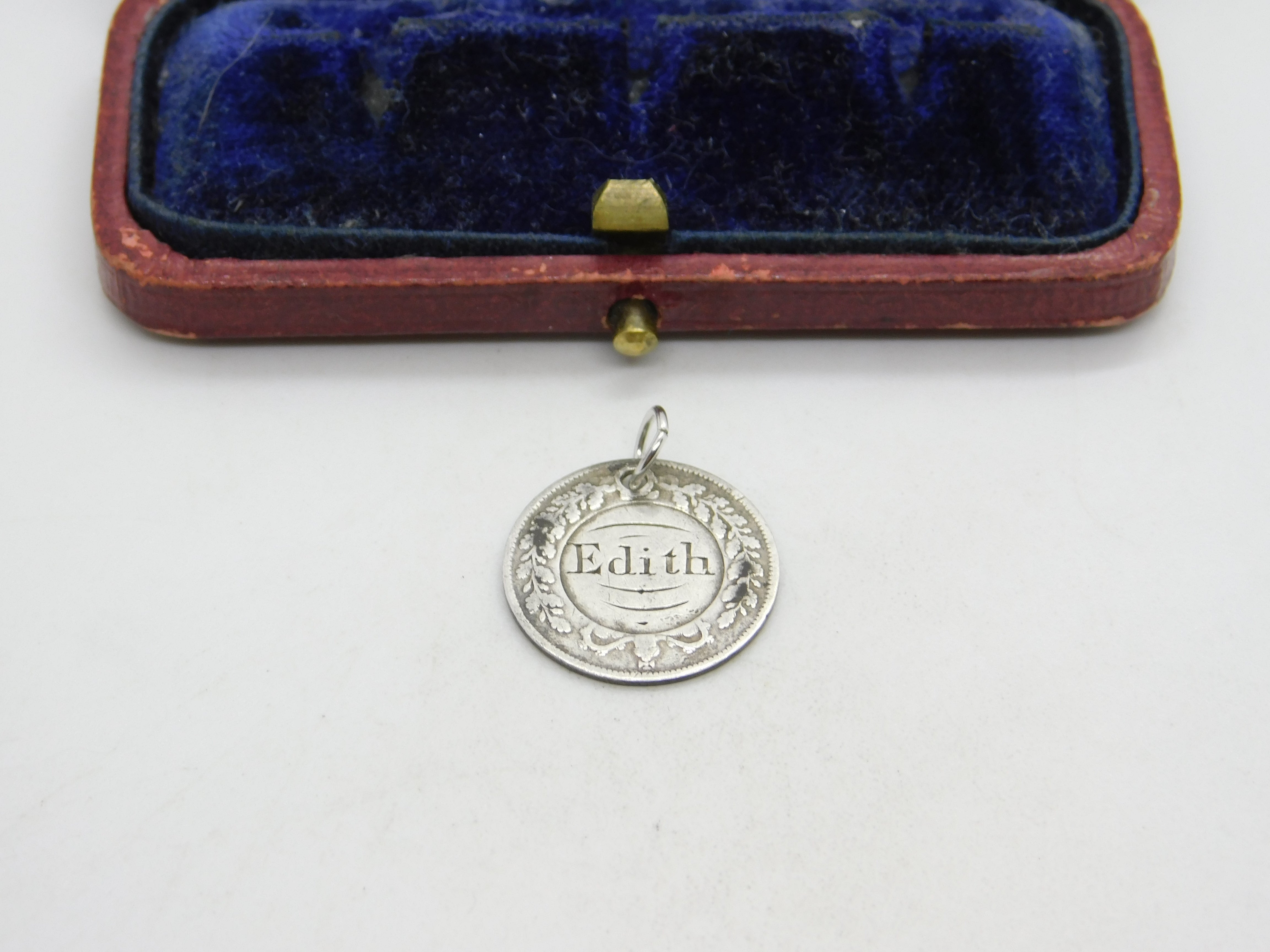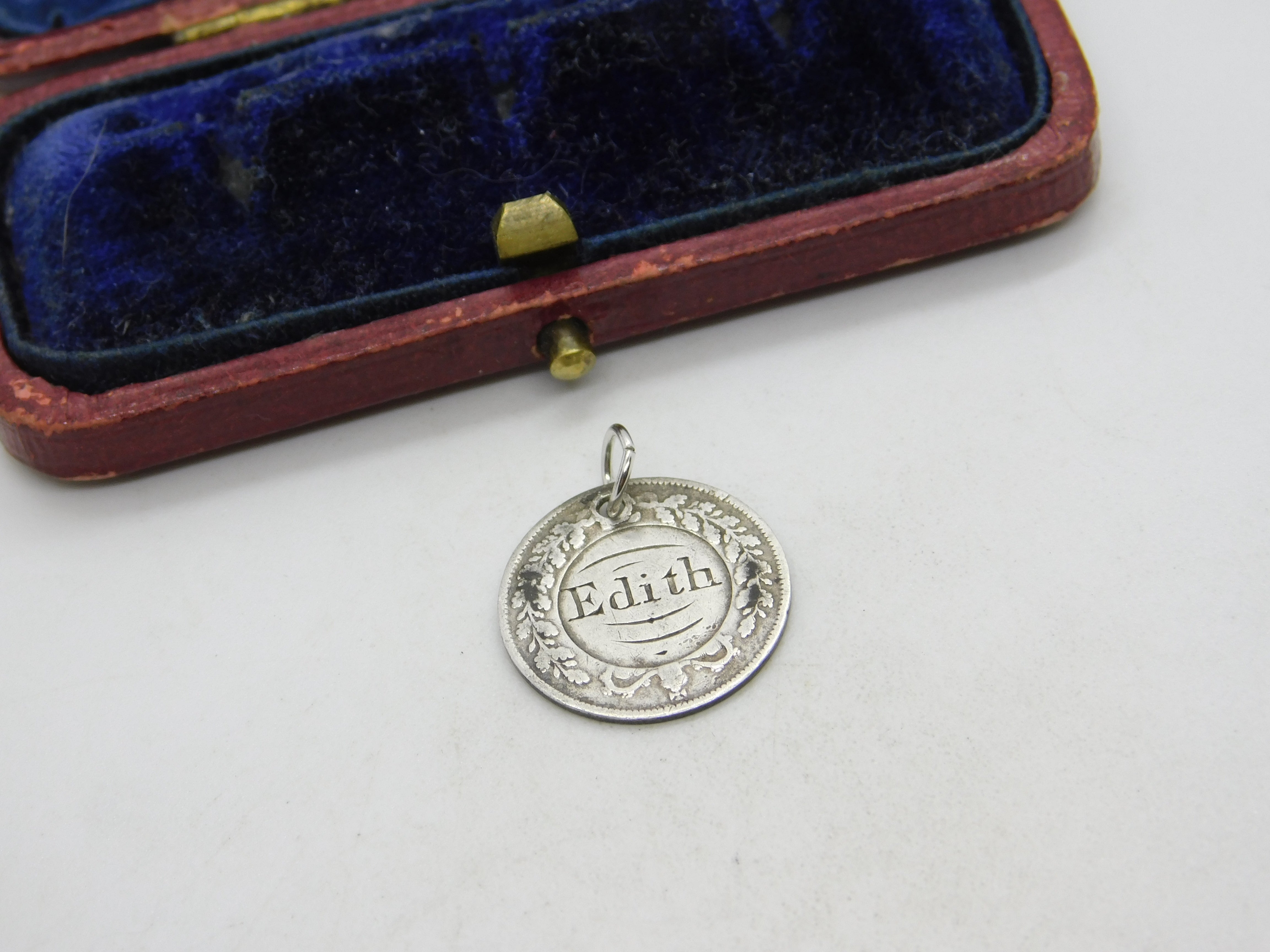 Victorian Sterling Silver 'Edith' Love Token Threepence Coin Charm Pendant c1860