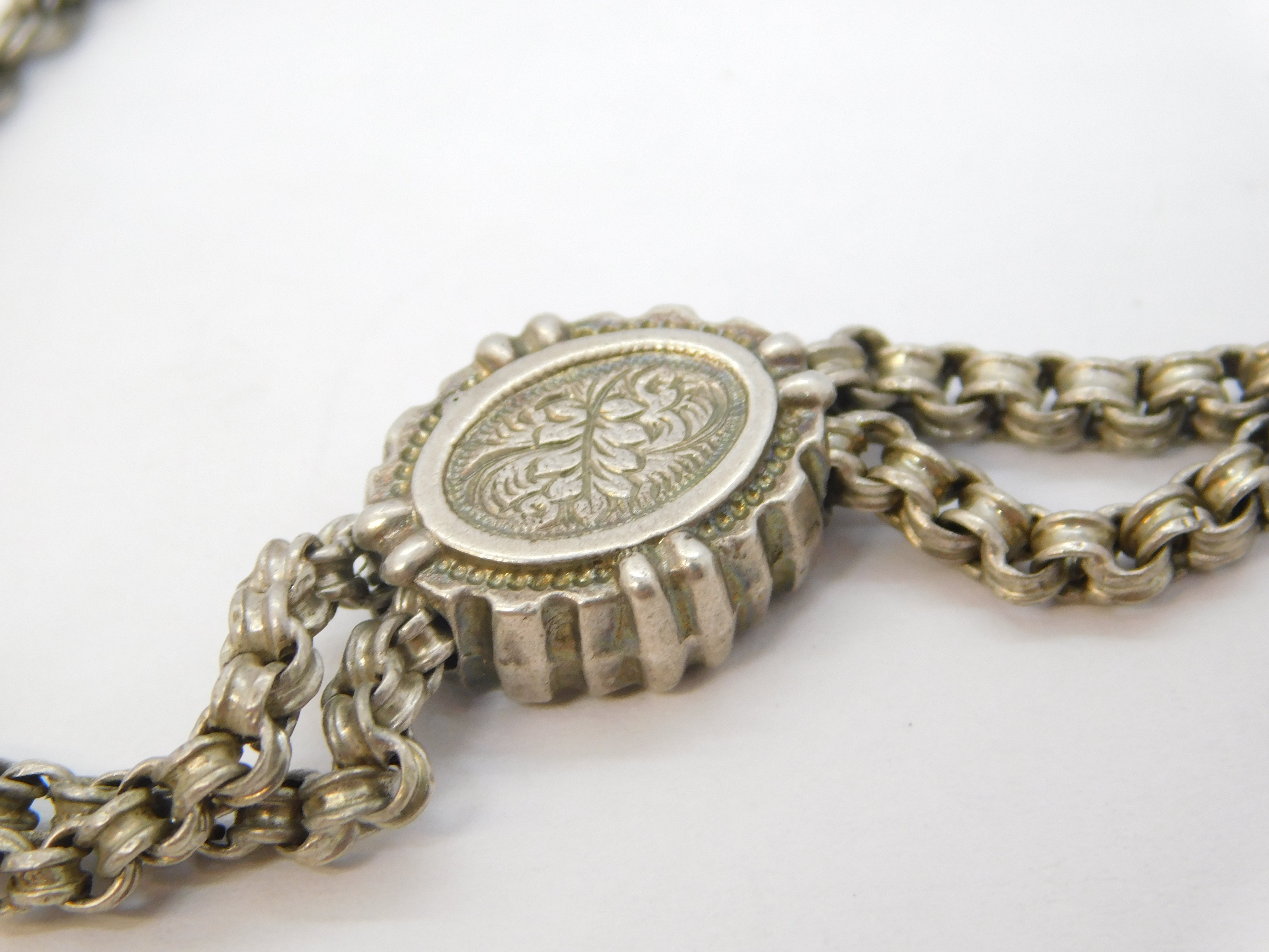 Victorian Sterling Silver & Enamel Albertina Chain Bracelet Antique c1880