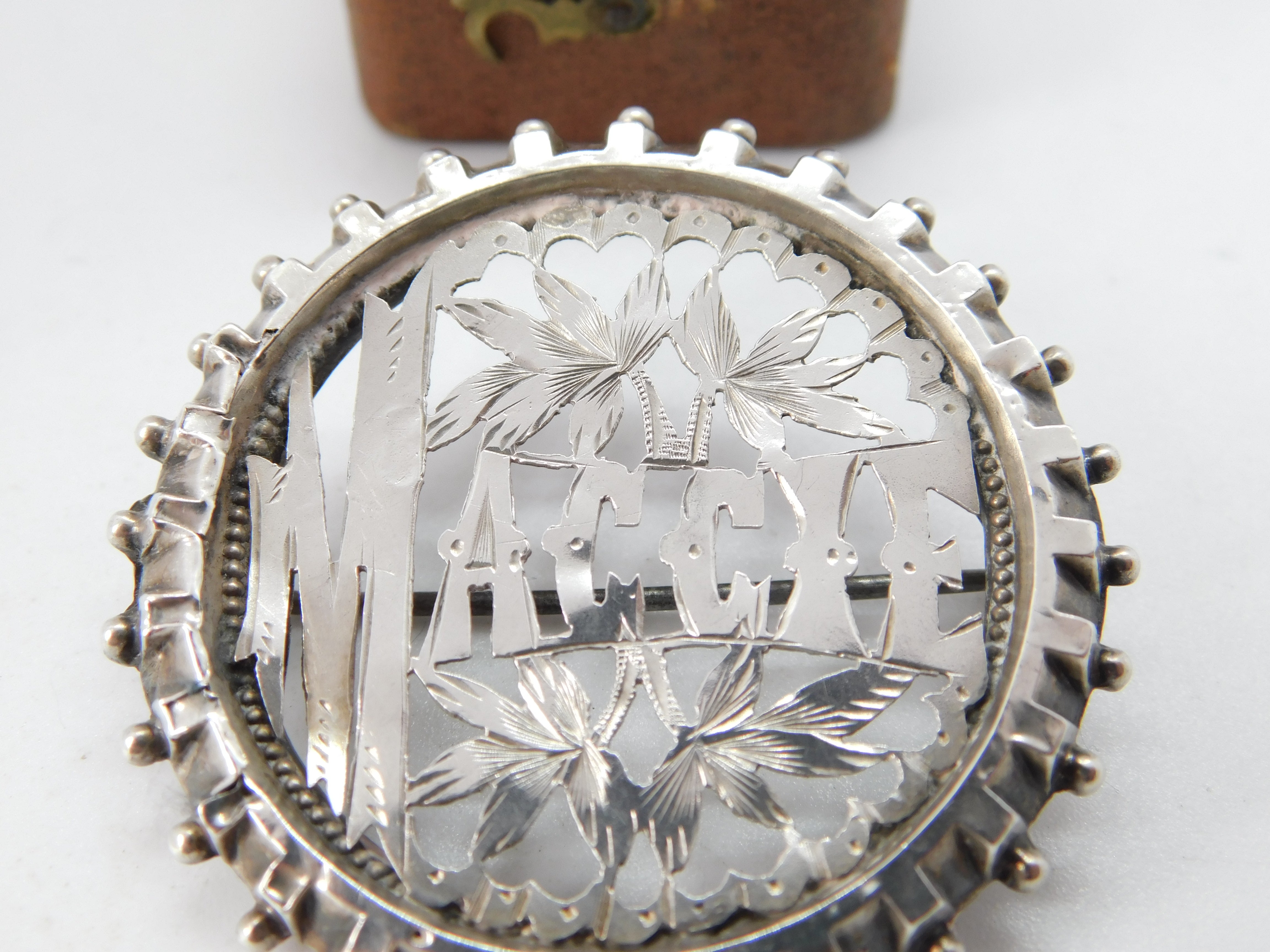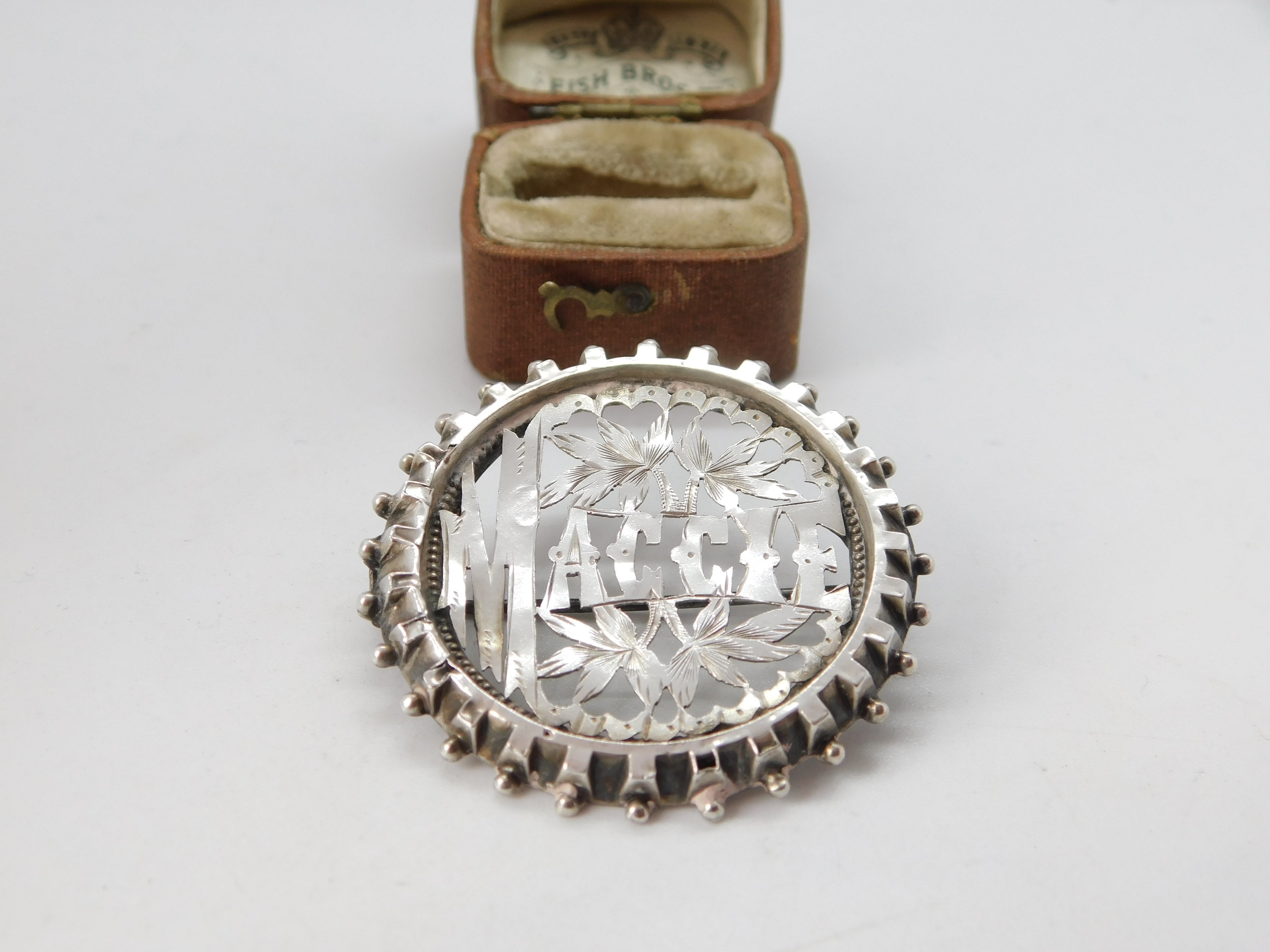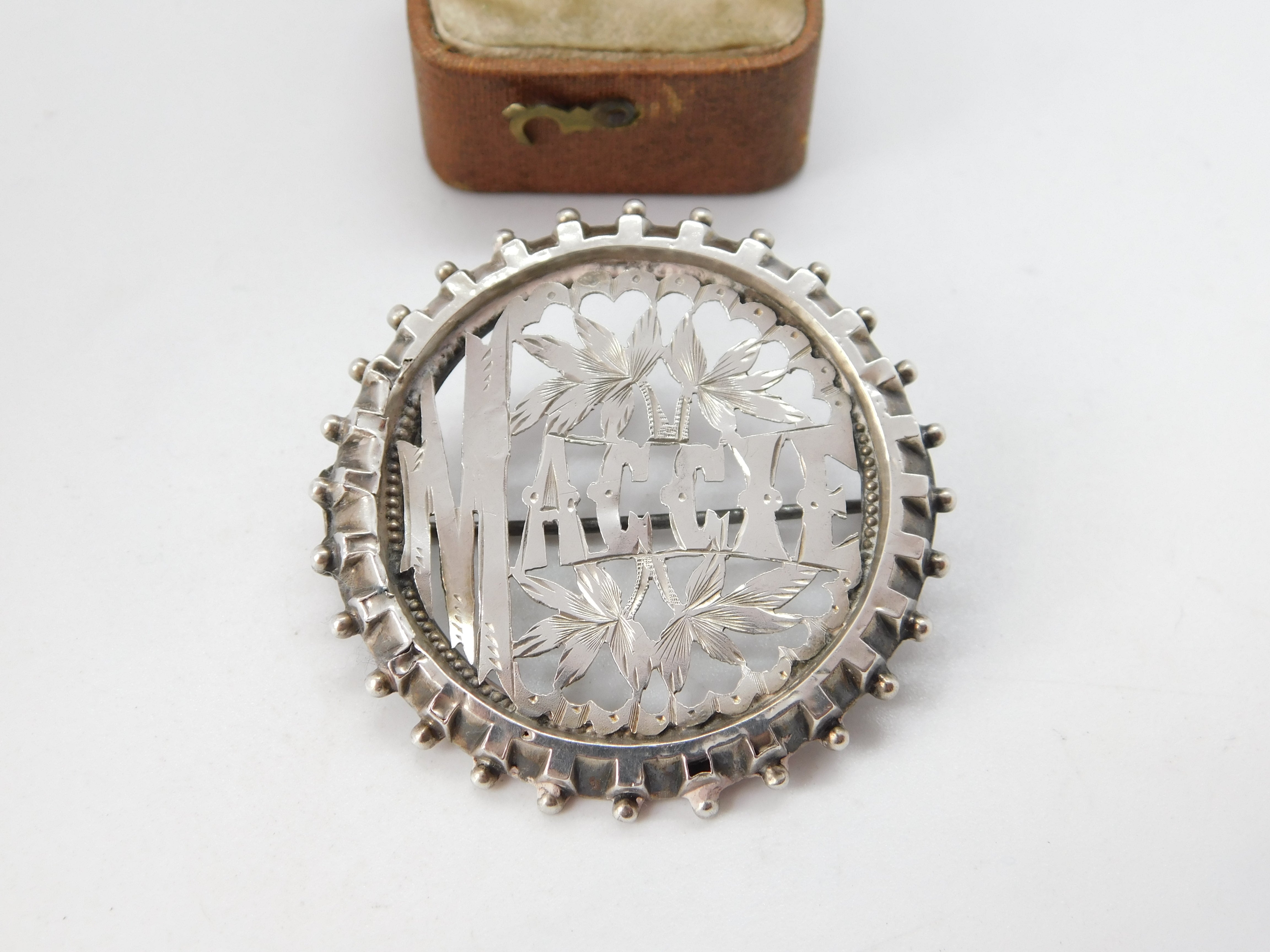 Victorian Sterling Silver 'Maggie' Name Brooch 1883 Birmingham Antique