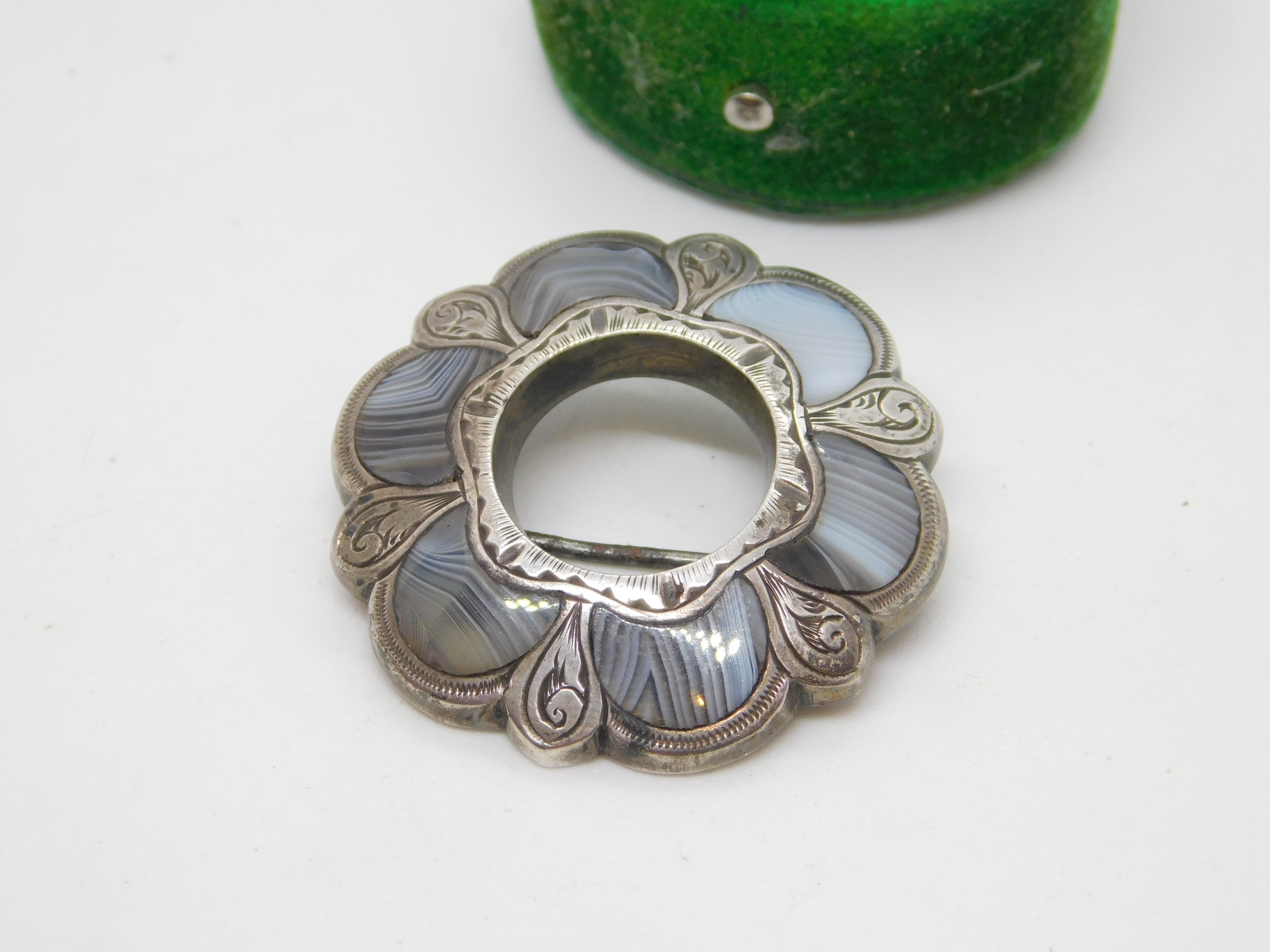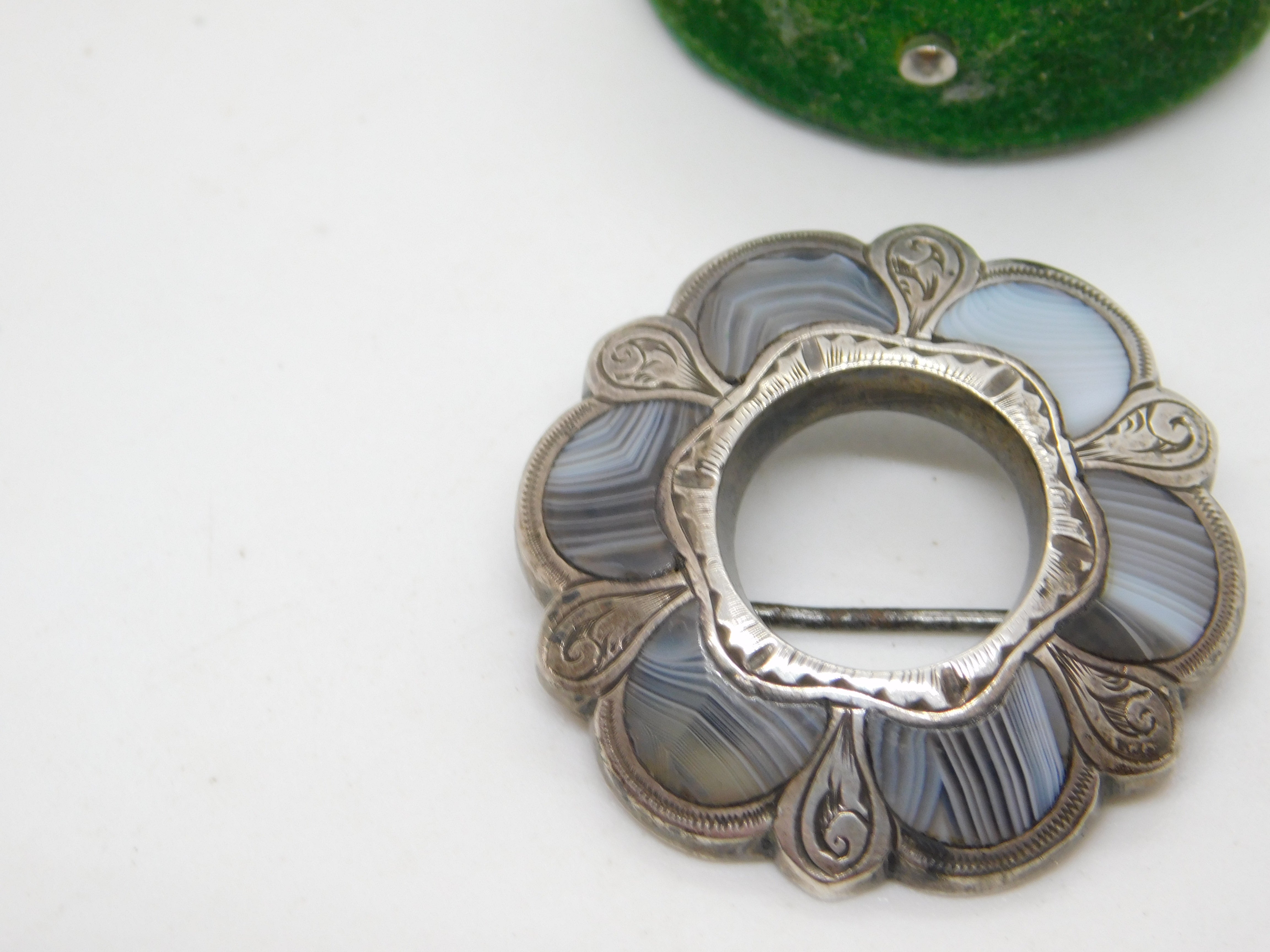 Victorian Sterling Silver Montrose Agate Floral Kilt Brooch Antique c1860