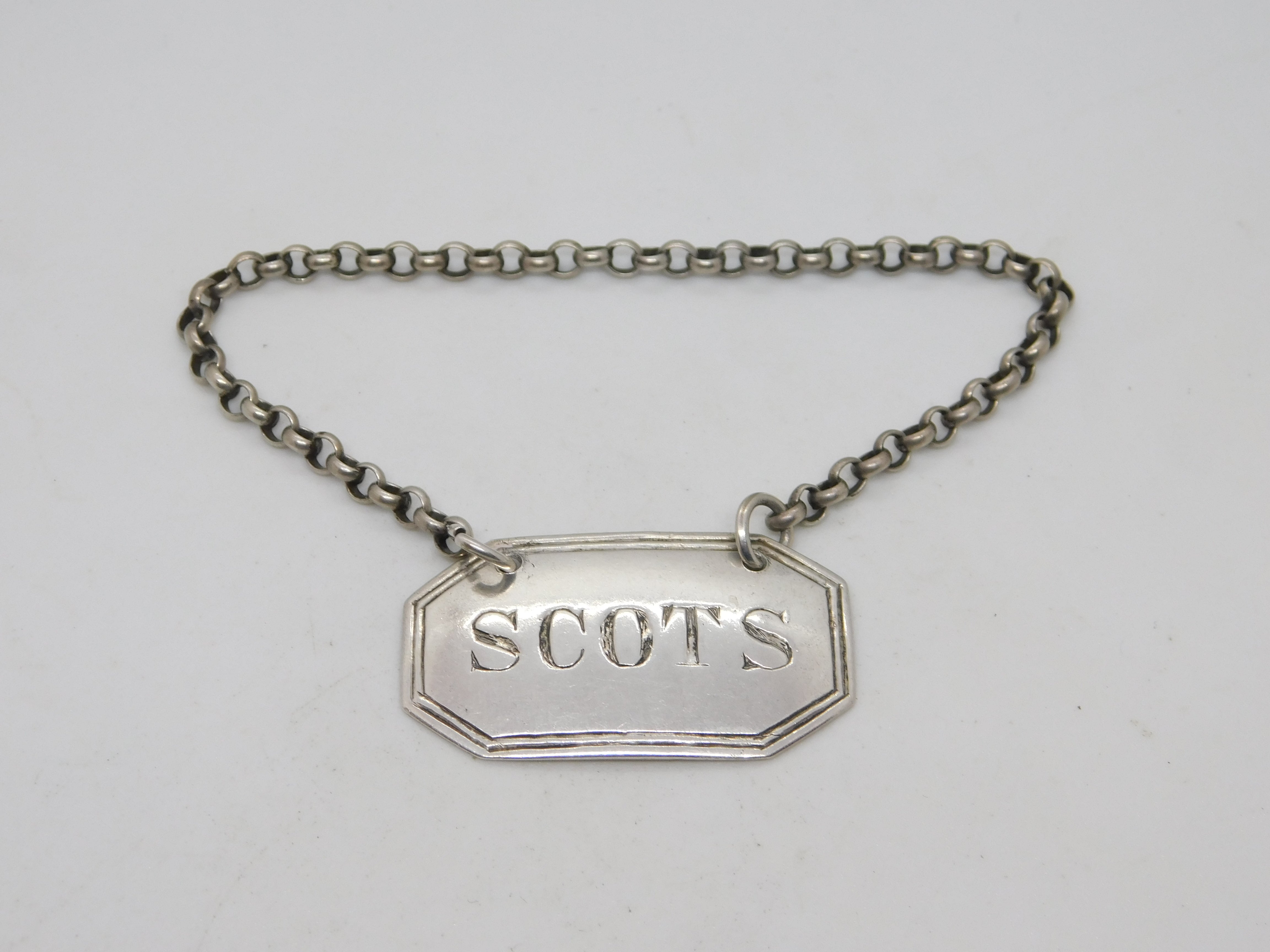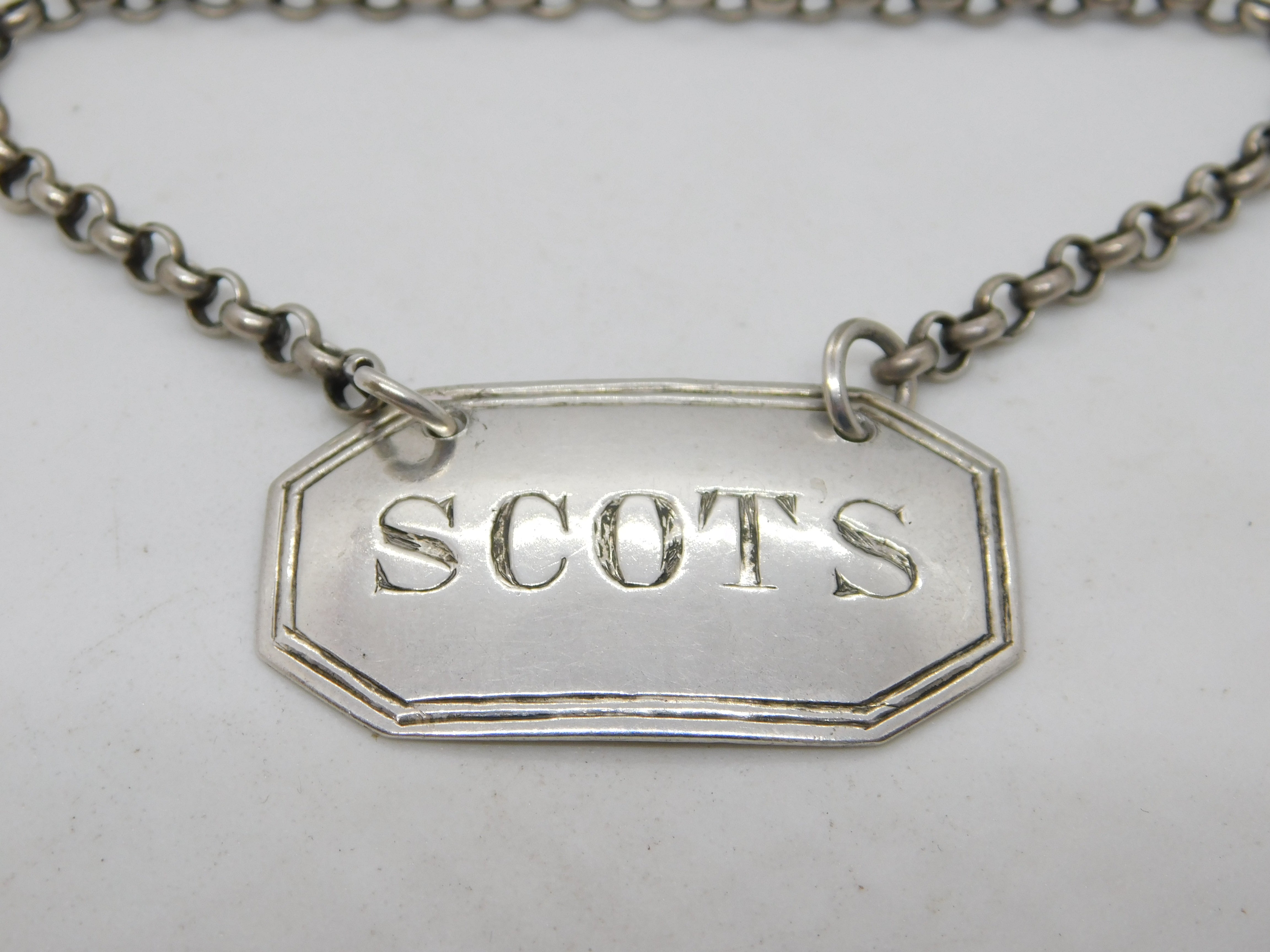 Victorian Sterling Silver 'Scots' Scotch Whisky Decanter Label Antique 1898 London