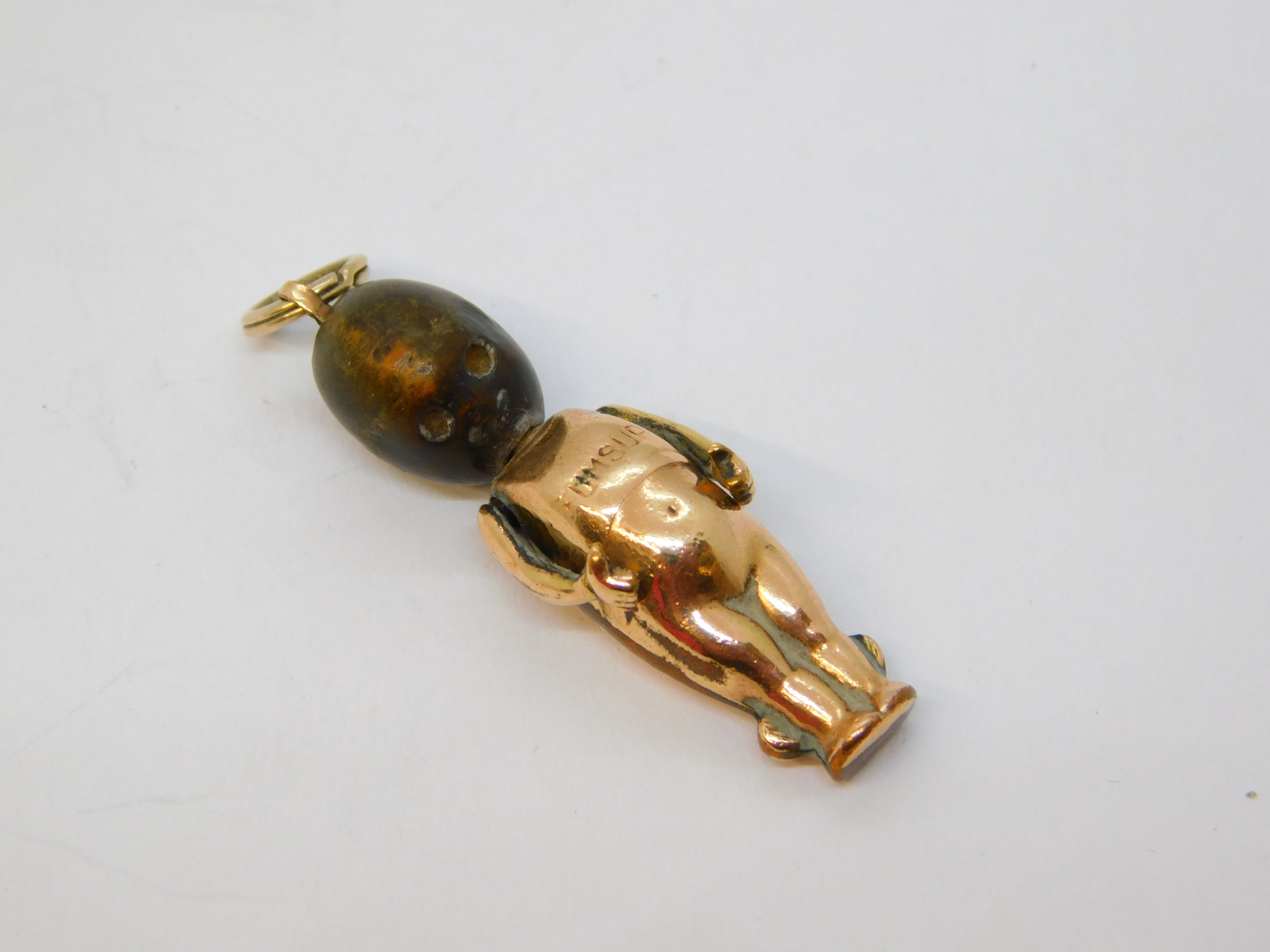WW1-era 9ct Gold Cased, Wood 'Touch Wud, Fumsup' Charm Pendant Antique c1914