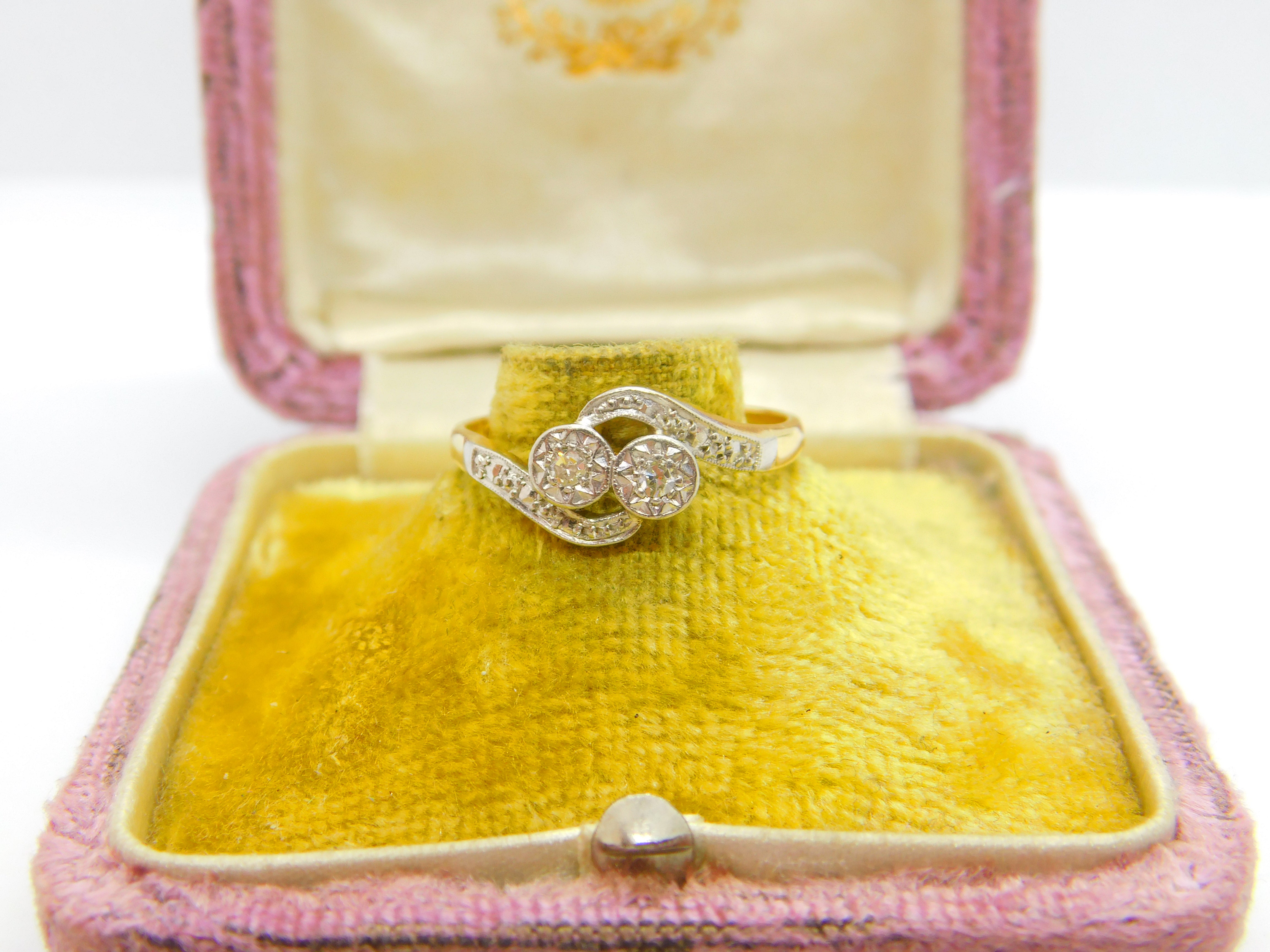 18ct Yellow Gold & 0.2ct Diamond Platinum Set Crossover Ring c1930 Art Deco