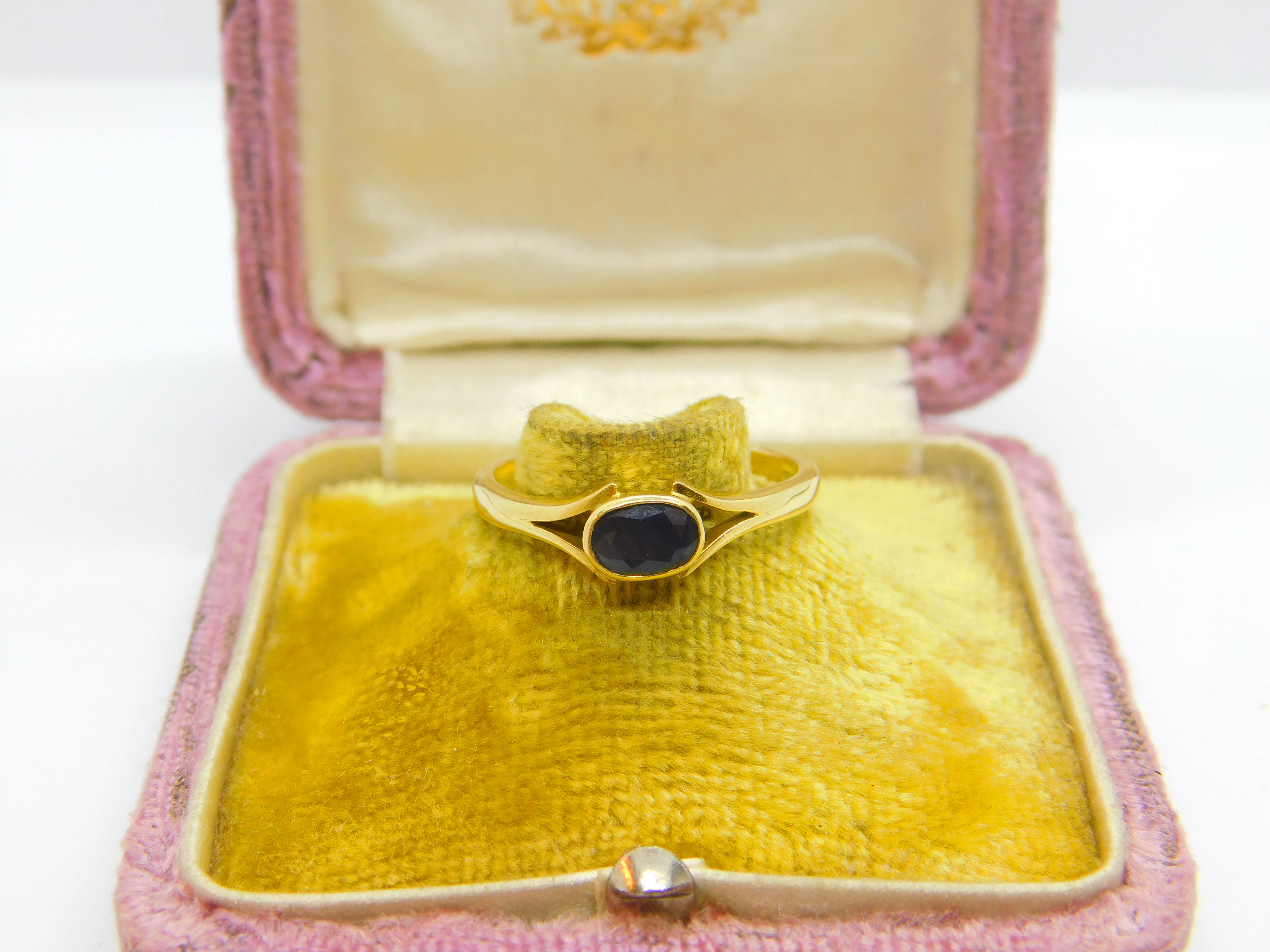 18ct Yellow Gold & Blue Sapphire Set Band Ring 1995 Birmingham Vintage