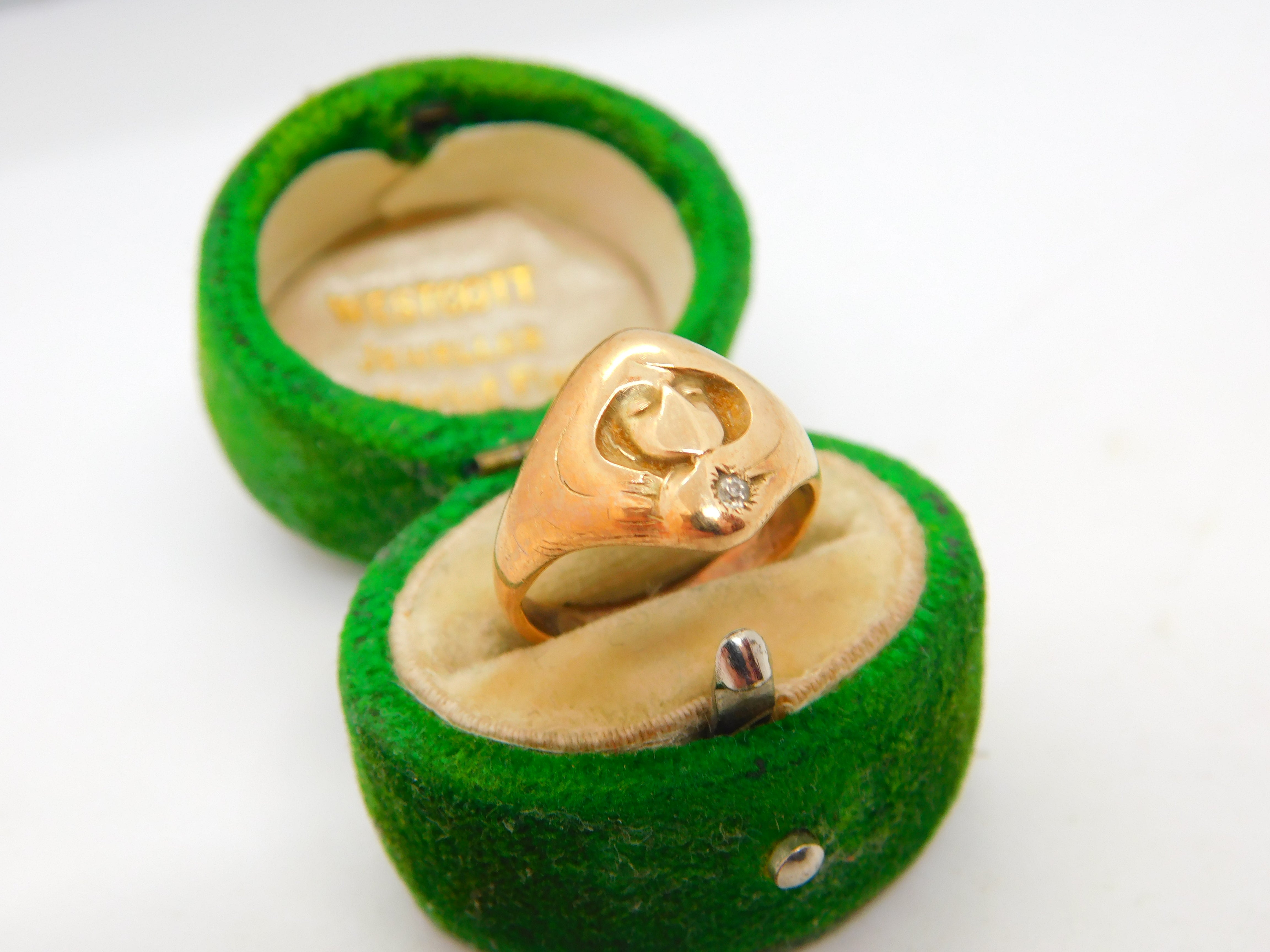 18ct Yellow Gold & Diamond Art Nouveau Lady Signet Ring Antique c1930 Deco