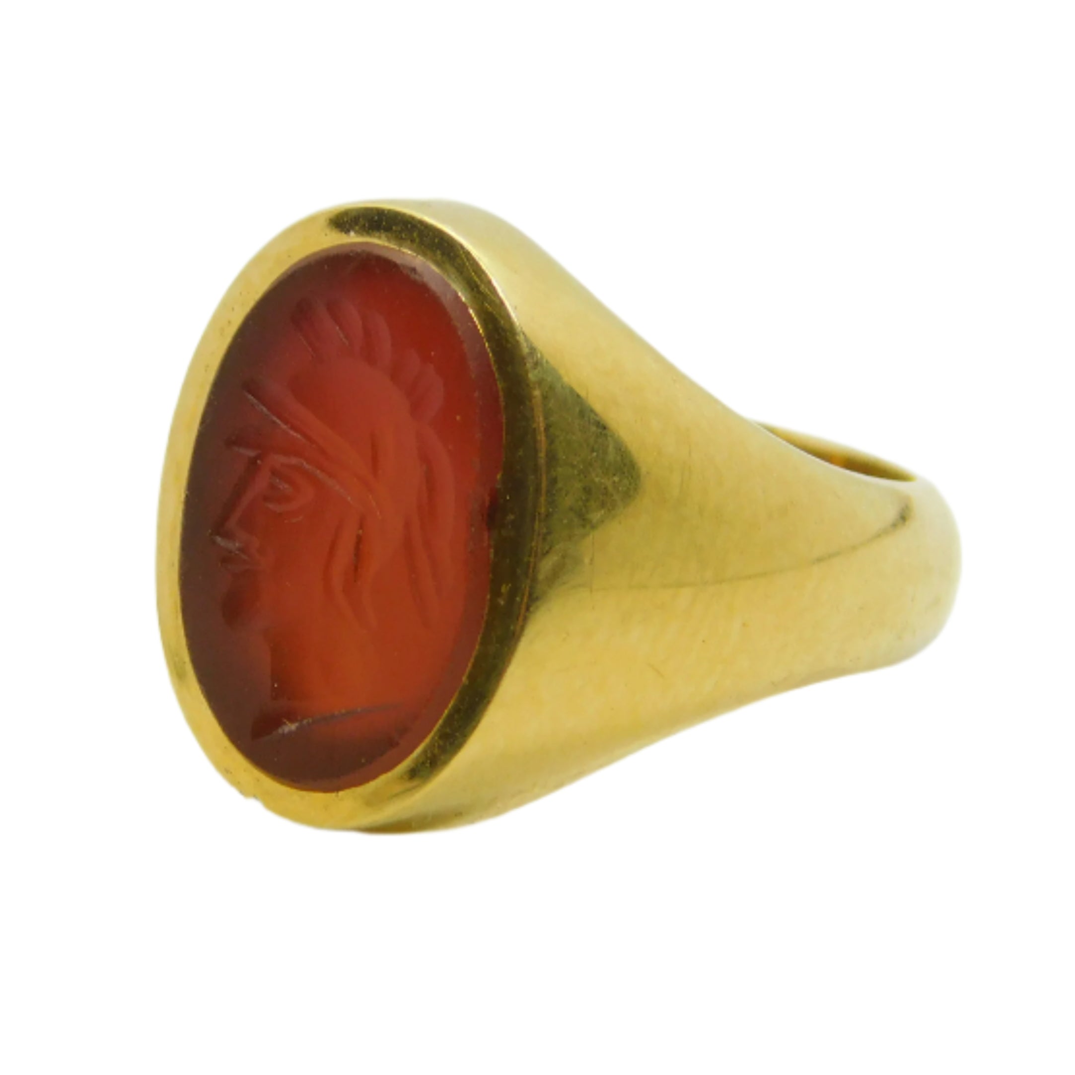 18ct Yellow Gold Carnelian Agate Centurion Intaglio Signet Ring Vintage 1968 London