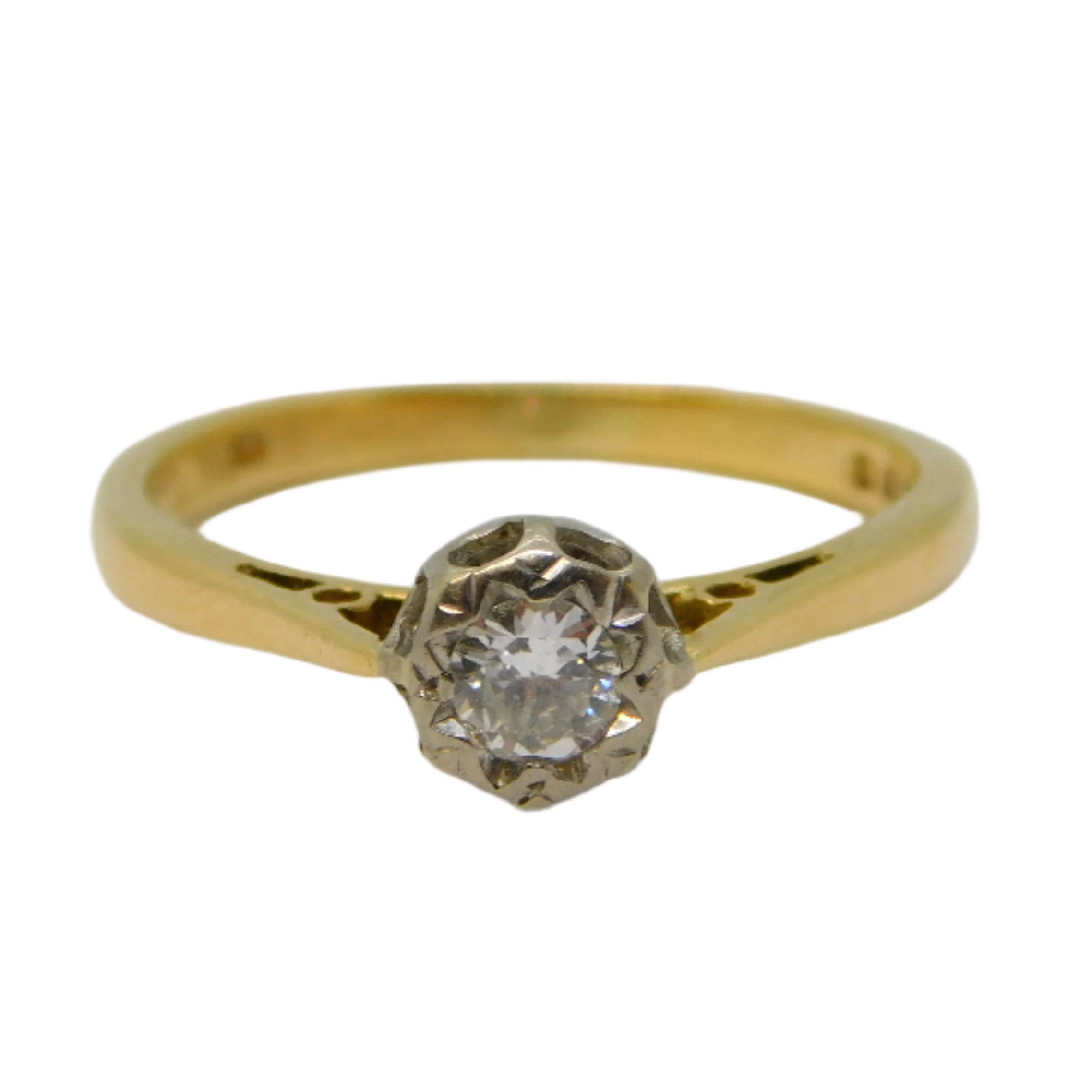 18ct Yellow Gold 0.2ct Diamond Set Solitaire Ring Vintage 1969 London