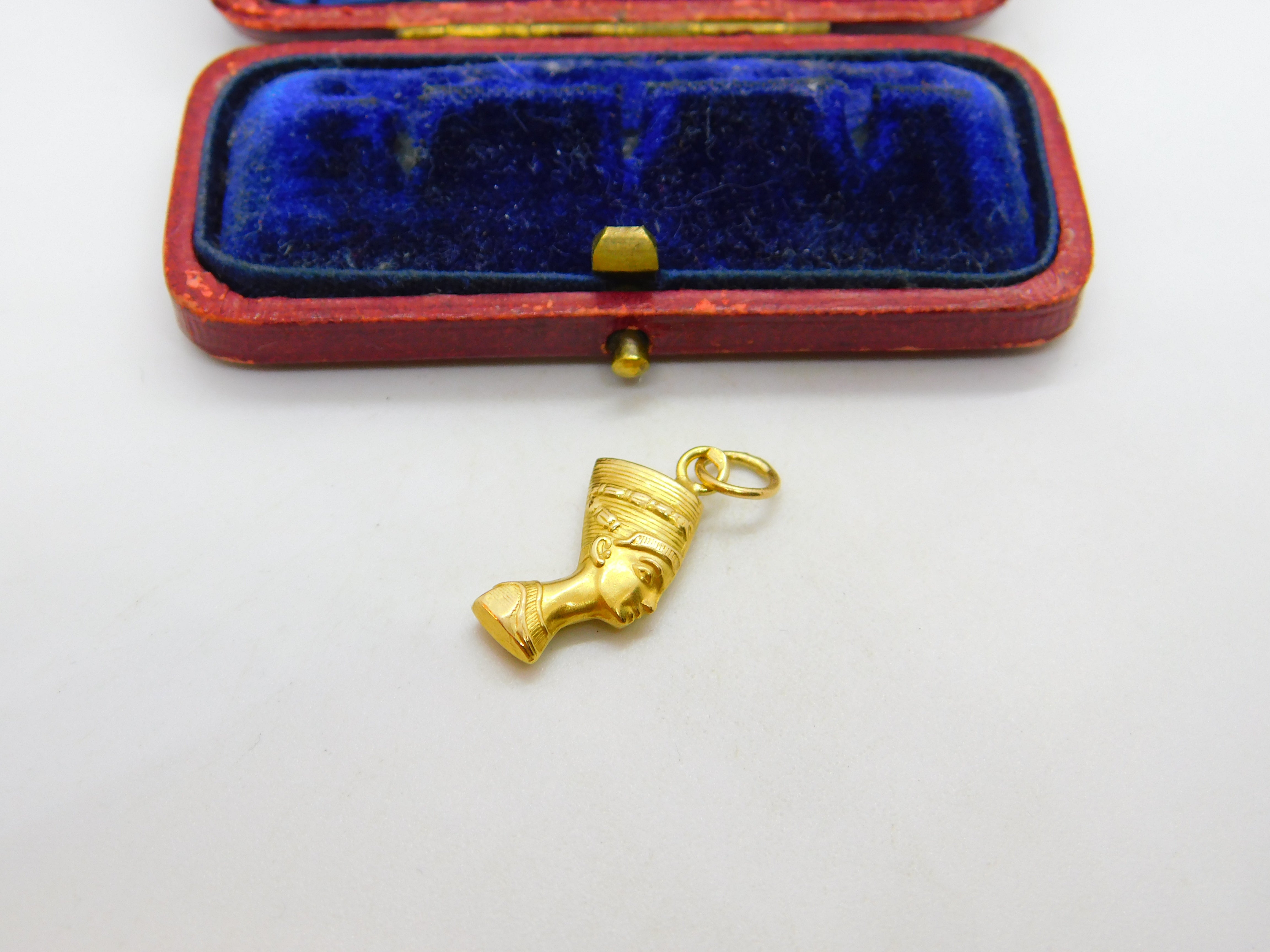 18ct Yellow Gold Egyptian Nefertiti Pharaoh Charm Pendant Vintage c1970