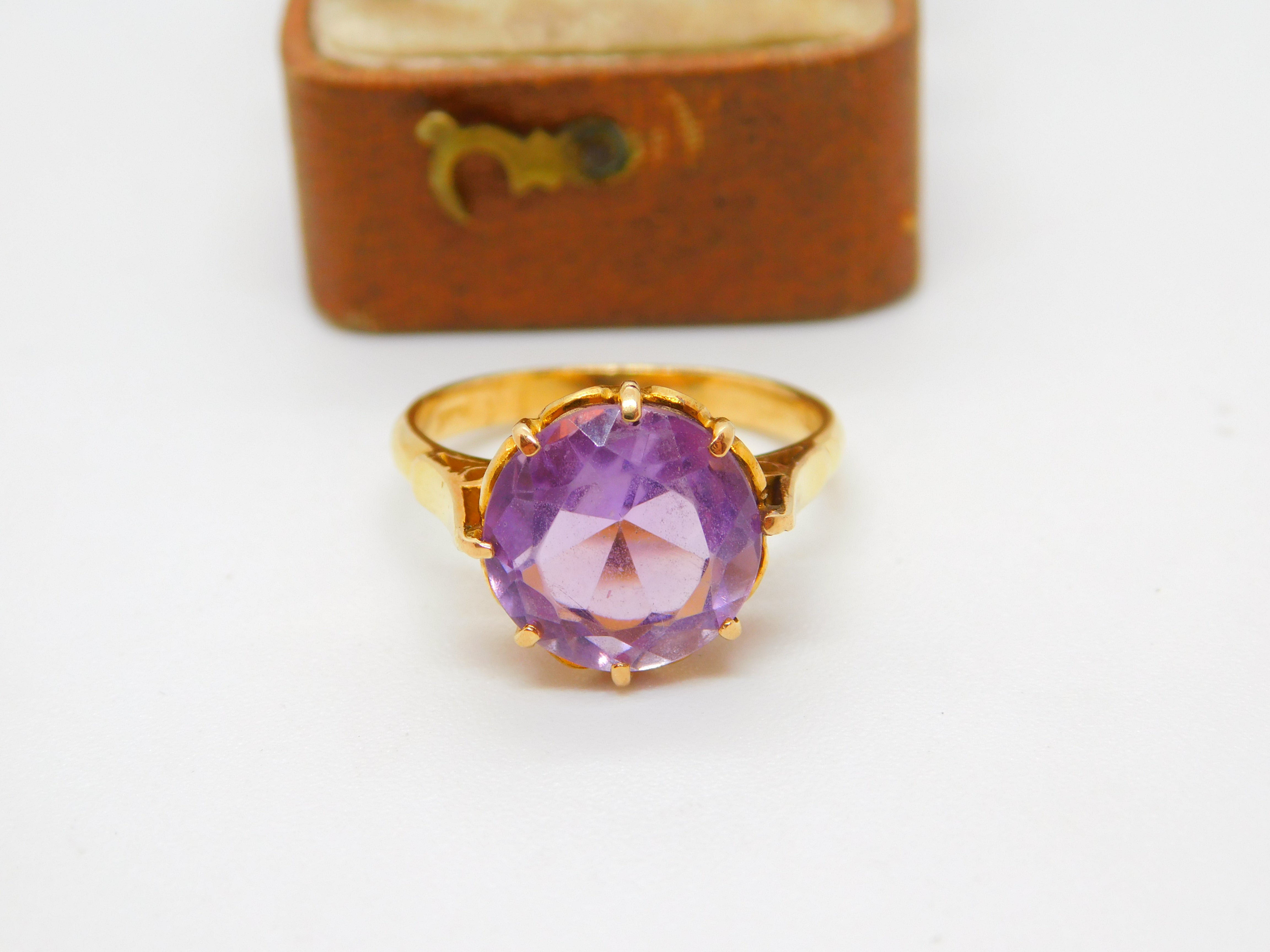 18ct Yellow Gold Brilliant Cut Amethyst Dress Ring Vintage c1970 Size N 1/2 UK