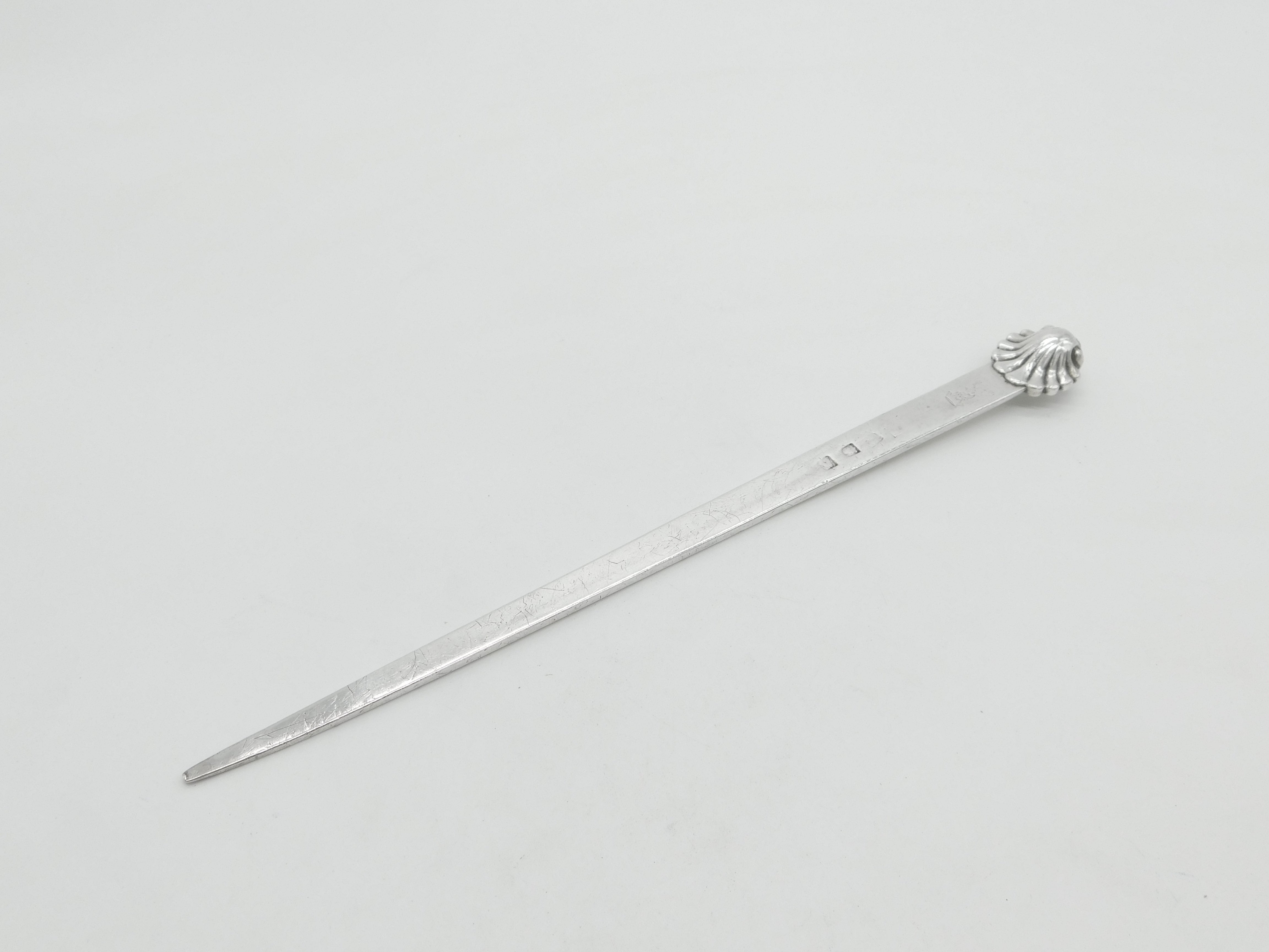 George II Large Sterling Silver Crested Meat Skewer Shell Terminal c1740 London