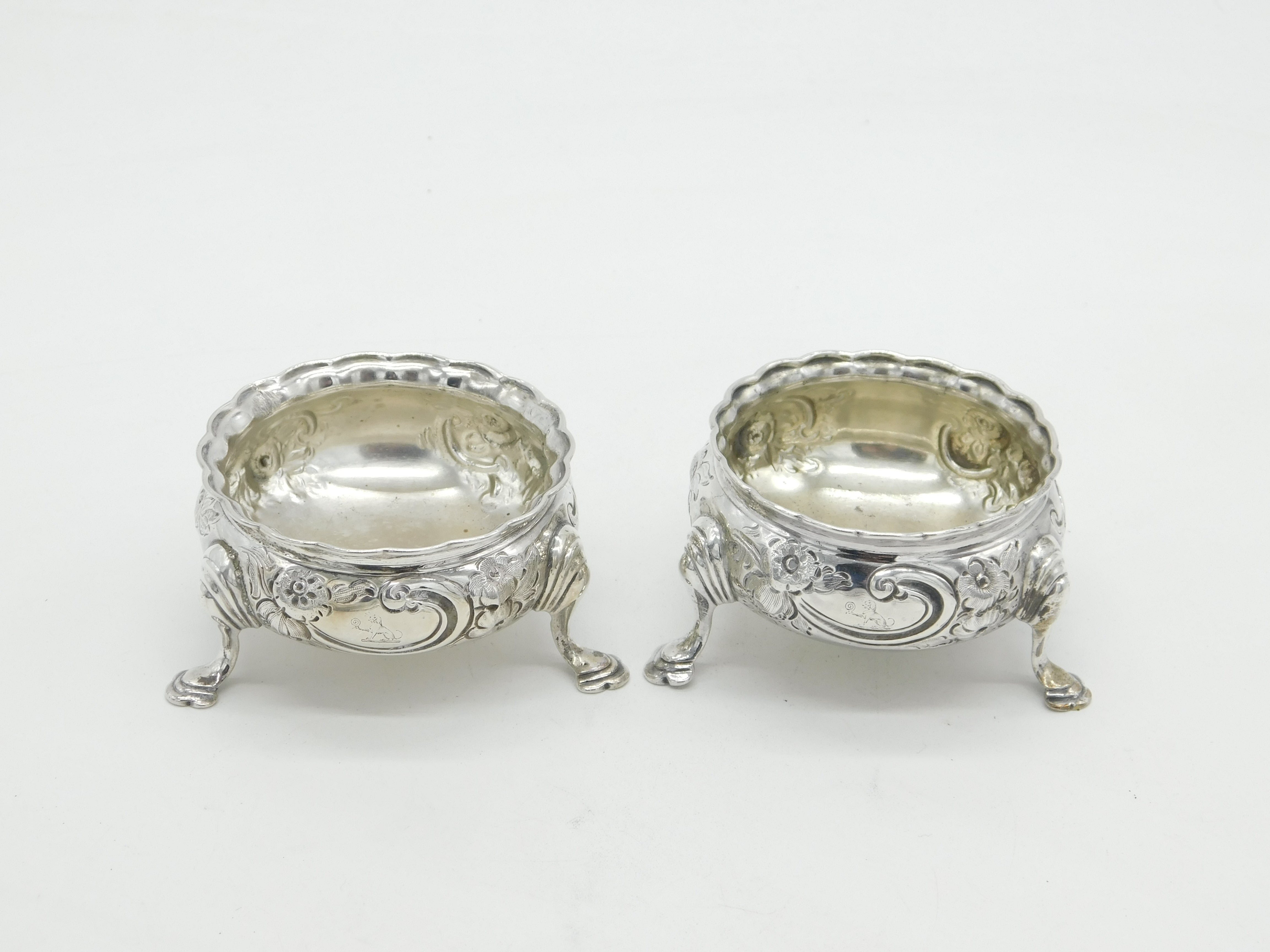 George II Pair of Sterling Silver Floral Salt Cellars Antique 1746 London