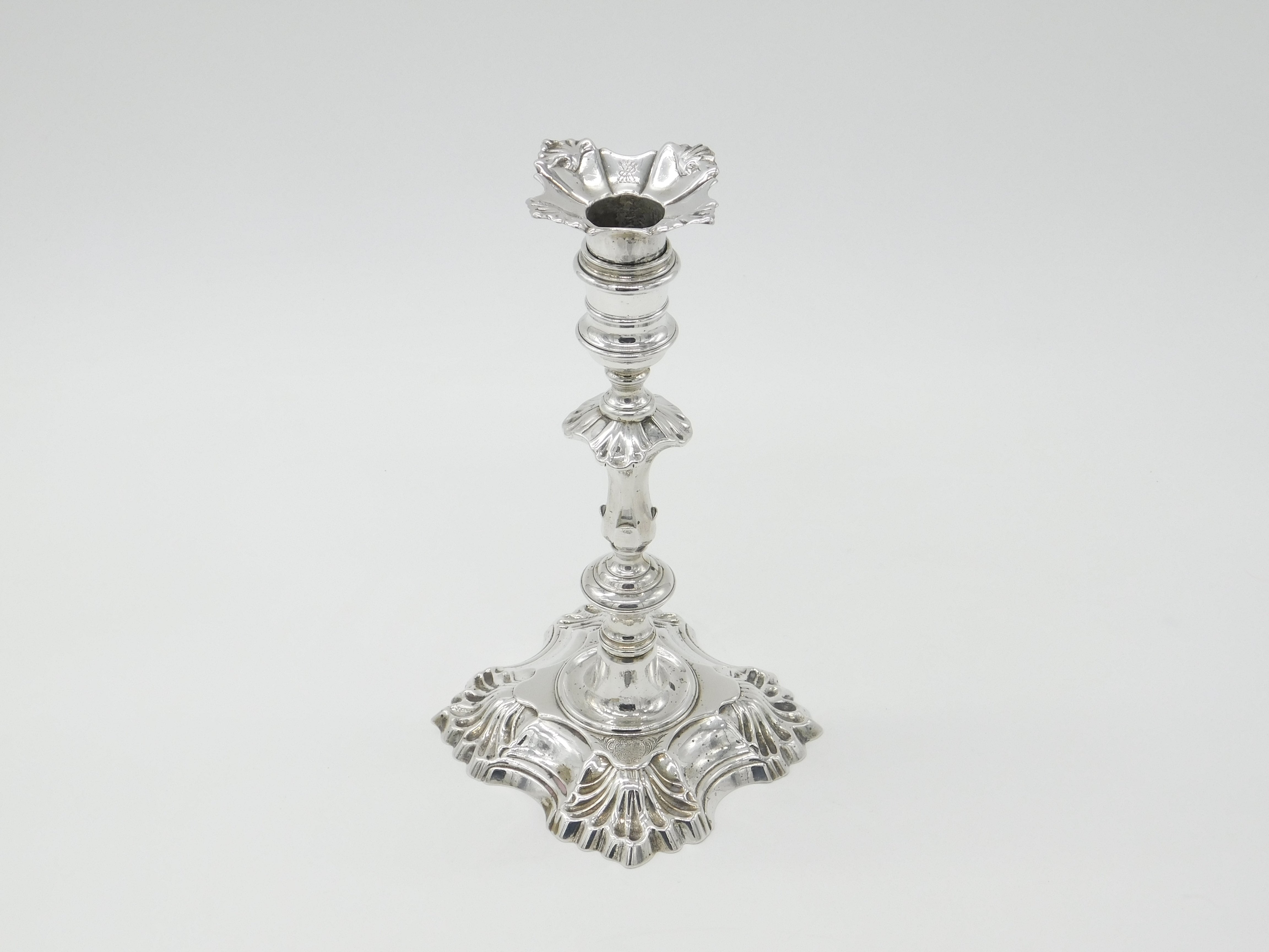 George II Sterling Silver Cast Candlestick Quatrefoil Base Antique 1750 London by William Gould