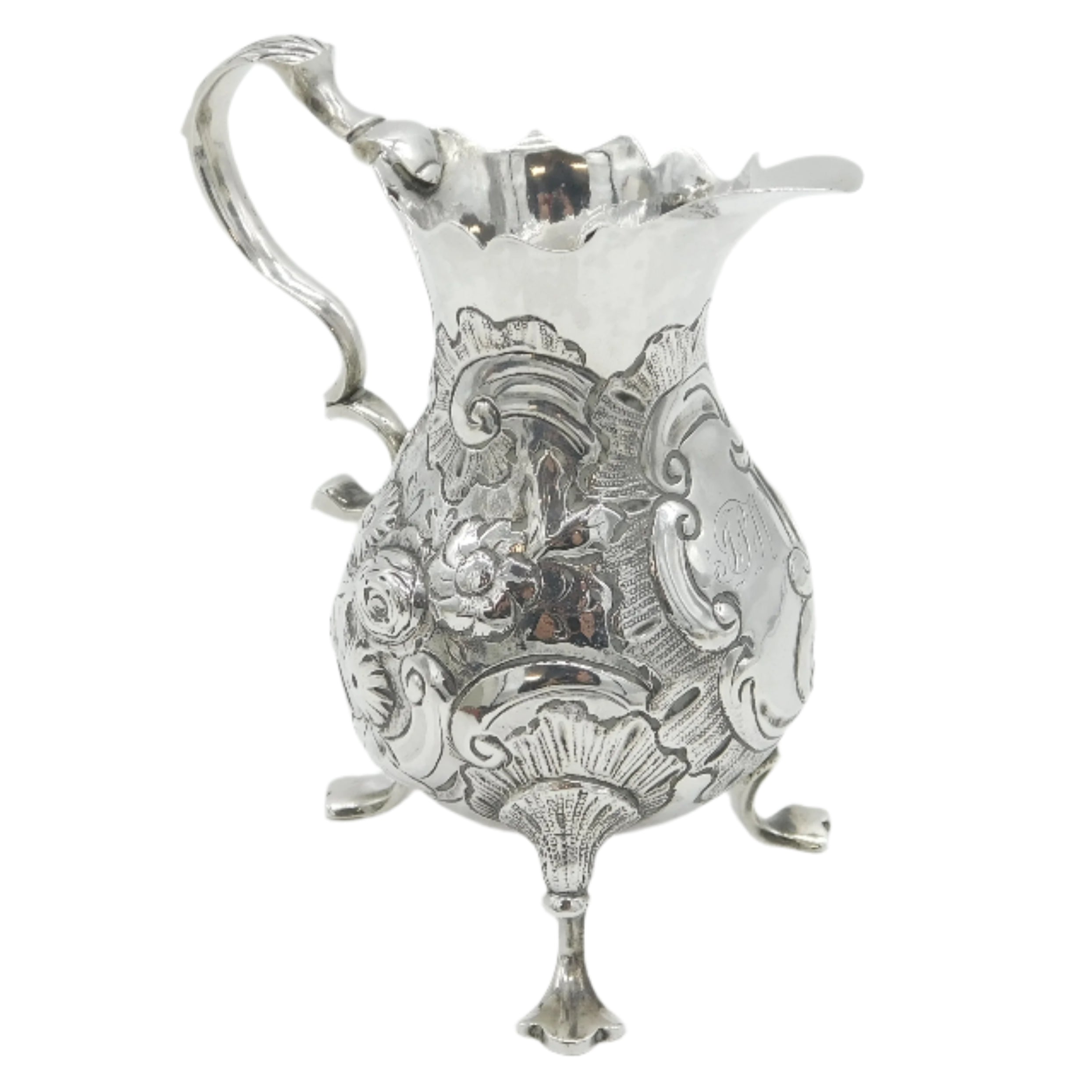 George II Sterling Silver Floral Pattern Cream Jug Antique 1749 London
