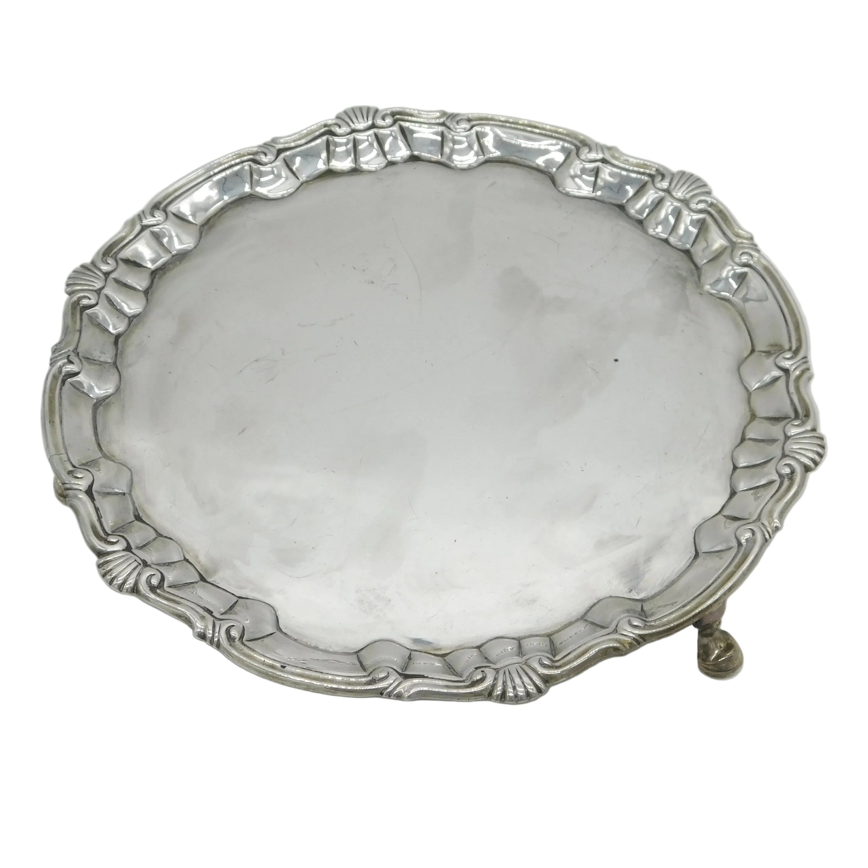 George II Sterling Silver Floral Pattern Salver Dish Antique 1754 London