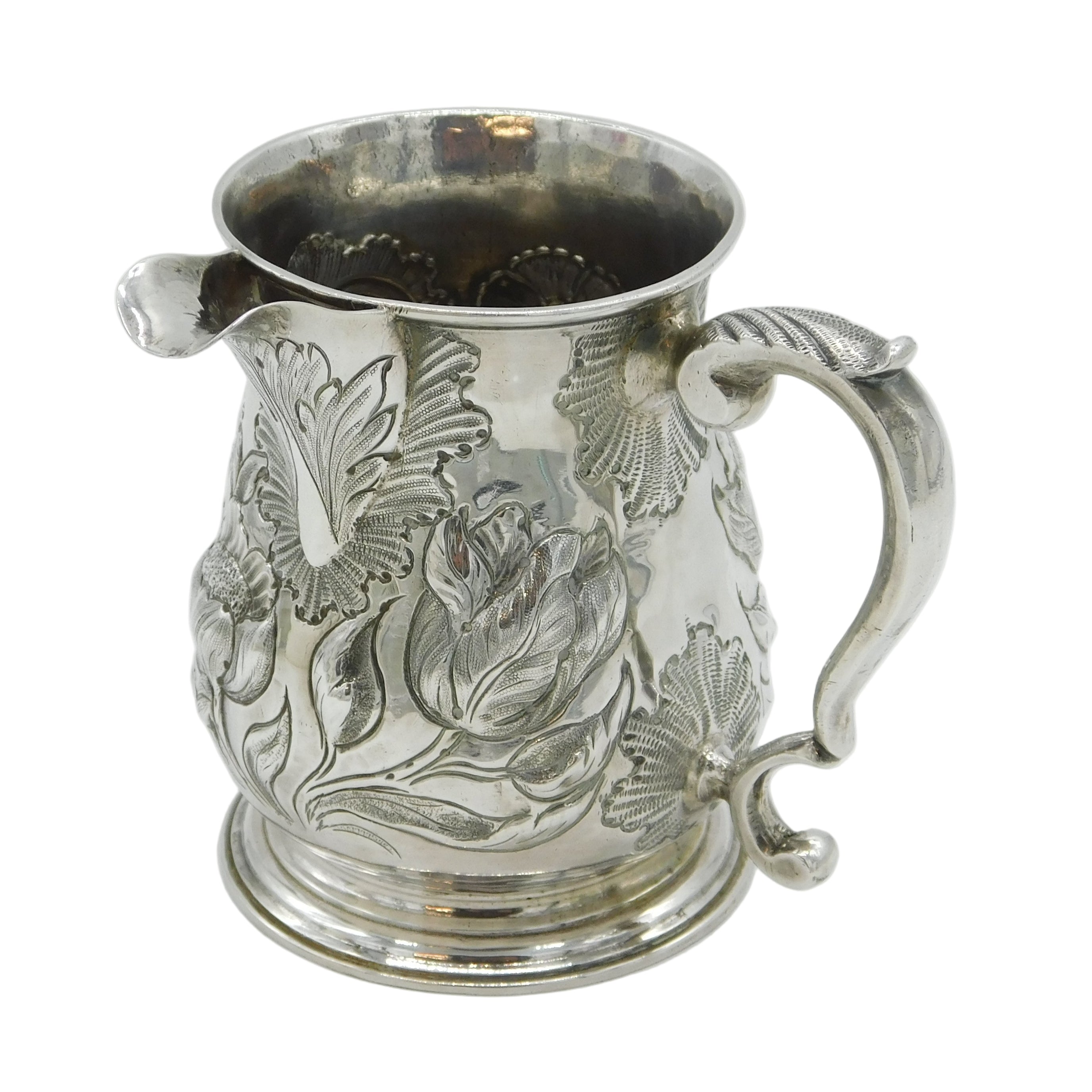 George II Sterling Silver Floral Embossed Cream Jug Antique 1757 London