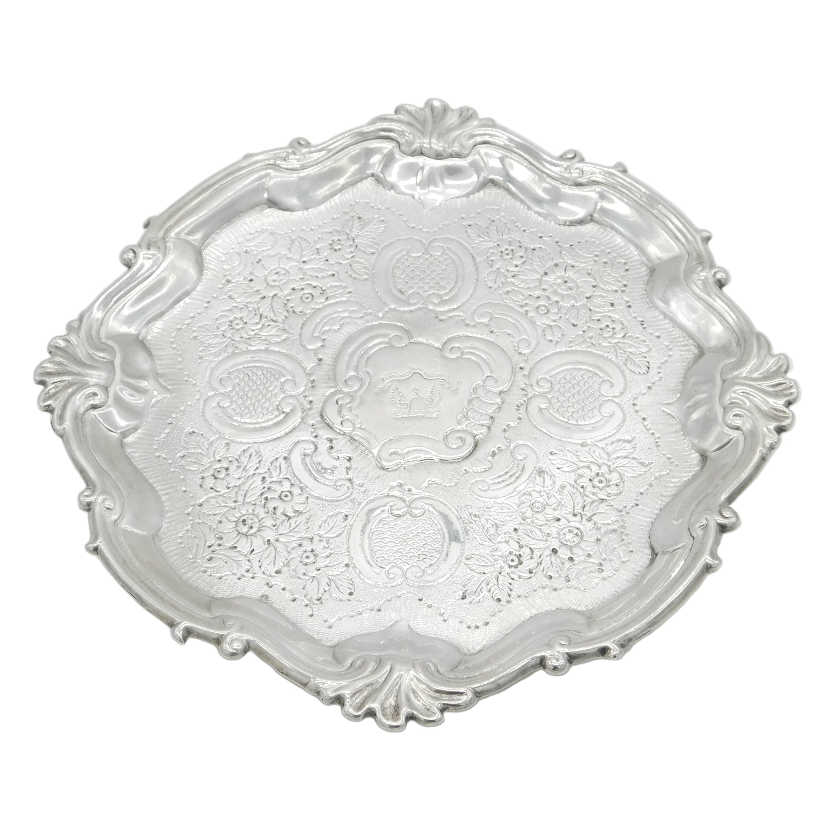 George II Sterling Silver Floral Pattern Salver Dish Antique 1752 London