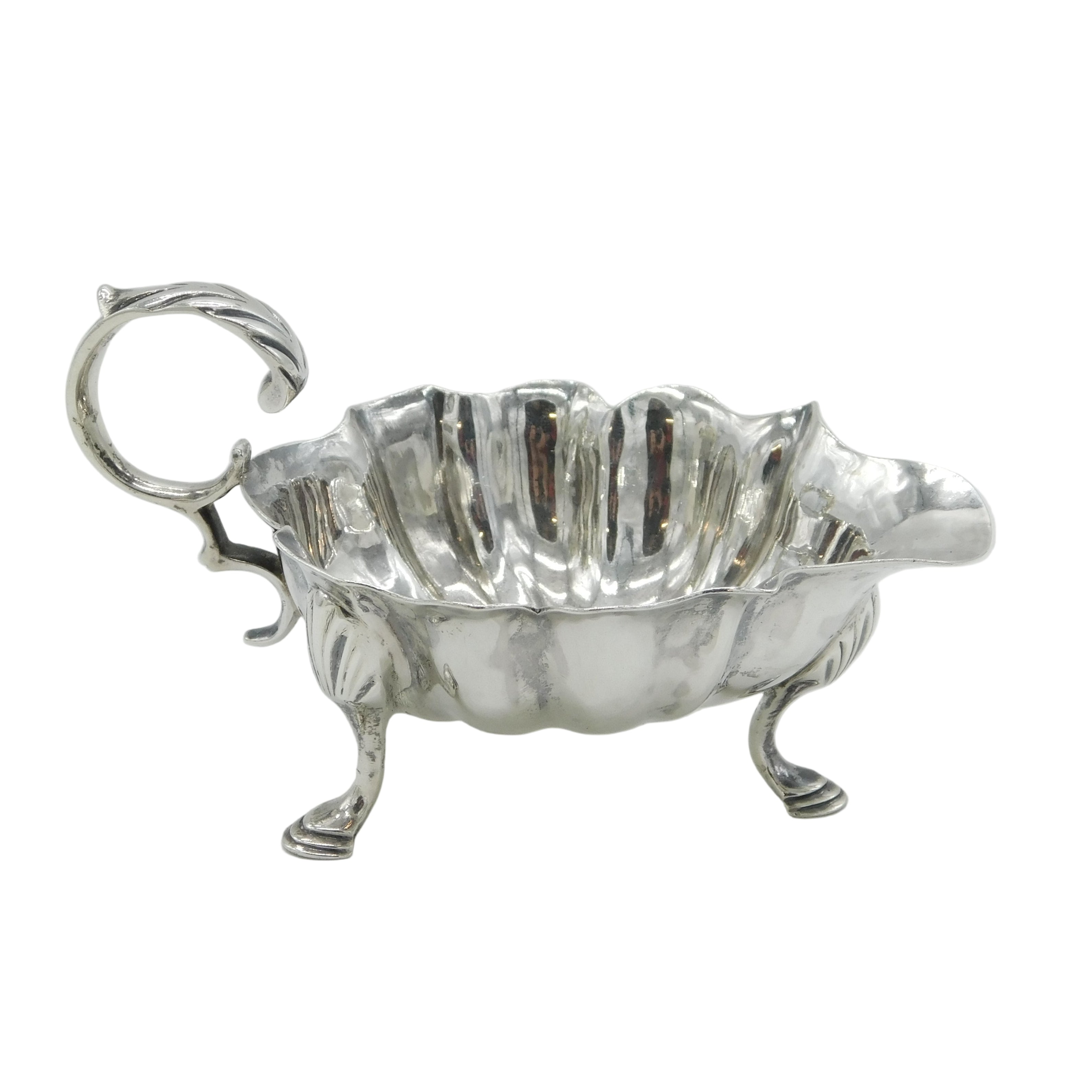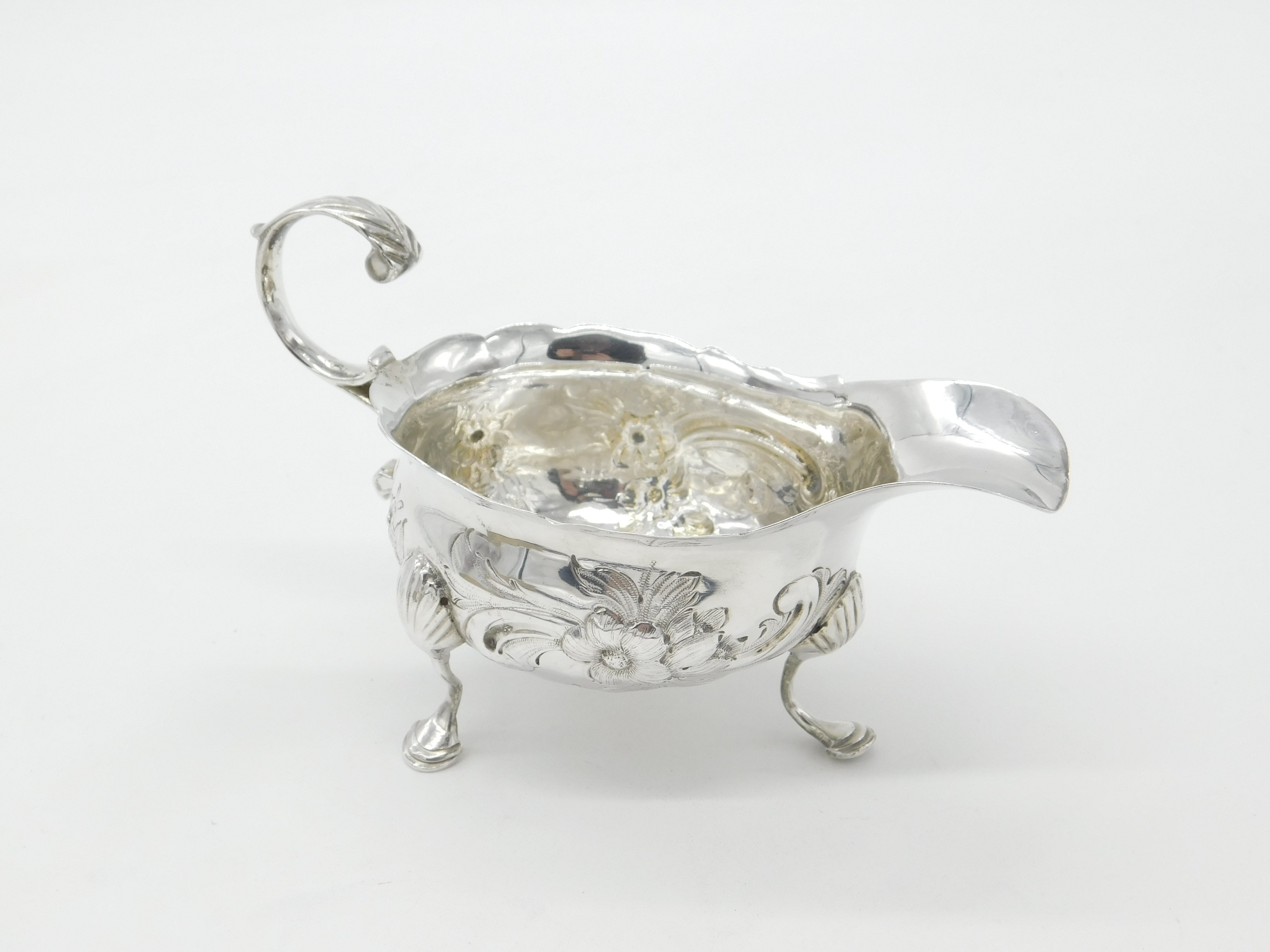 George II Sterling Silver Floral Pattern Small Sauce Boat Antique 1754 London