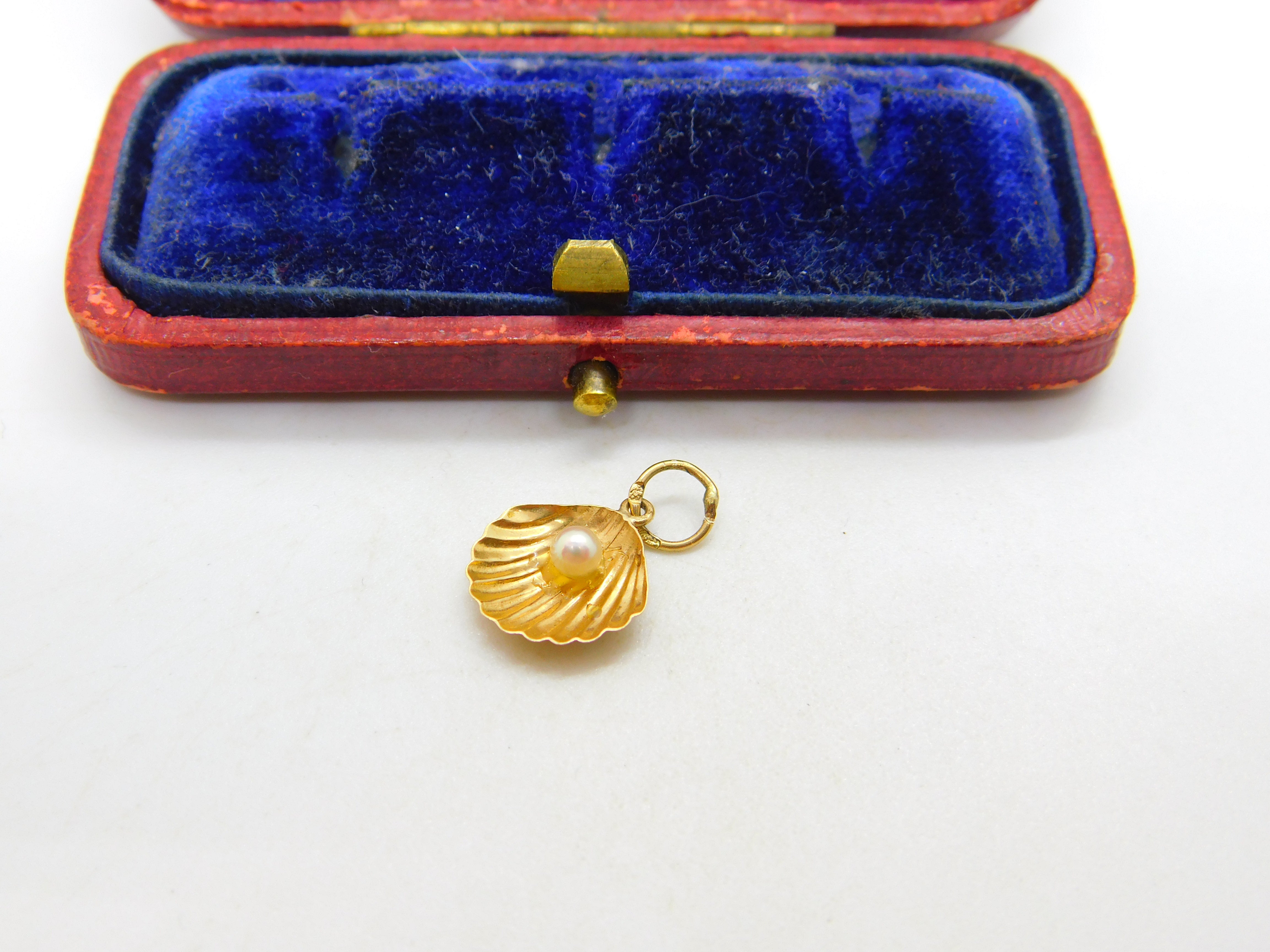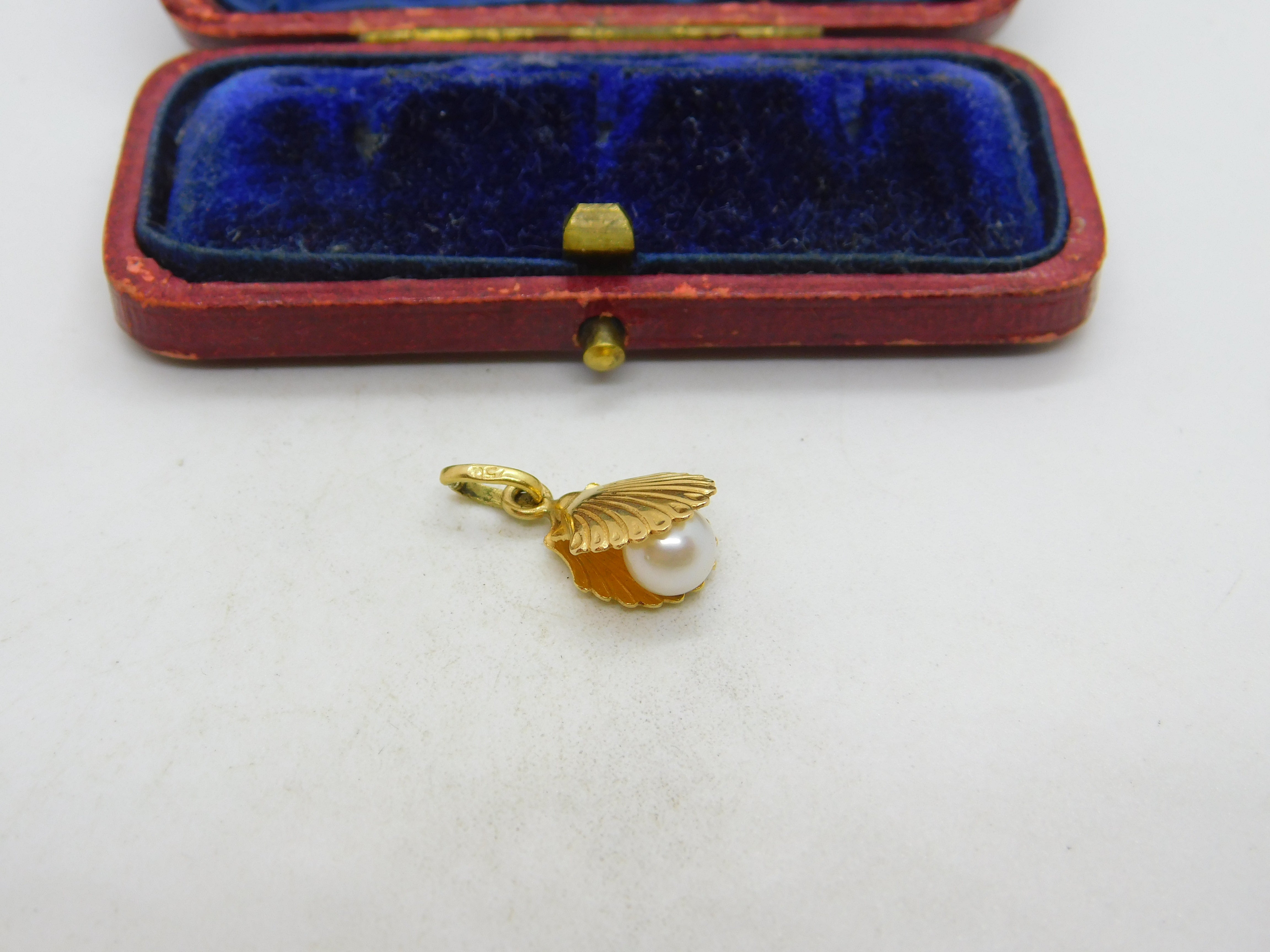 18ct Yellow Gold Pearl in the Clam Charm or Pendant Vintage c1980