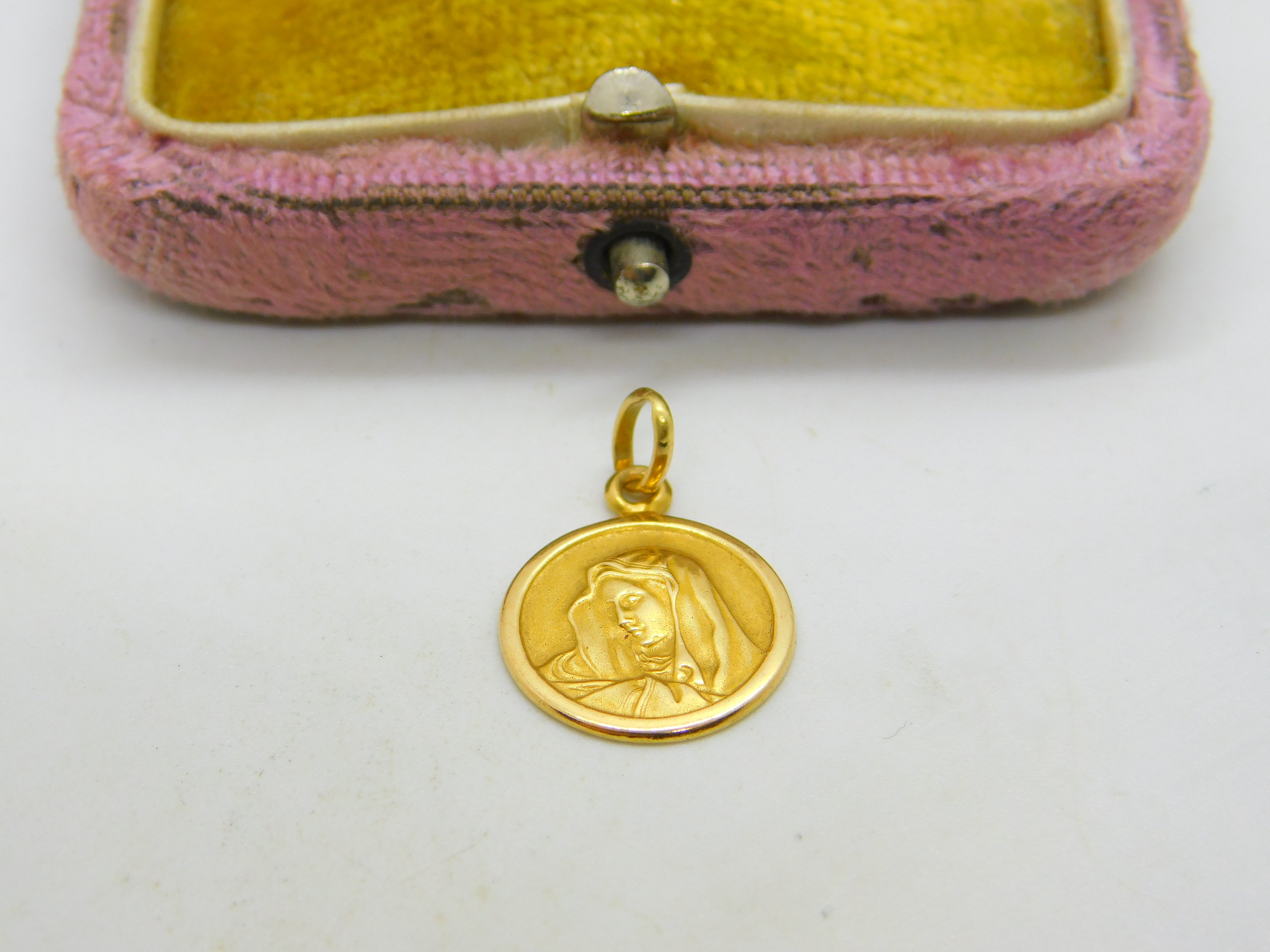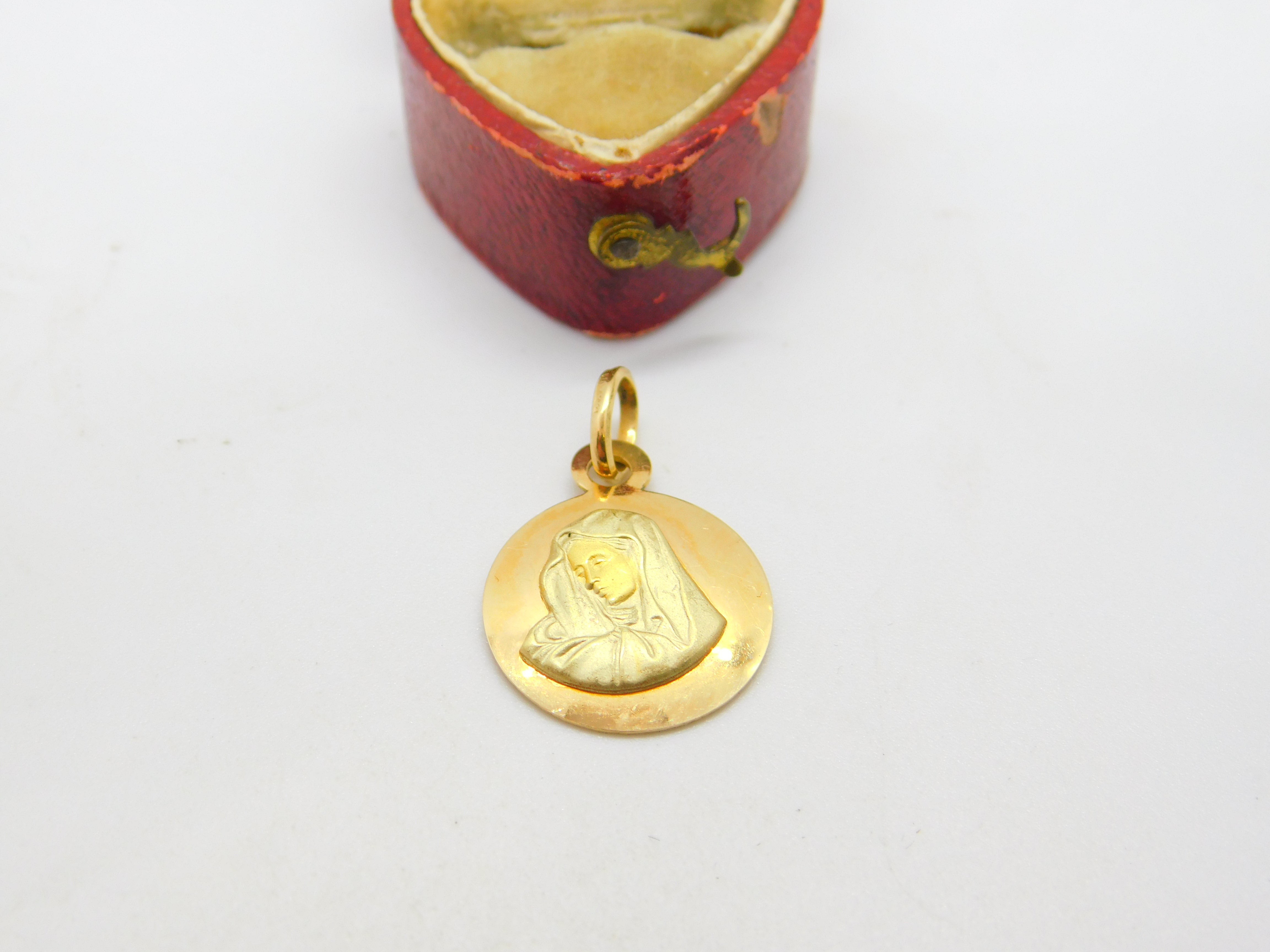 18ct Yellow Gold Religious Madonna Mary Charm or Pendant Vintage c1960
