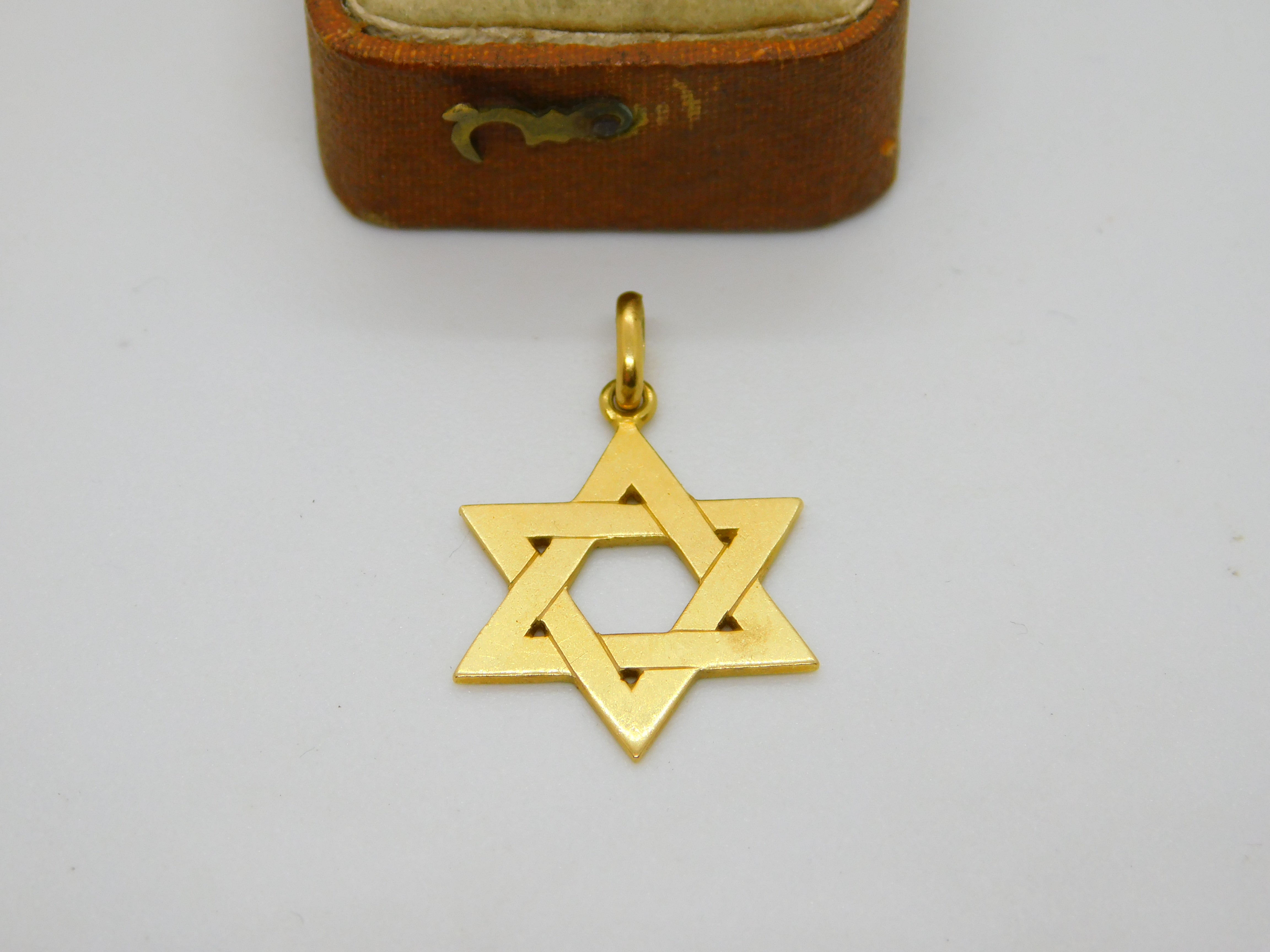 18ct Yellow Gold Star of David Jewish Charm Pendant Vintage c1970